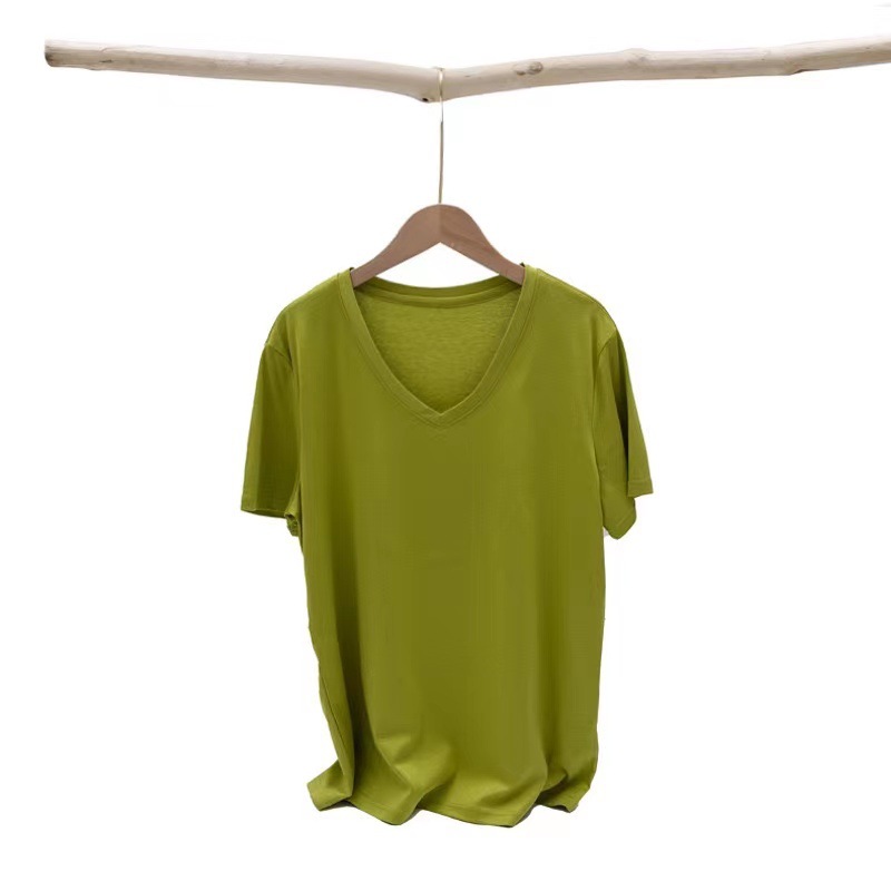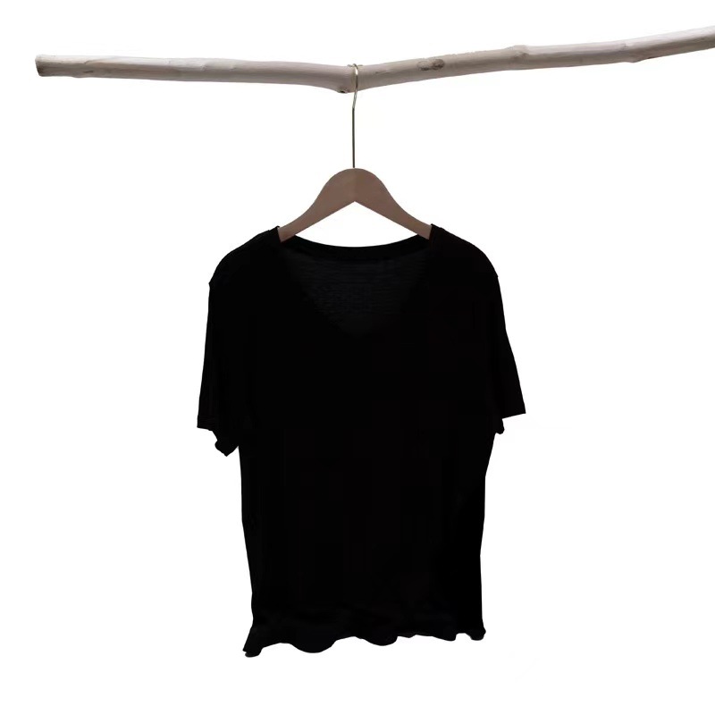 2023 New style mulberry silk and silky cotton solid-color T-shirt, loose and versatile, round-neck short-sleeved, V-neck for women, white, summer slimming
