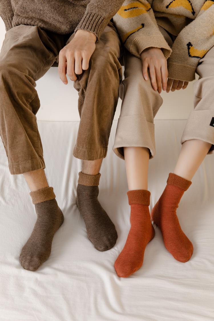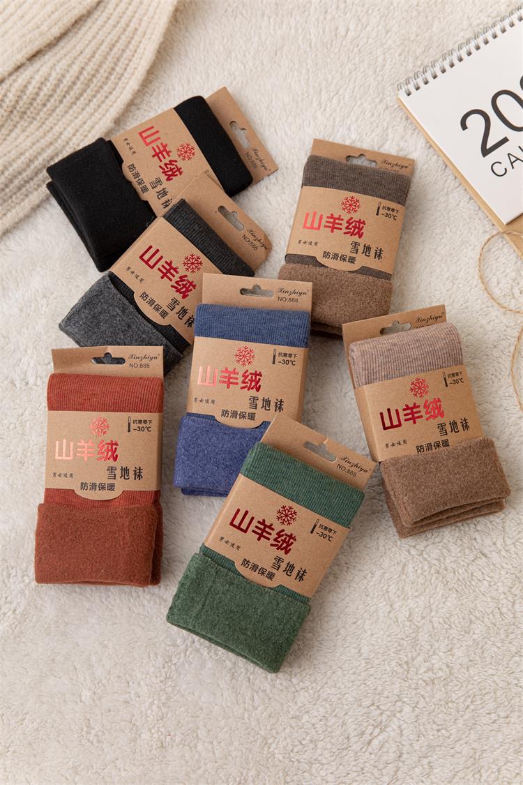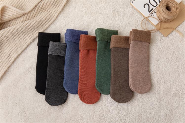 2023 new winter faux cashmere snow socks, thickened and warm men's and women's fleece mid-calf cotton socks, floor socks, and postpartum socks