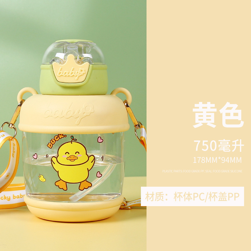 2023 Plastic water cups, student straw cups, cute cartoon little yellow duck children's and baby drinking cups in stock for wholesale