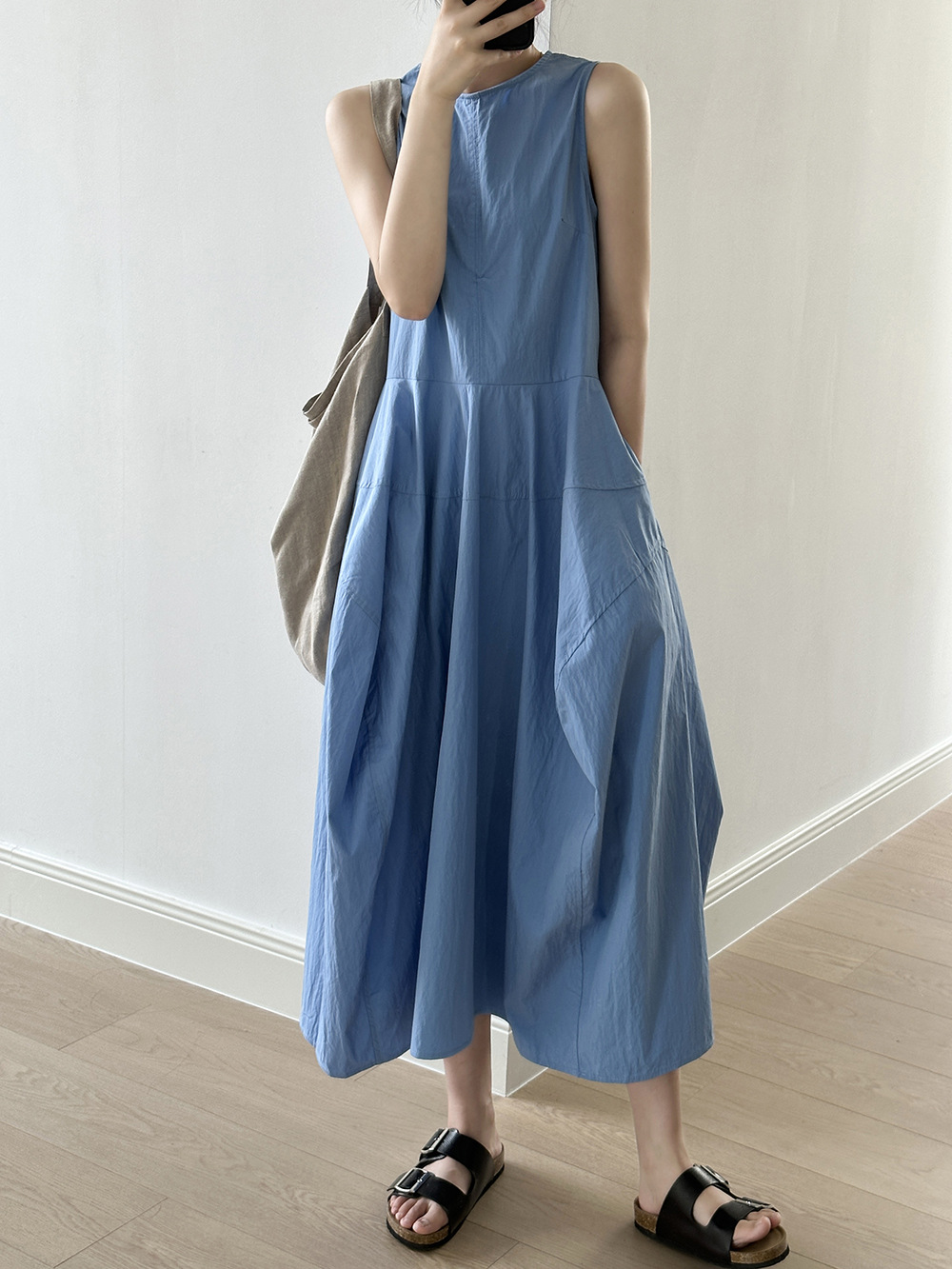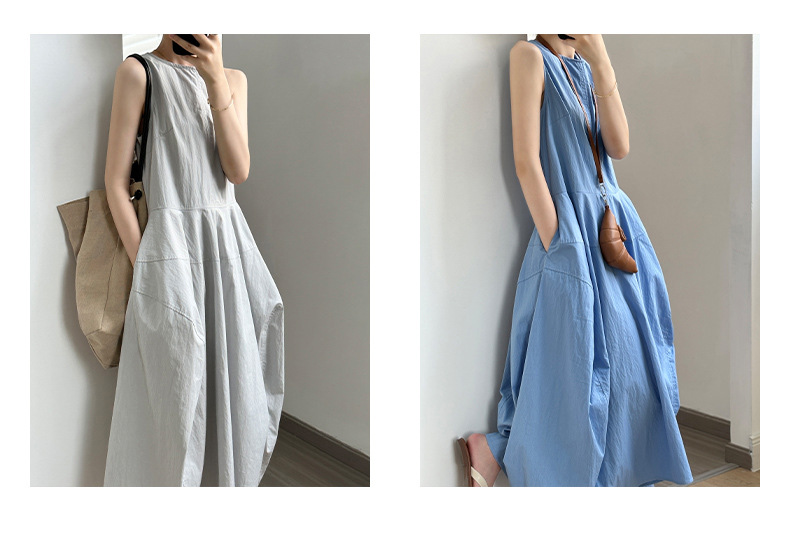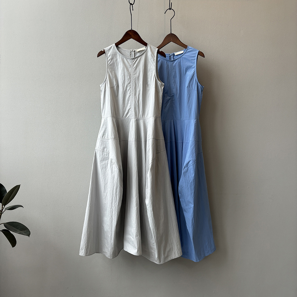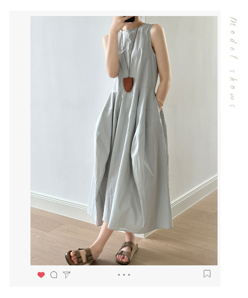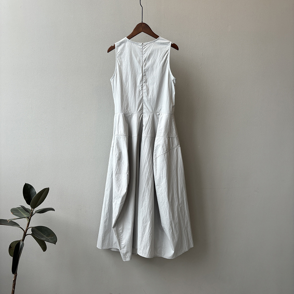 言双 花苞大摆无袖连衣裙2024夏季新款气质高级感简约背心裙82103