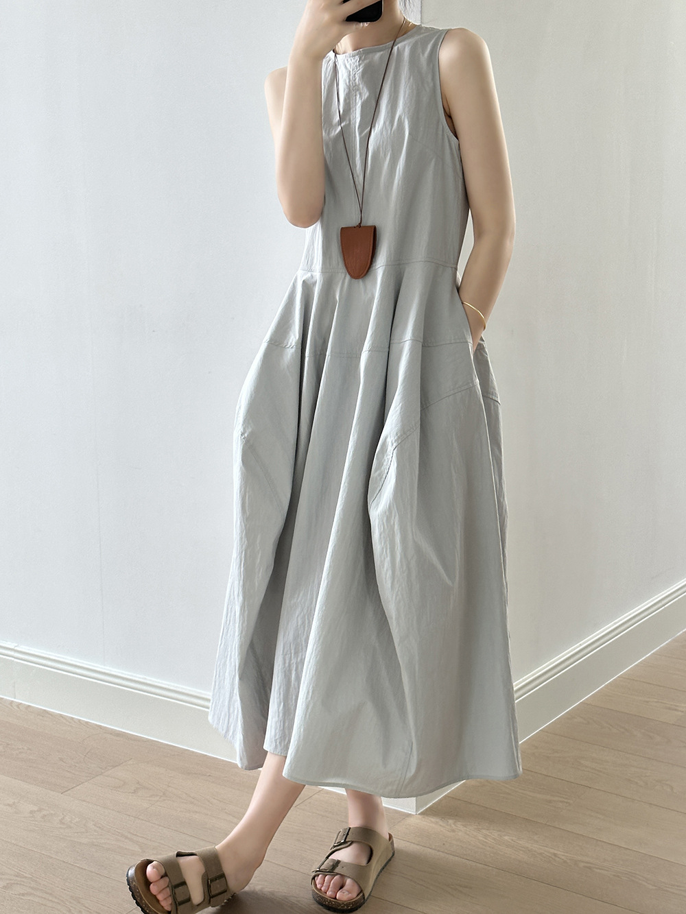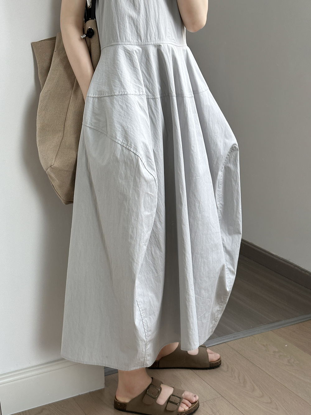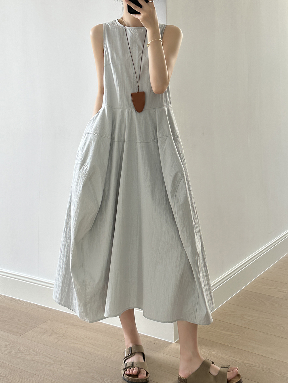 言双 花苞大摆无袖连衣裙2024夏季新款气质高级感简约背心裙82103