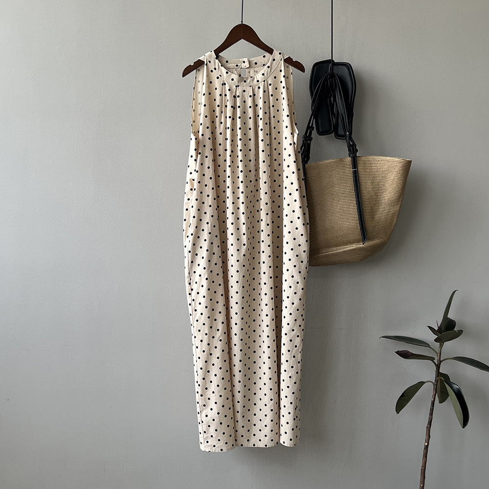 言双 波点无袖连衣裙2024夏季新款韩系圆领a字气质背心裙82016