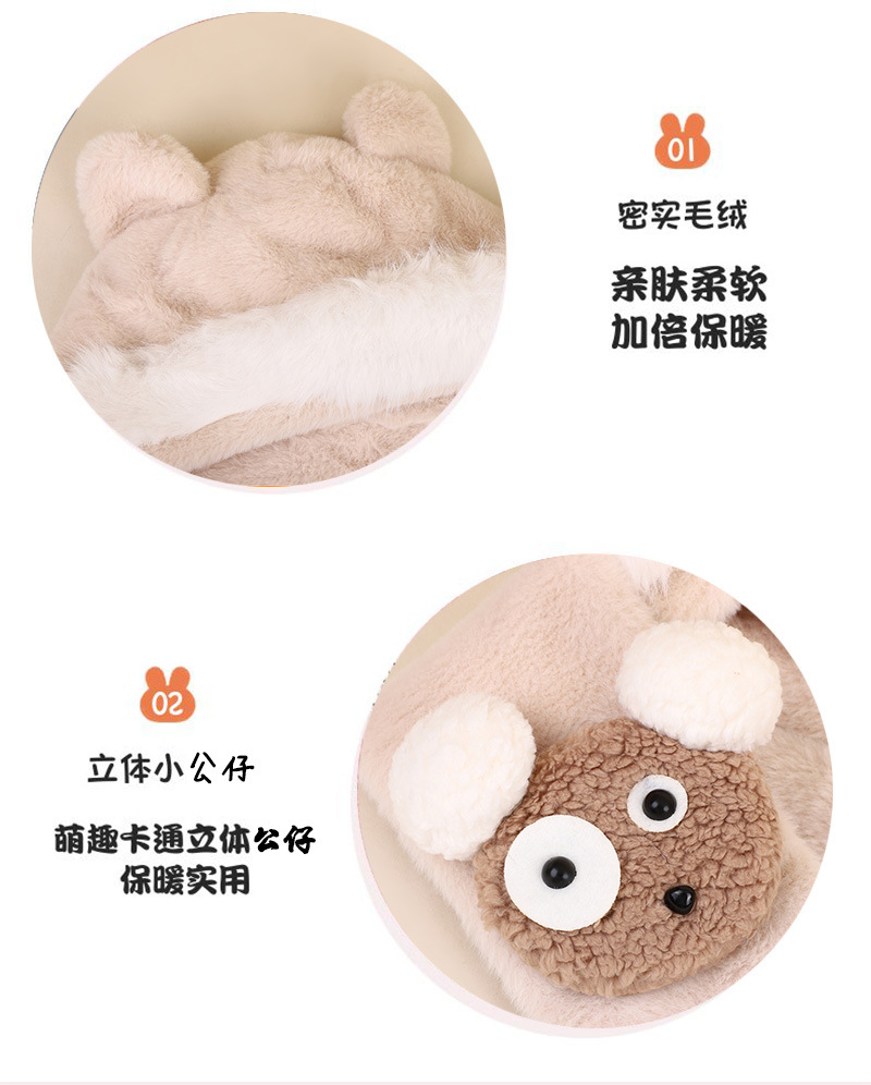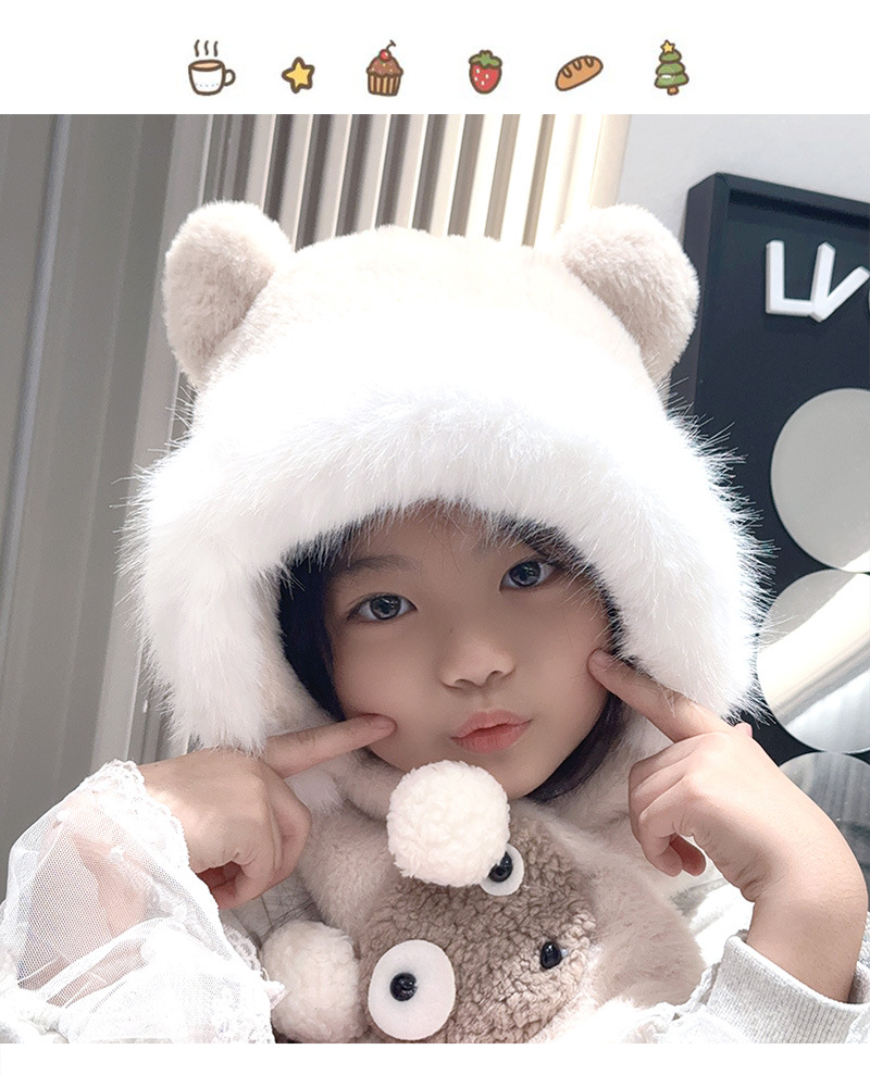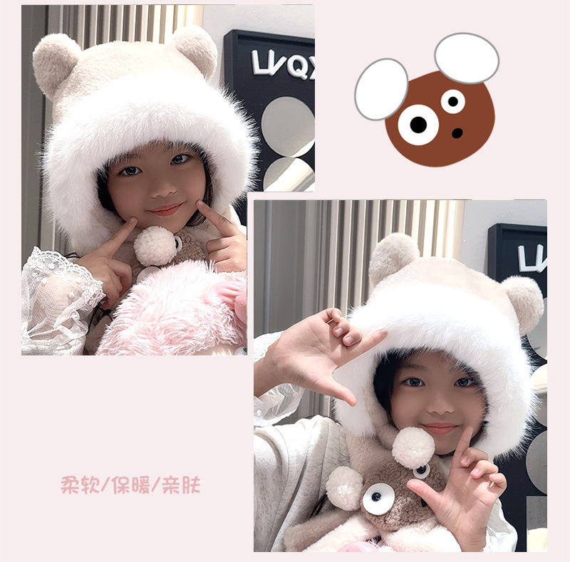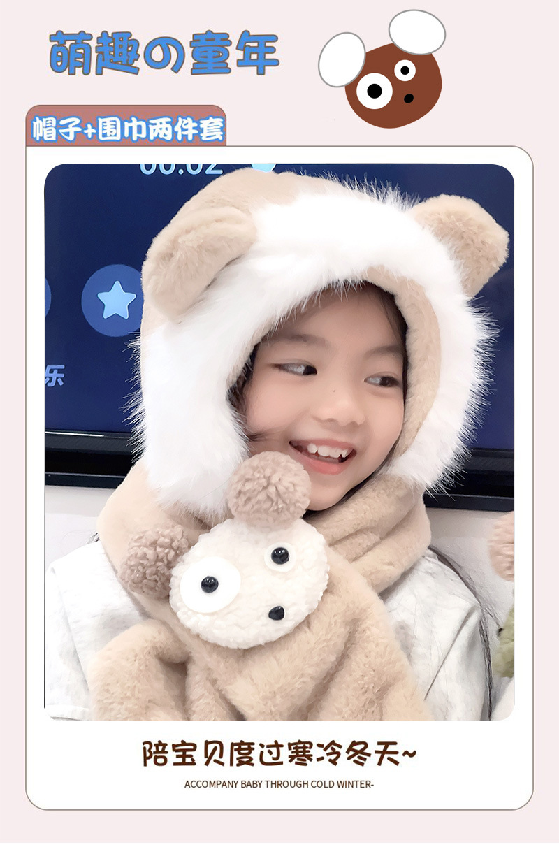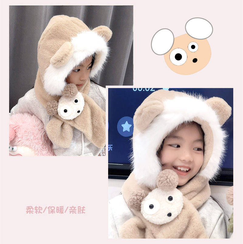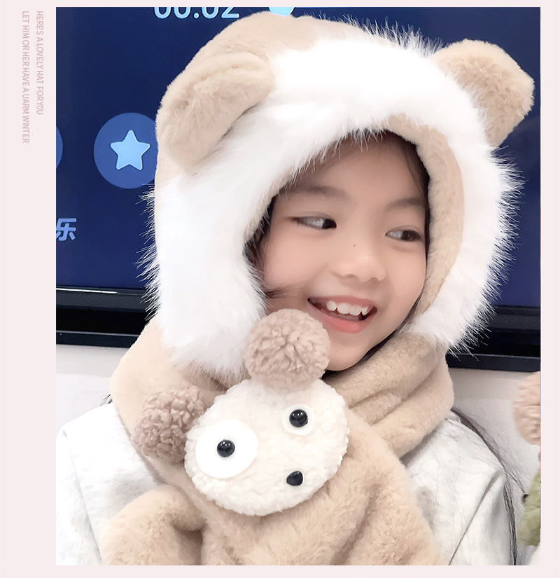 2024 Autumn and Winter Hat, Scarf, Children's cartoon doll, scarf, hat, all-in-one fleece hat for cold and wind protection