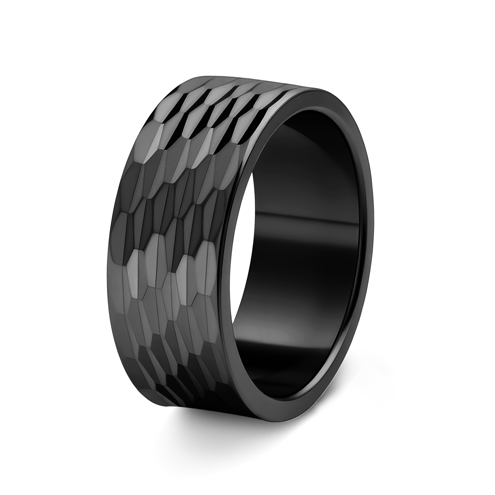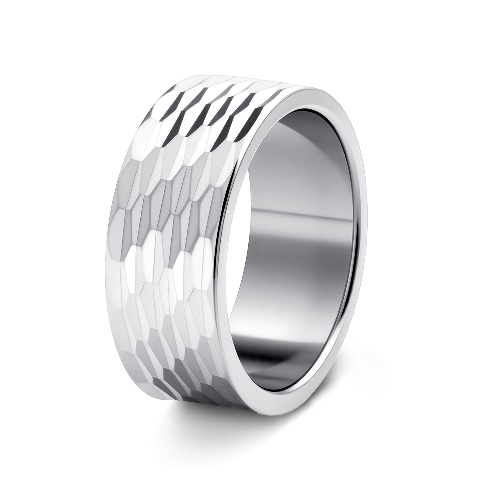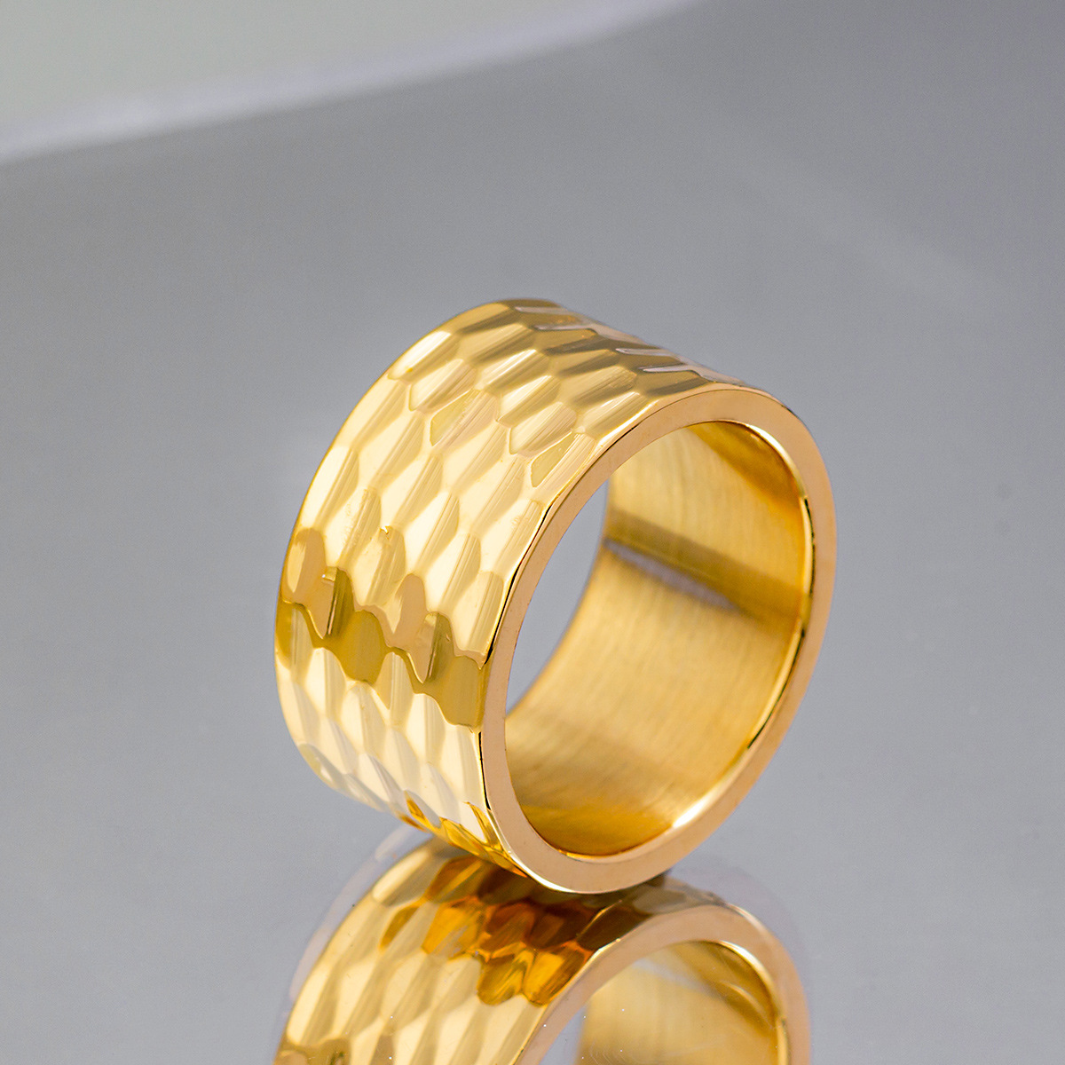 2024 Cross-border new product jewelry: European and American men's accessories 12mm wide hammered pattern large ring men's finger ring titanium steel ring