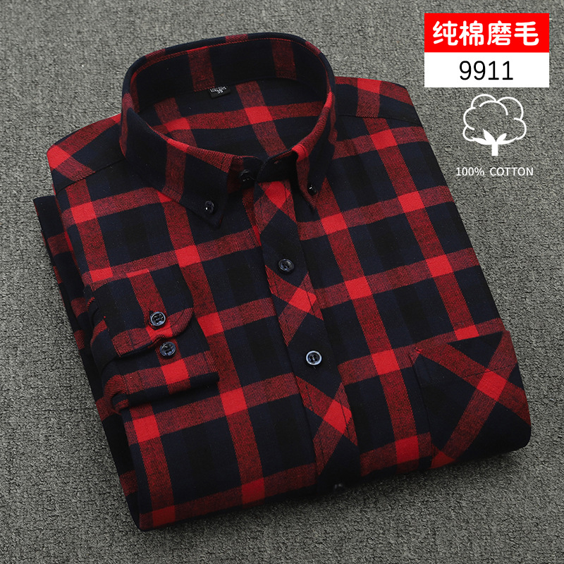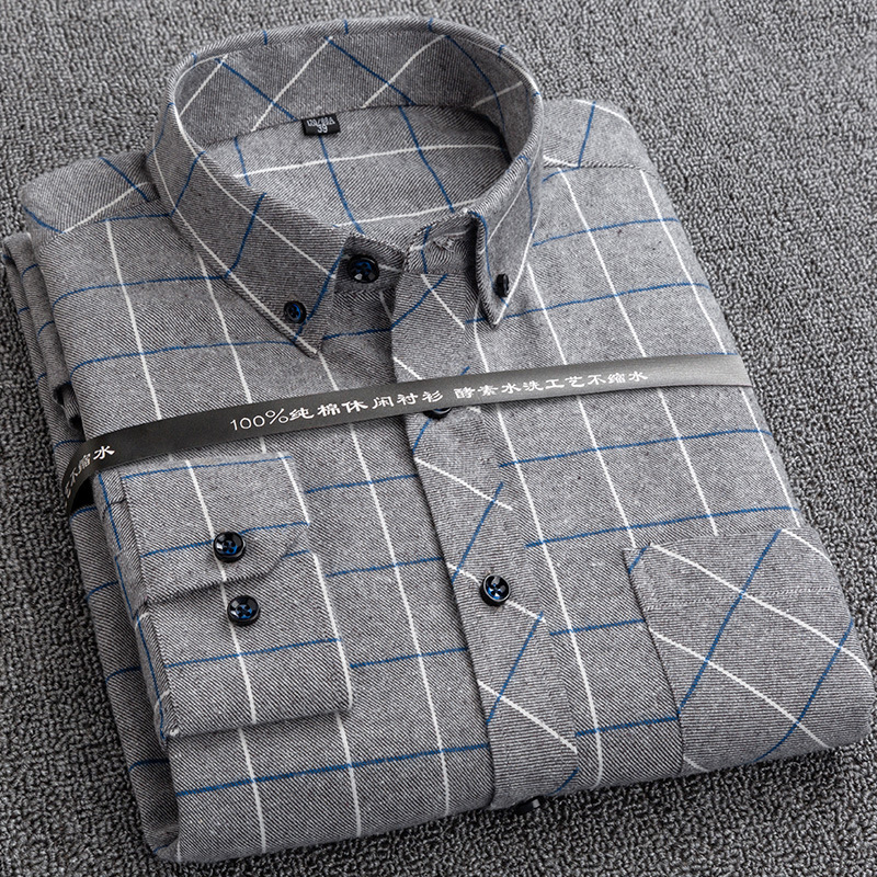 2024 Large-sized men's spring and autumn long-sleeved pure cotton checkered shirt, all-cotton matte thickened casual shirt for middle-aged and elderly people