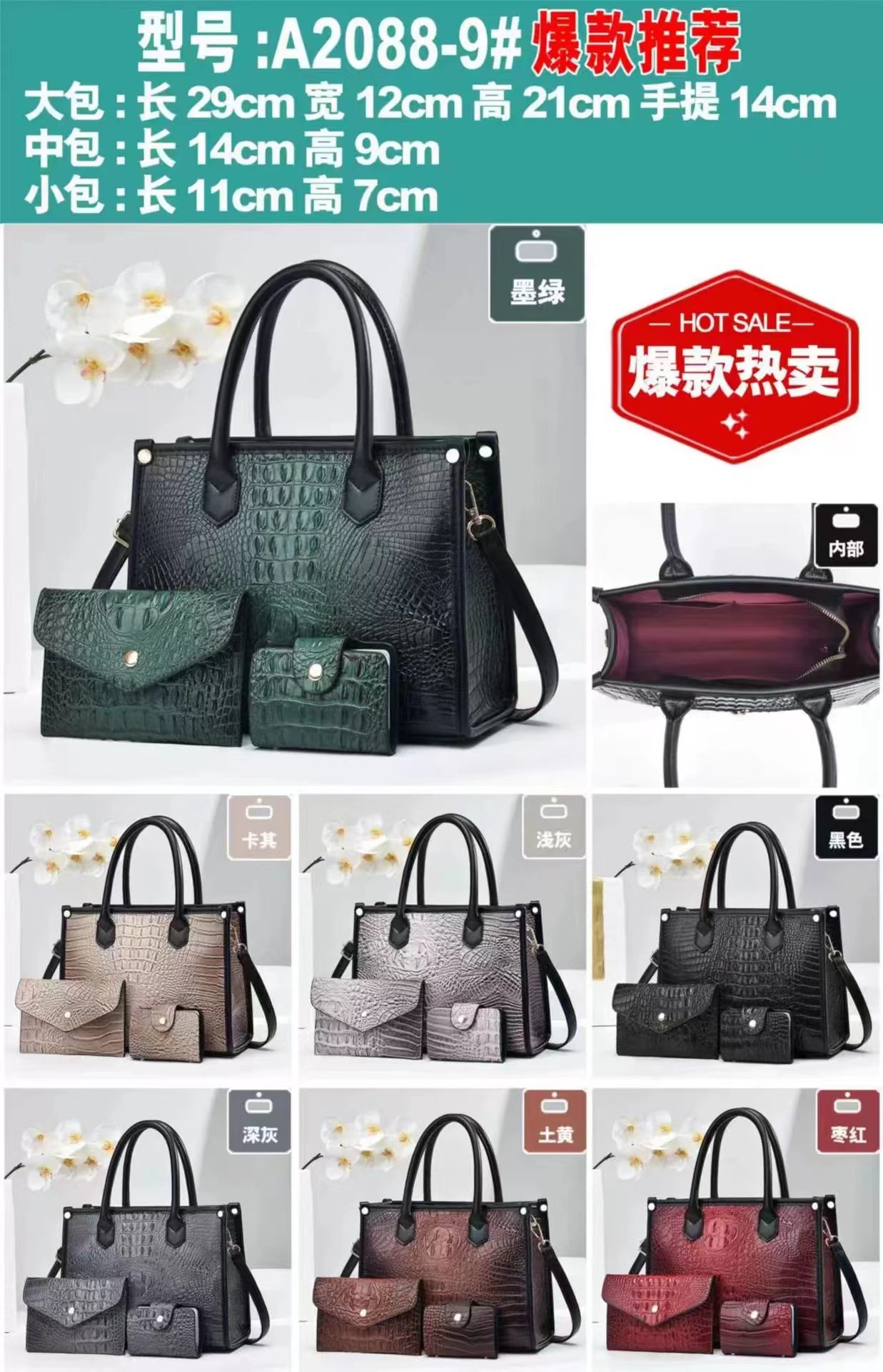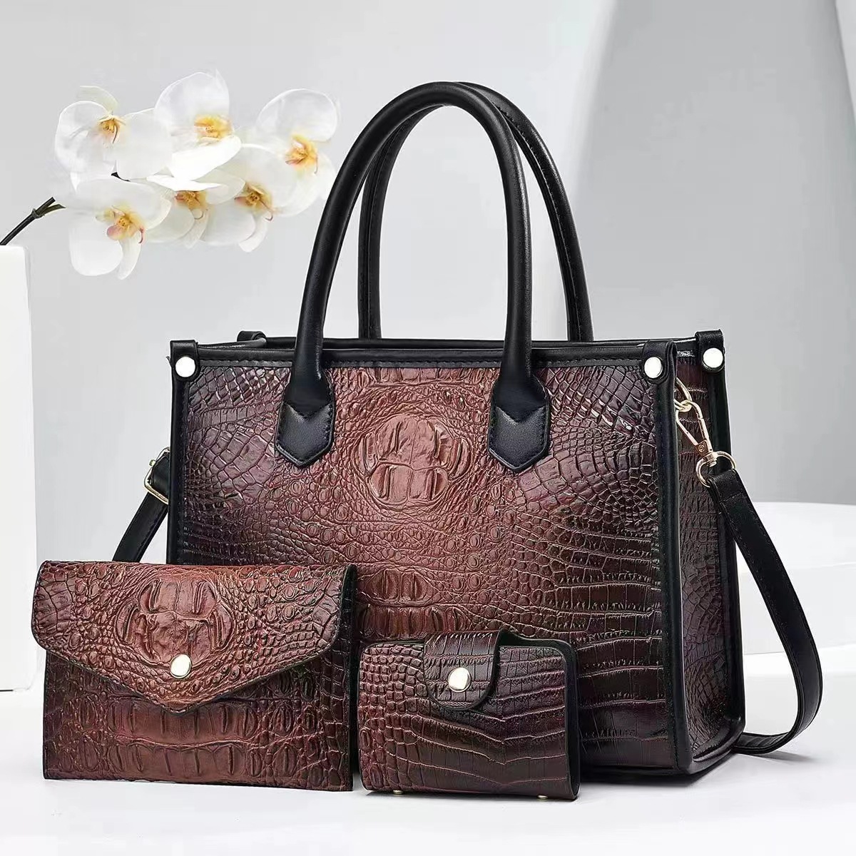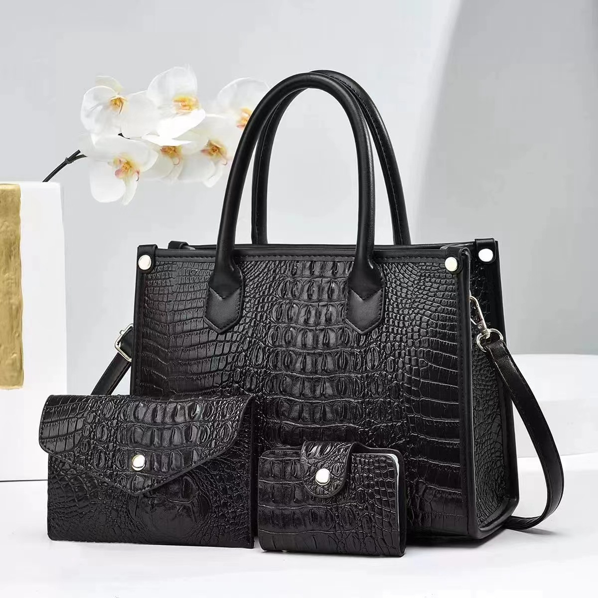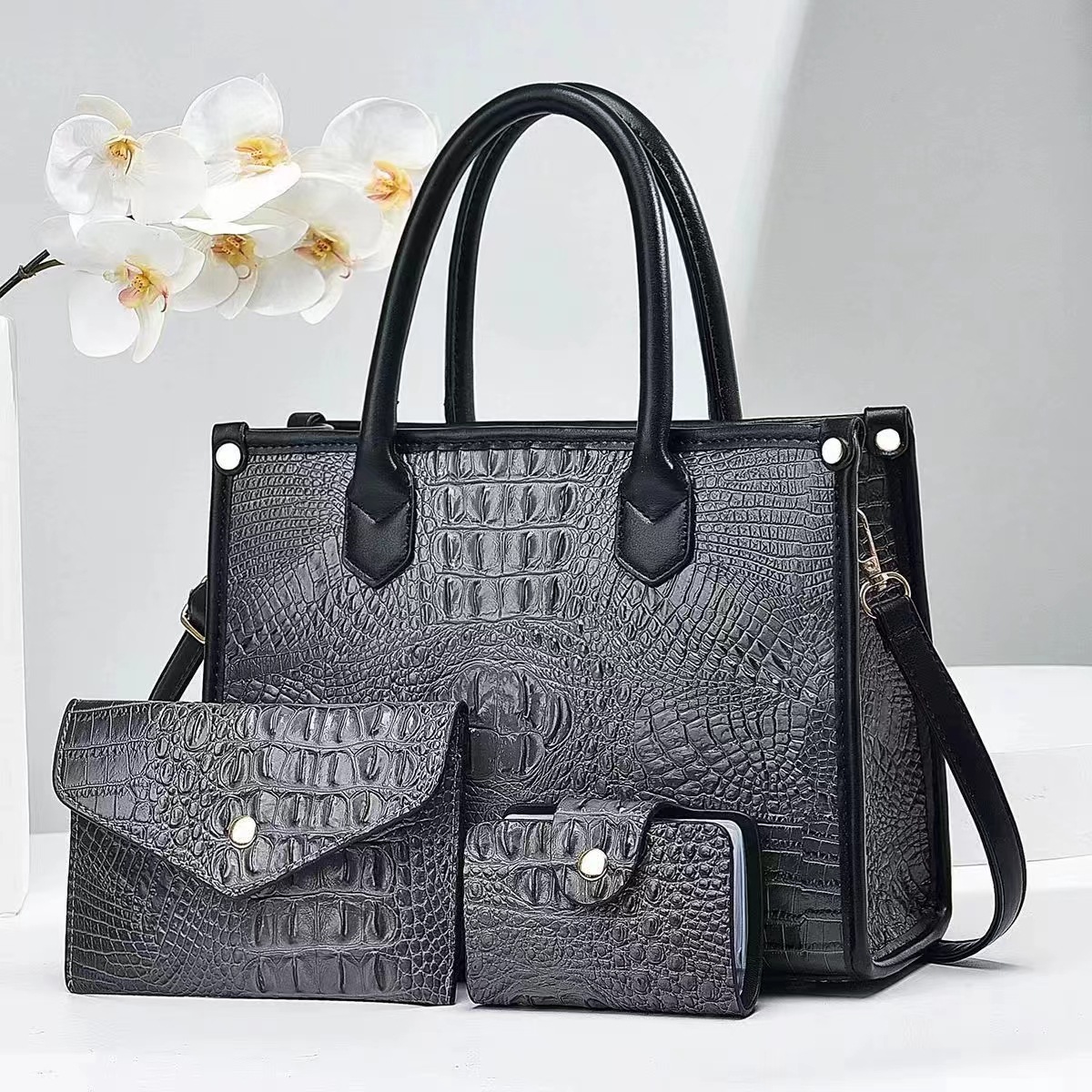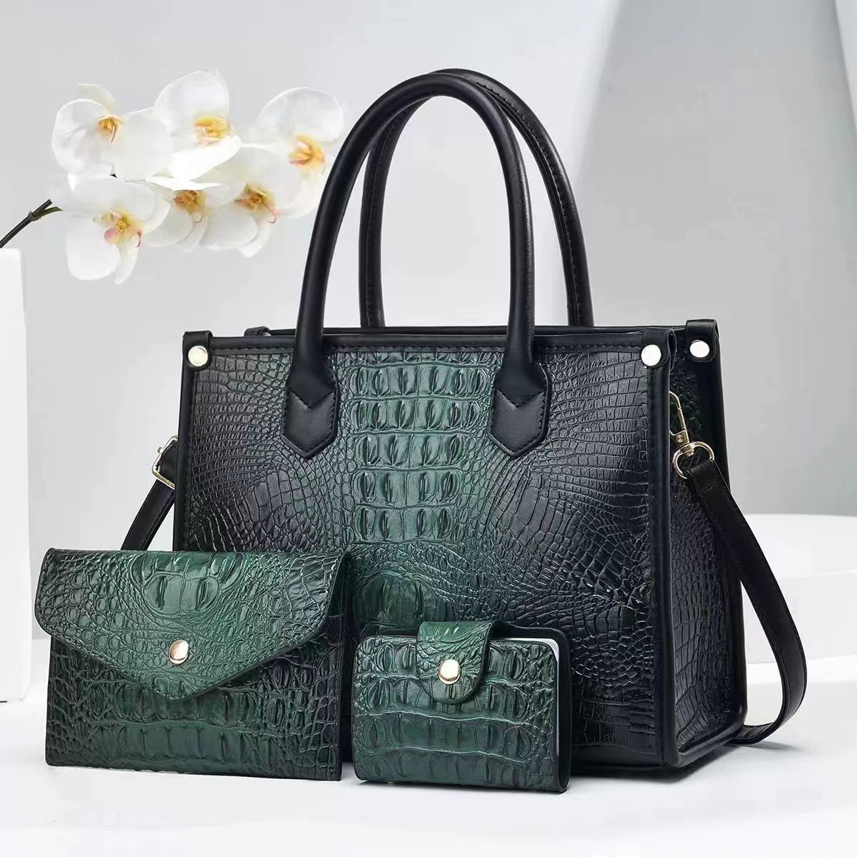 2024 New foreign trade bestseller fashionable women's handbag, European and American trend single-shoulder bag, crocodile pattern large capacity three-piece set, other categories selected