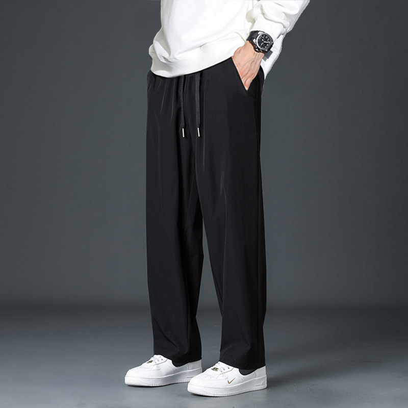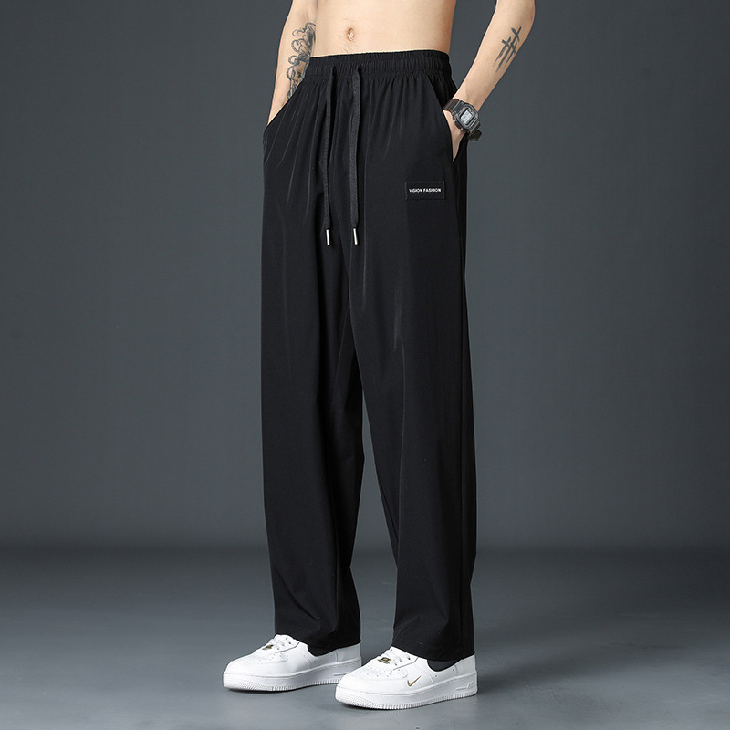 2024 New ice Silk pants for men: Summer thin, high, street-flowing straight-leg wide-leg pants, summer sporty and casual trousers