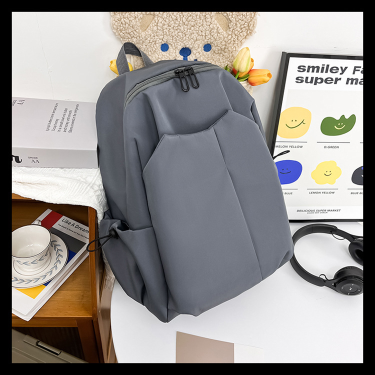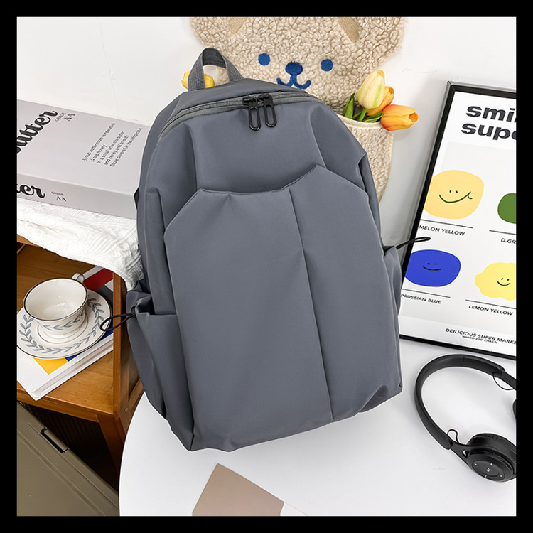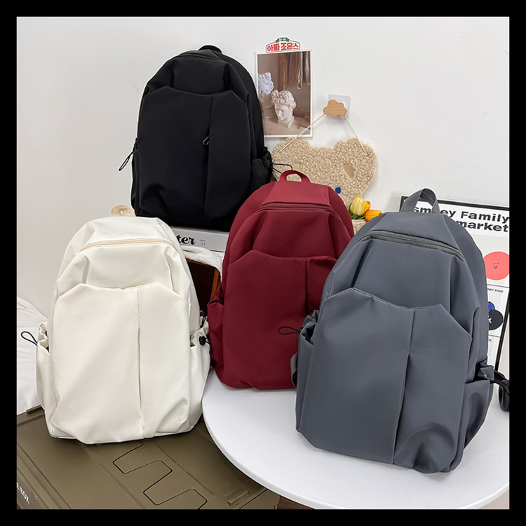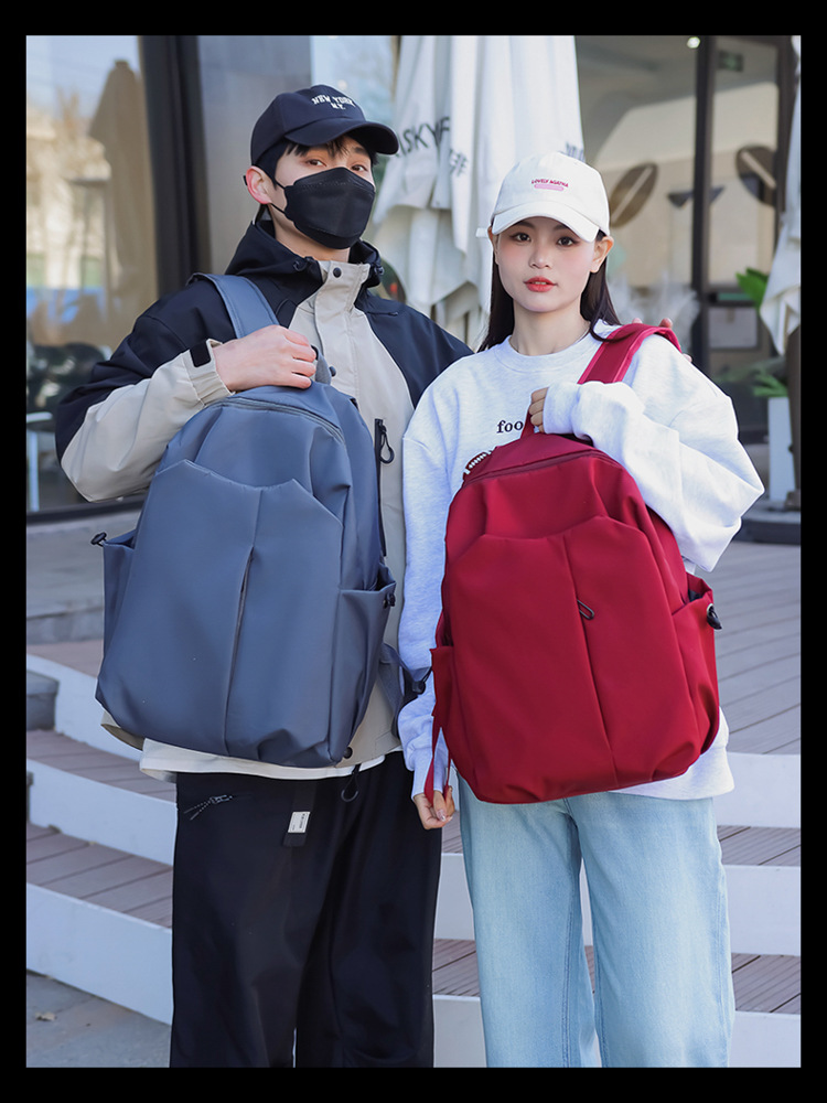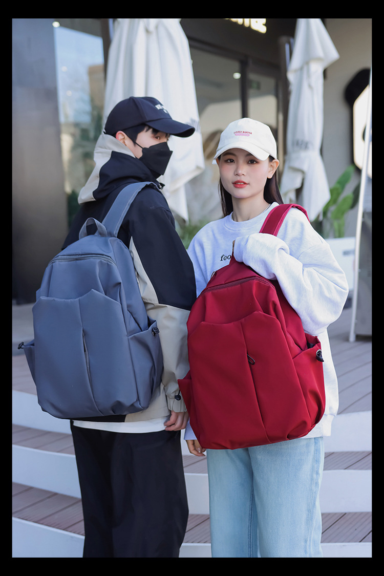 2024 New minimalist solid-color computer backpack, university and high school backpack, forest-style campus backpack, men's and women's backpacks