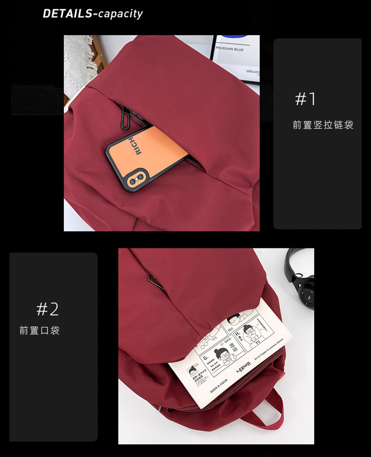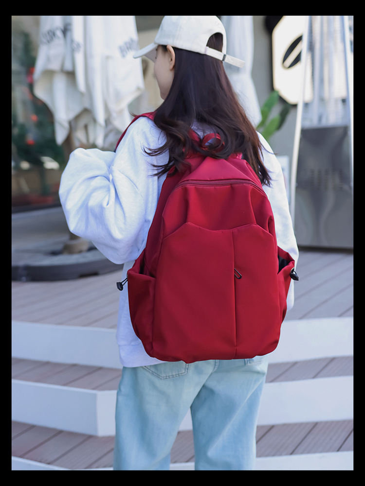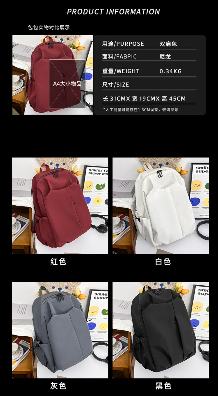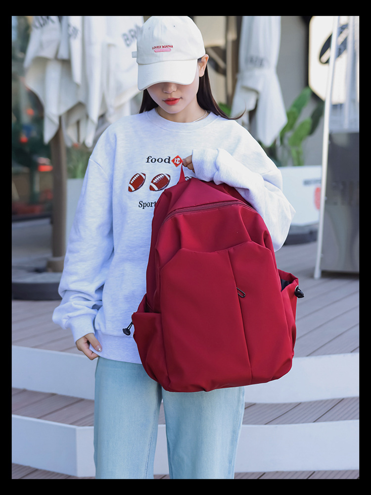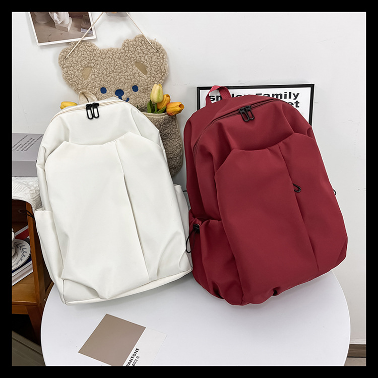2024 New minimalist solid-color computer backpack, university and high school backpack, forest-style campus backpack, men's and women's backpacks