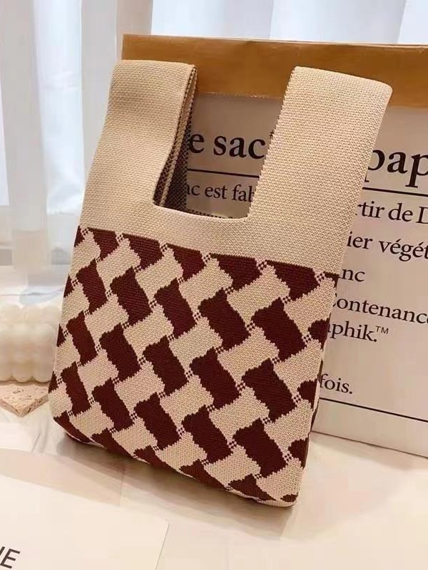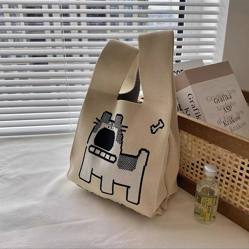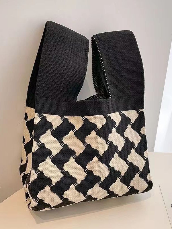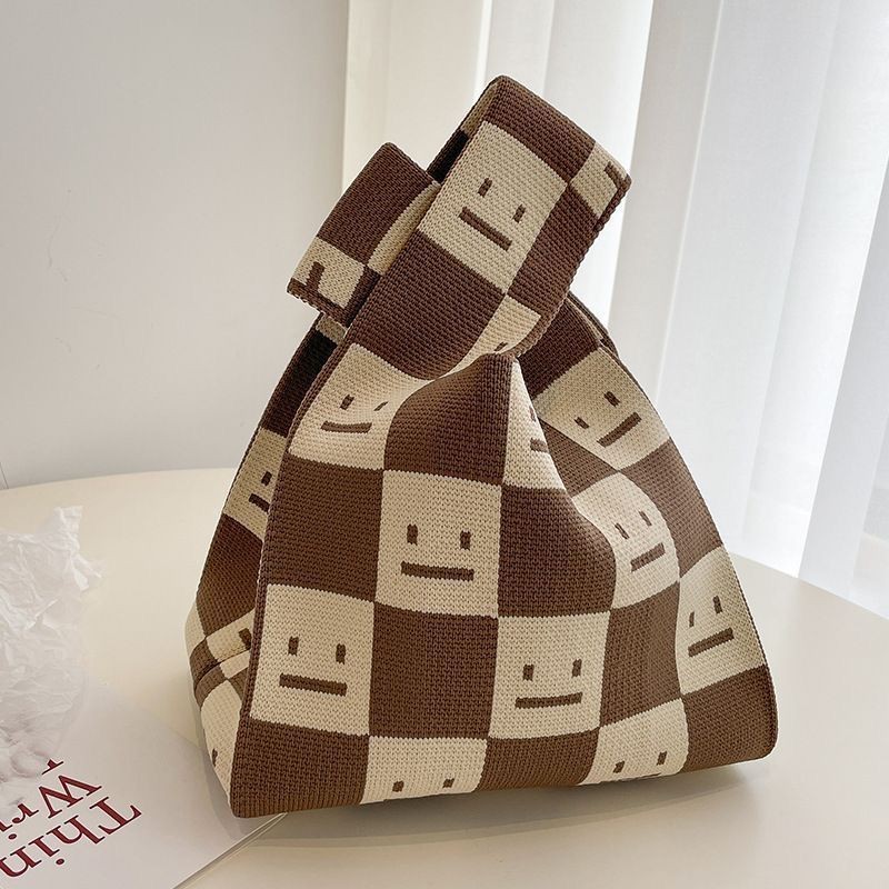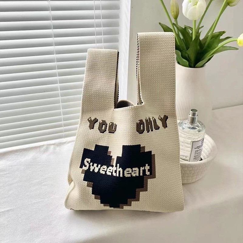 2024 New style knitted hand-held bag, bow tote bag, women's woolen bag, versatile daily casual handbag