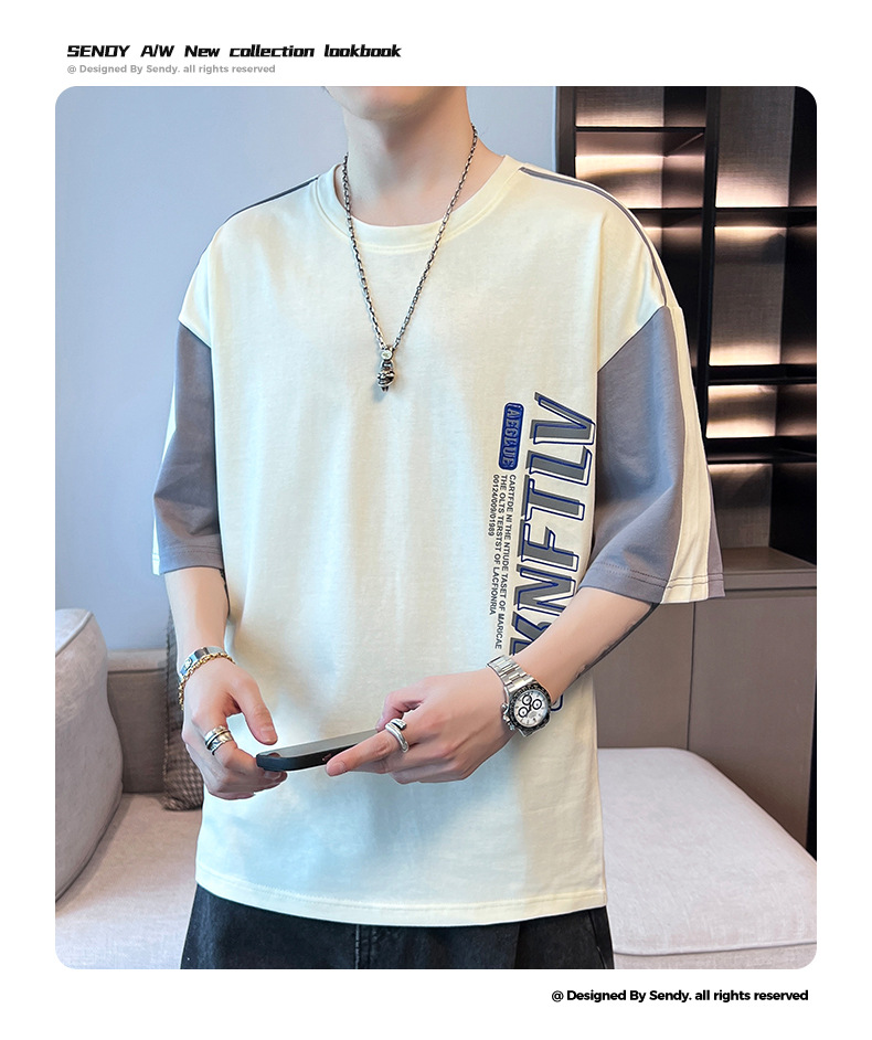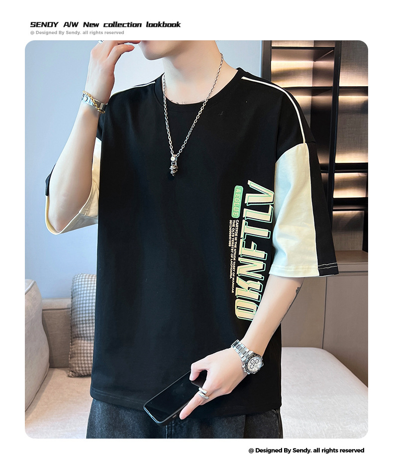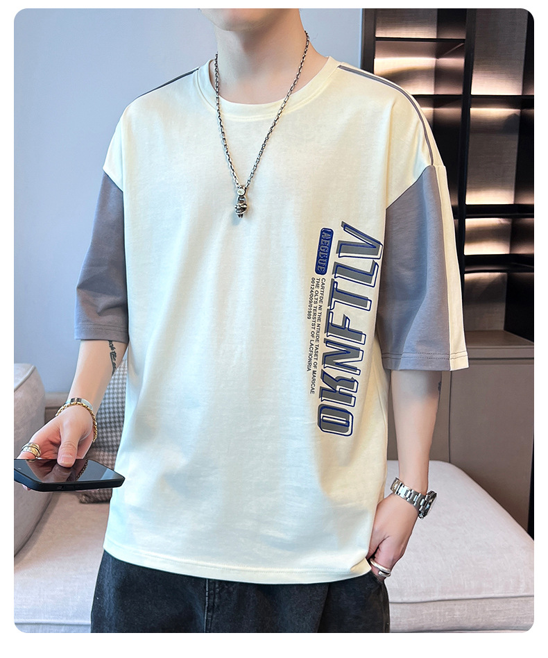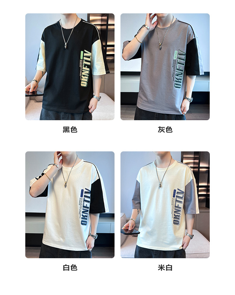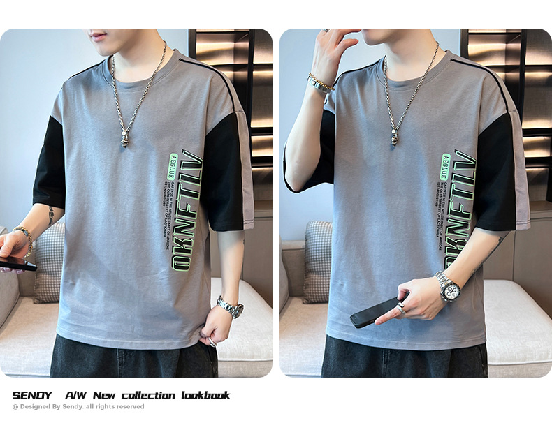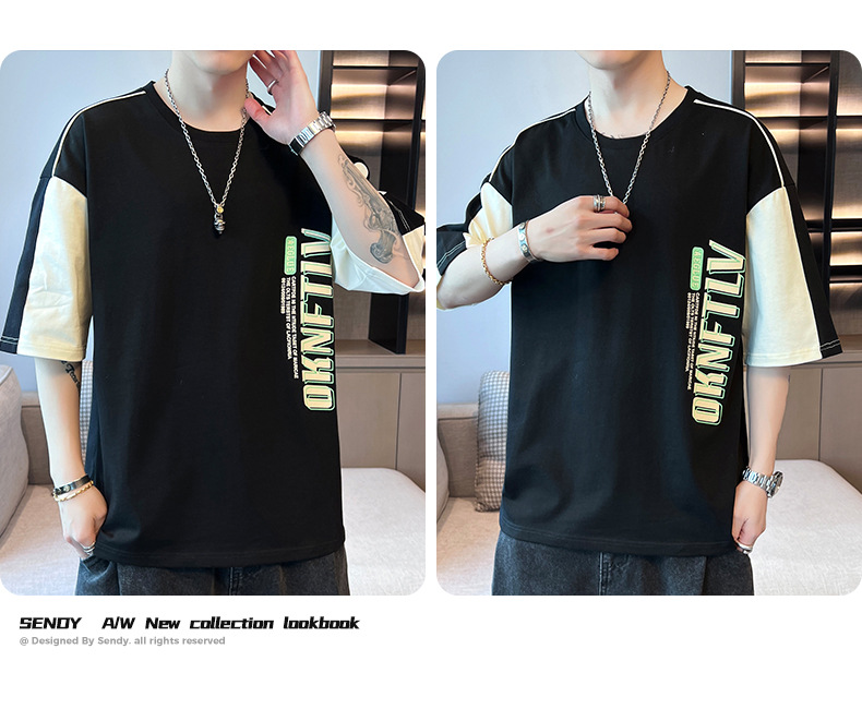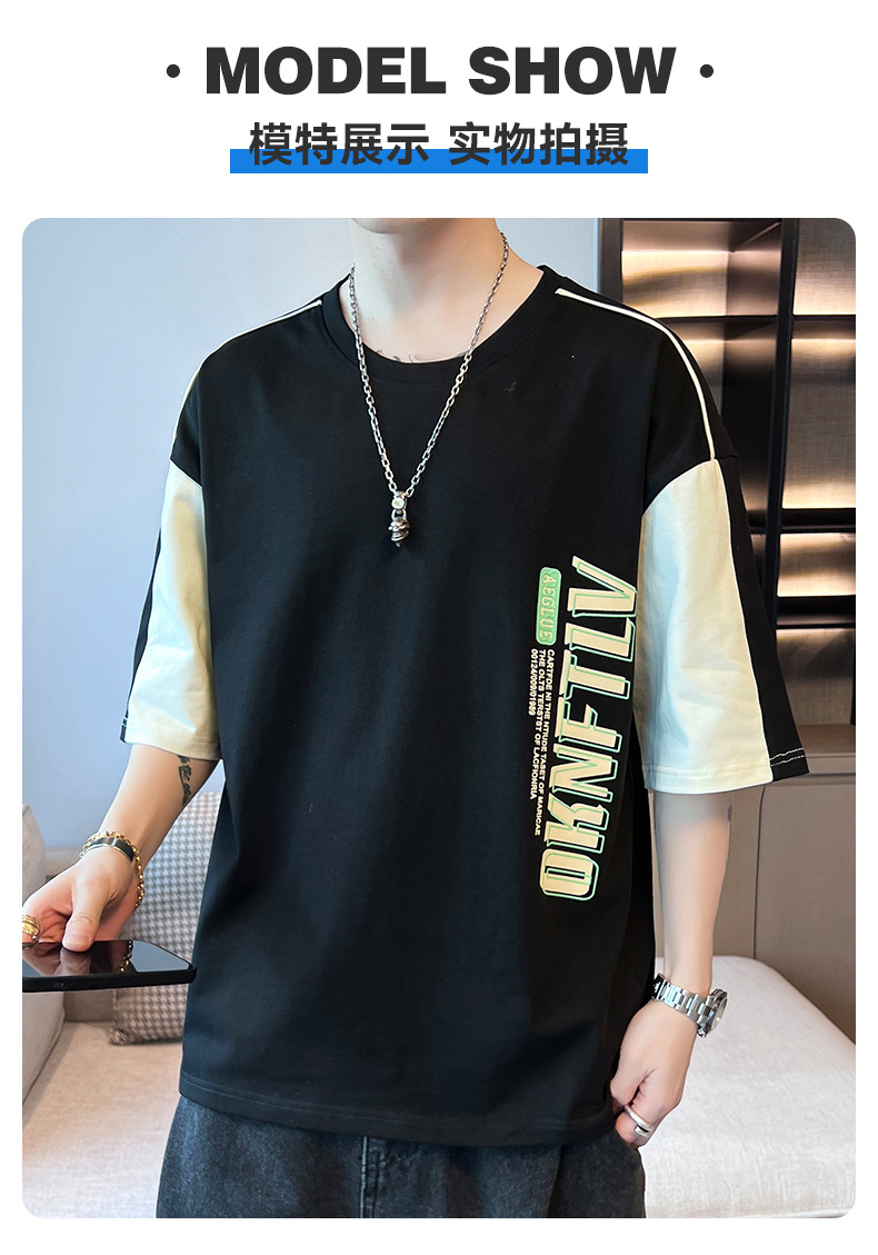 2024 New summer men's trendy loose wear, a student short-sleeved T-shirt set, five-quarter and half-sleeve T-shirt top