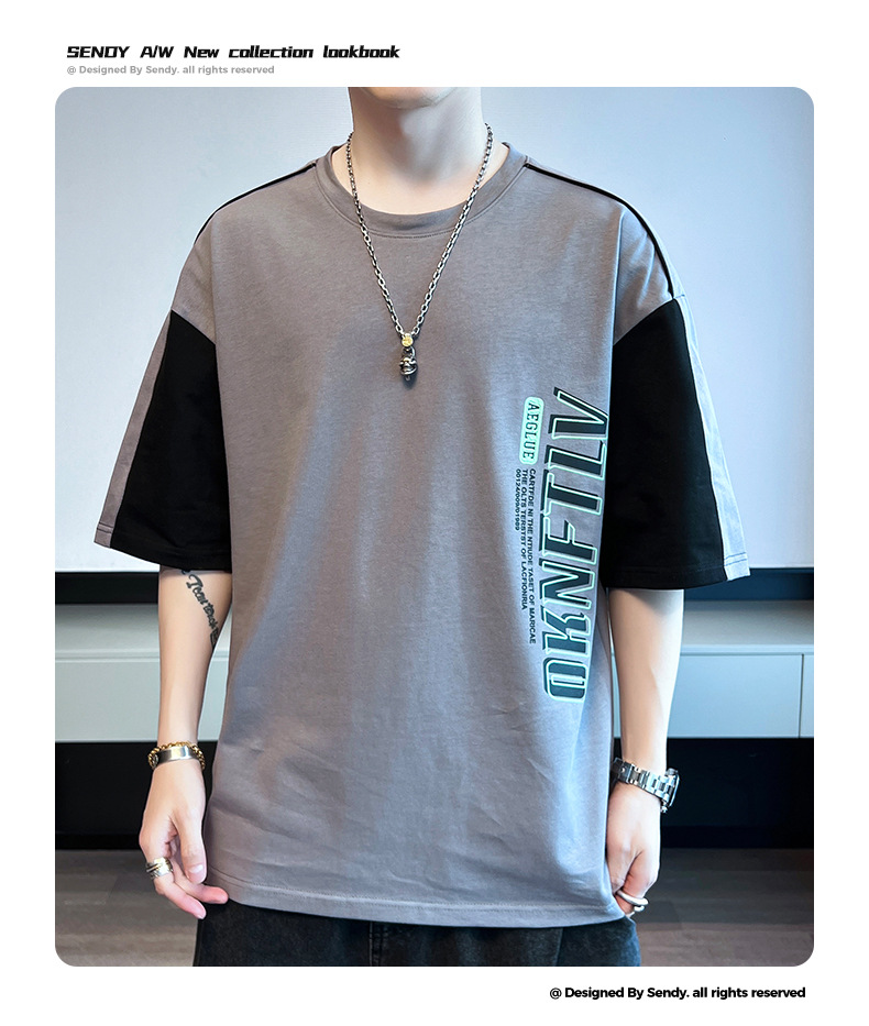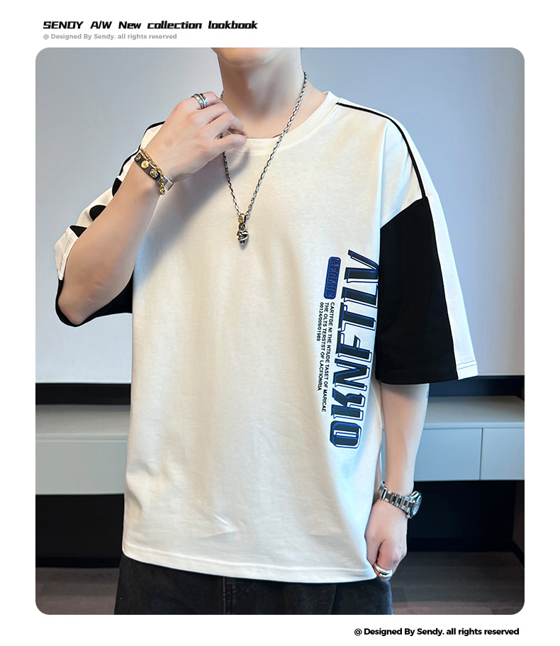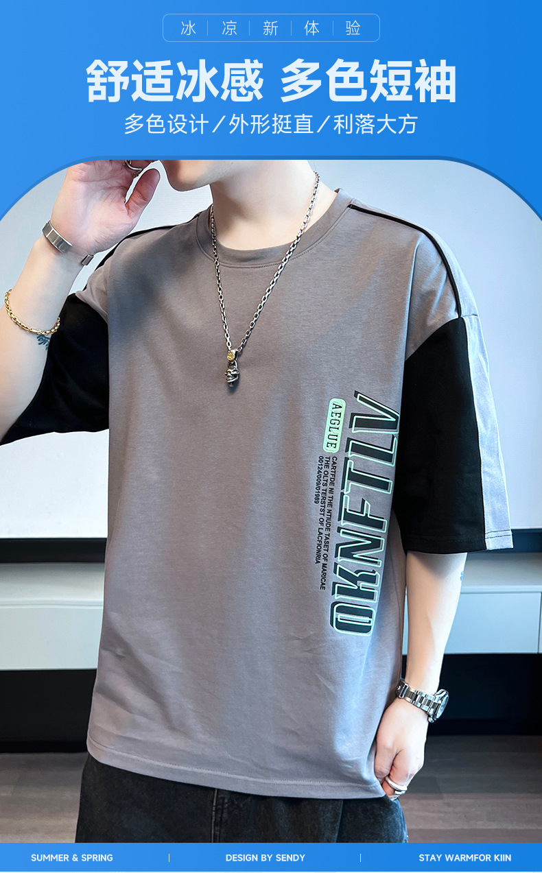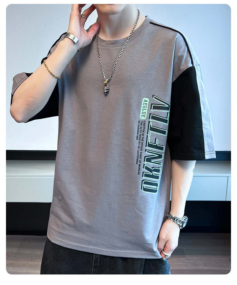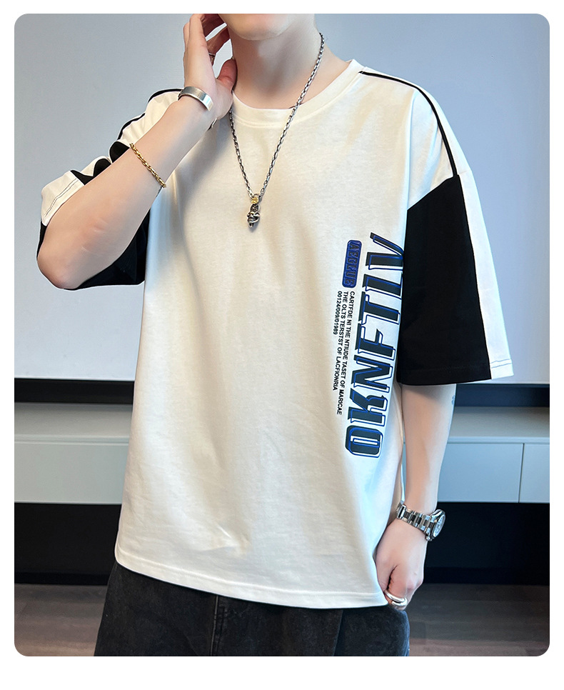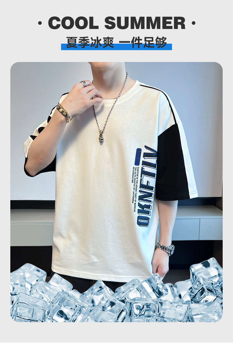 2024 New summer men's trendy loose wear, a student short-sleeved T-shirt set, five-quarter and half-sleeve T-shirt top
