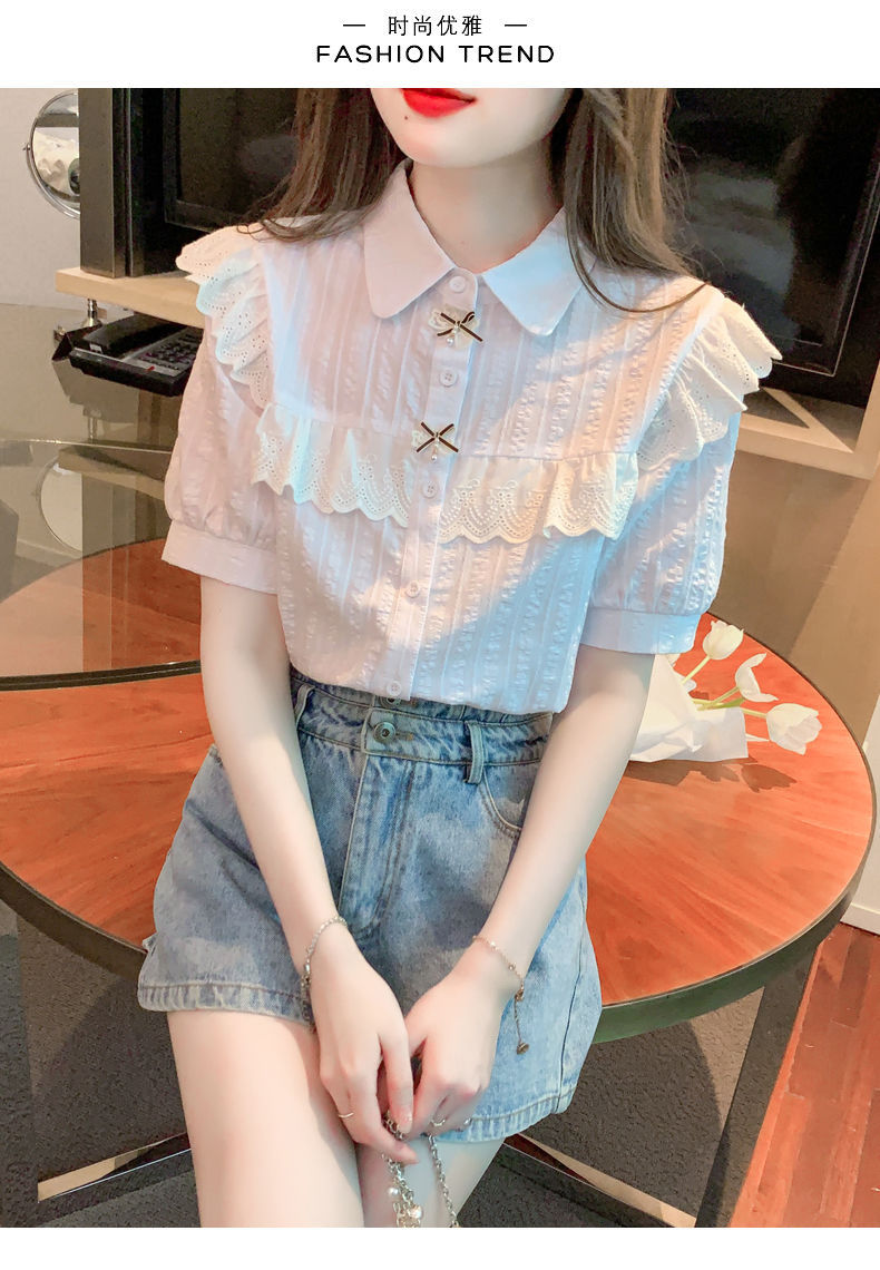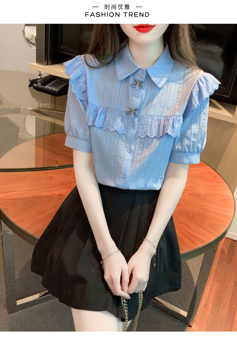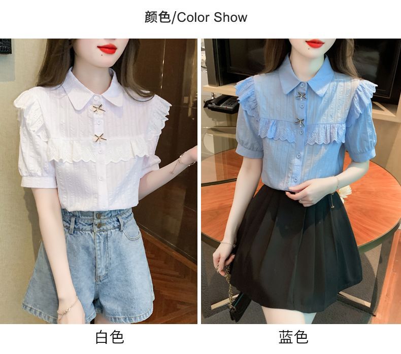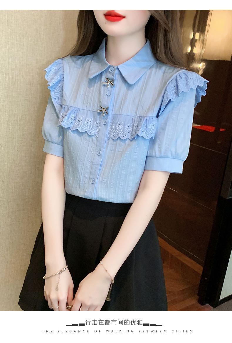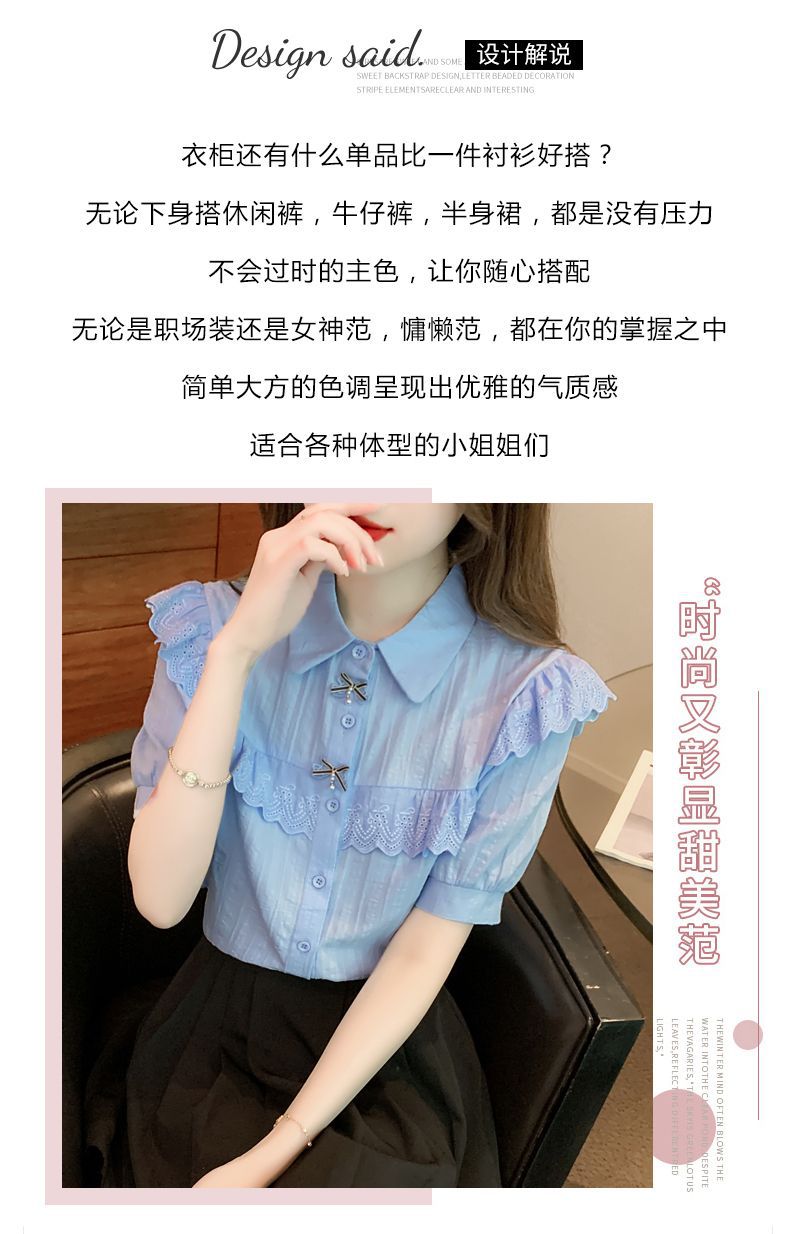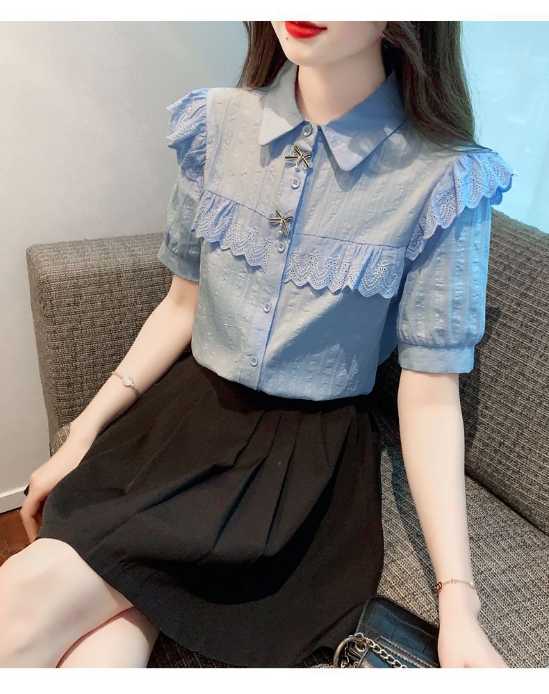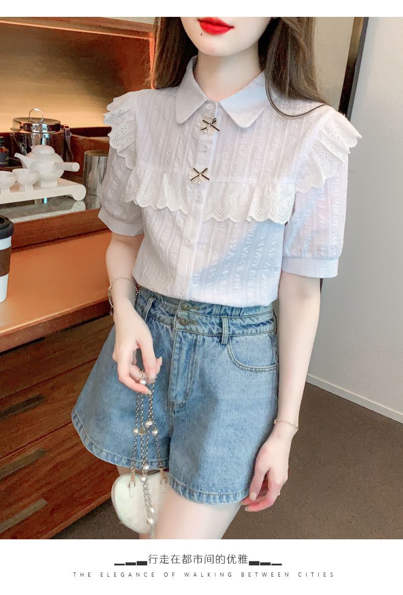 2024 New summer women's shirt, pure cotton shirt, stylish for women, all-cotton design sense, niche short-sleeved lace top
