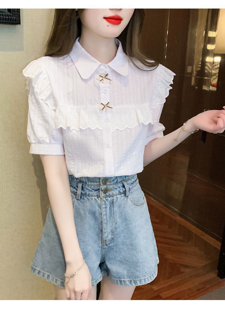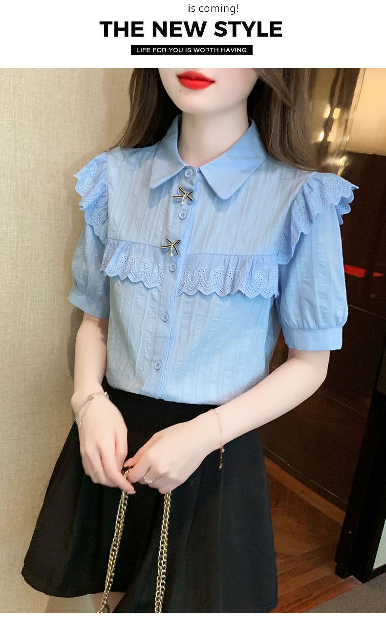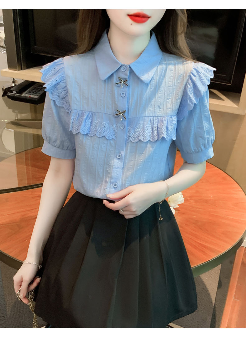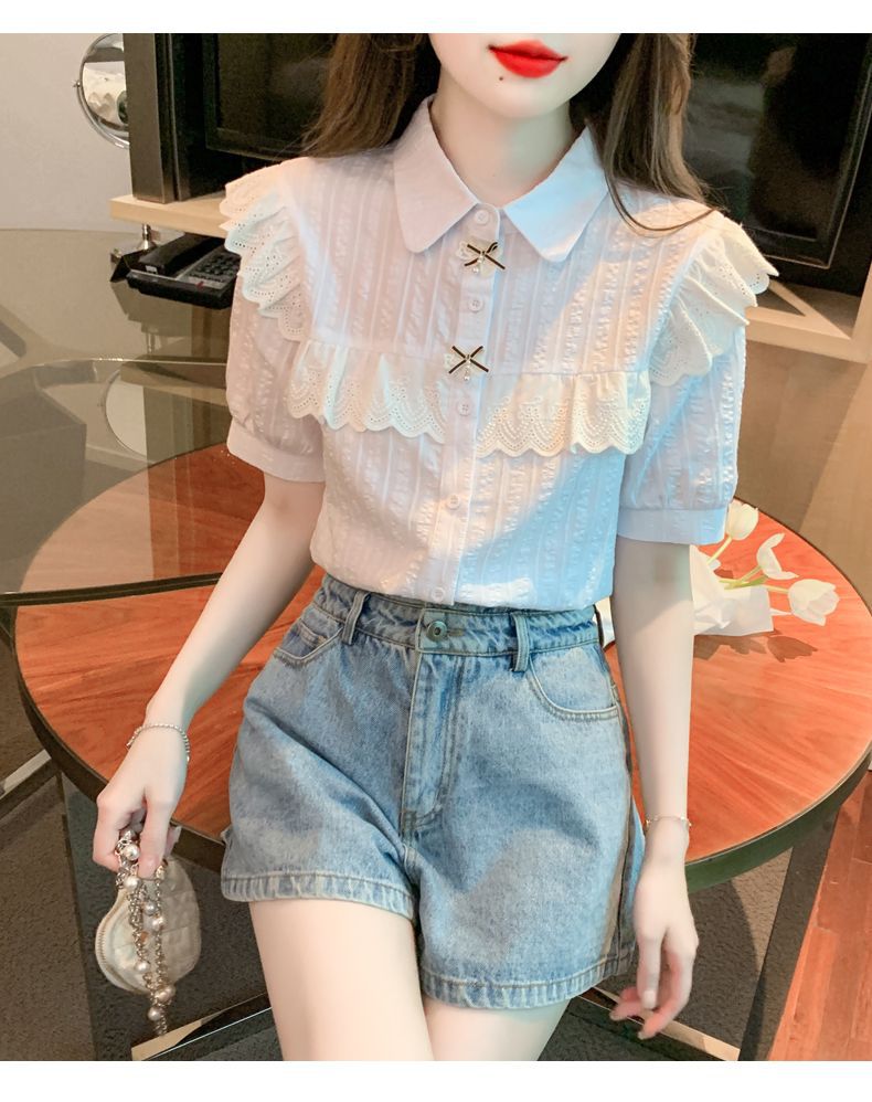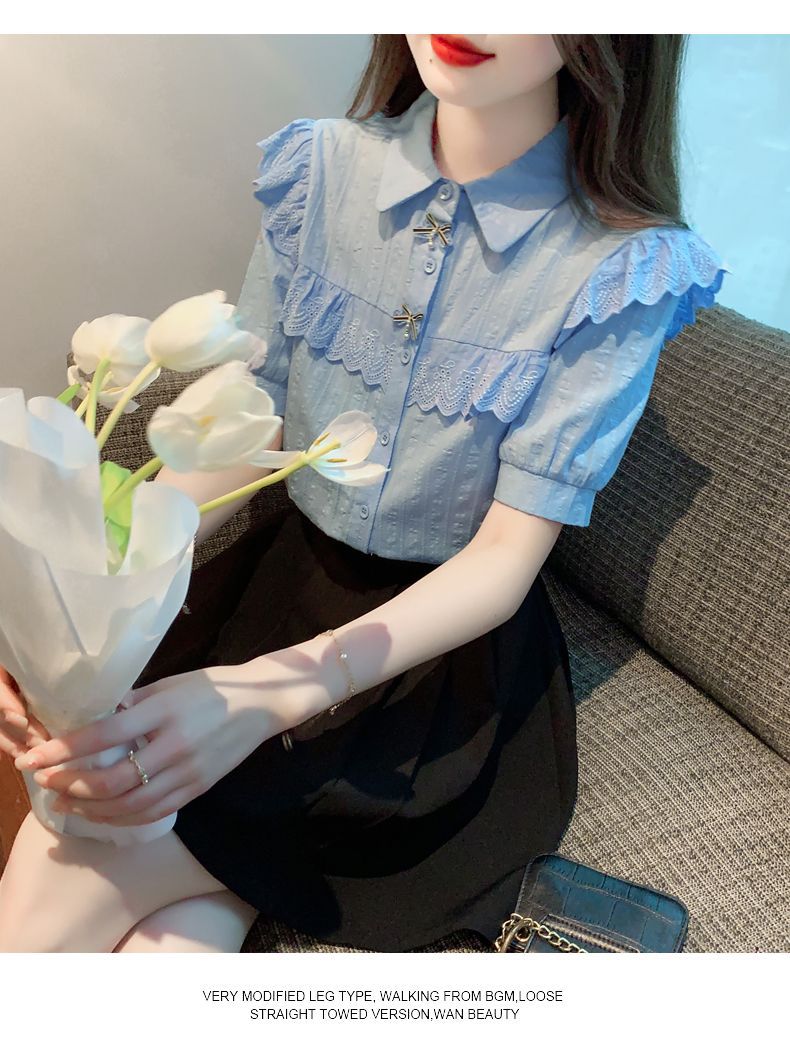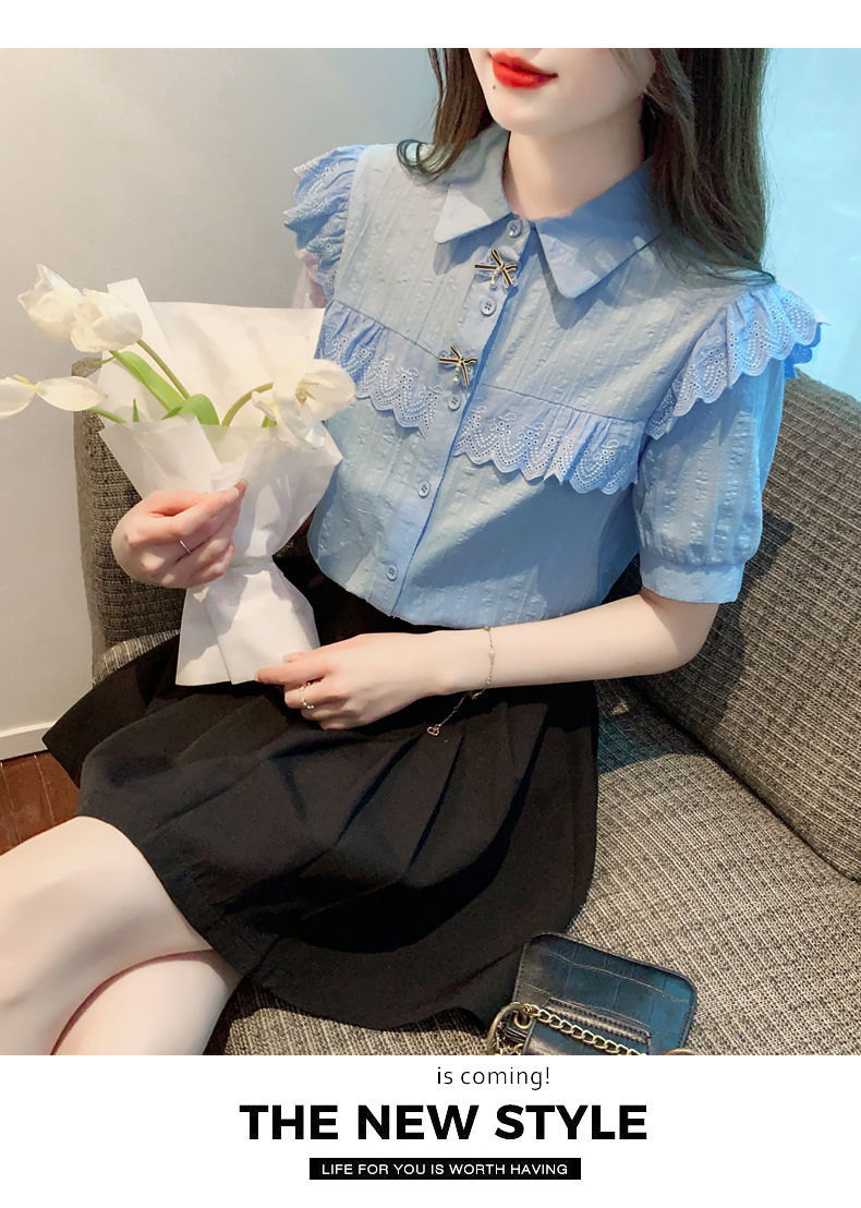 2024 New summer women's shirt, pure cotton shirt, stylish for women, all-cotton design sense, niche short-sleeved lace top