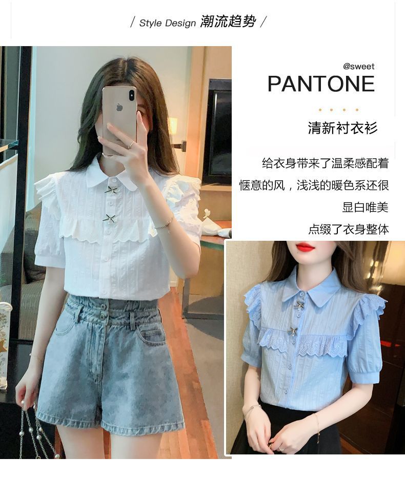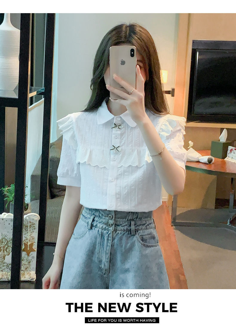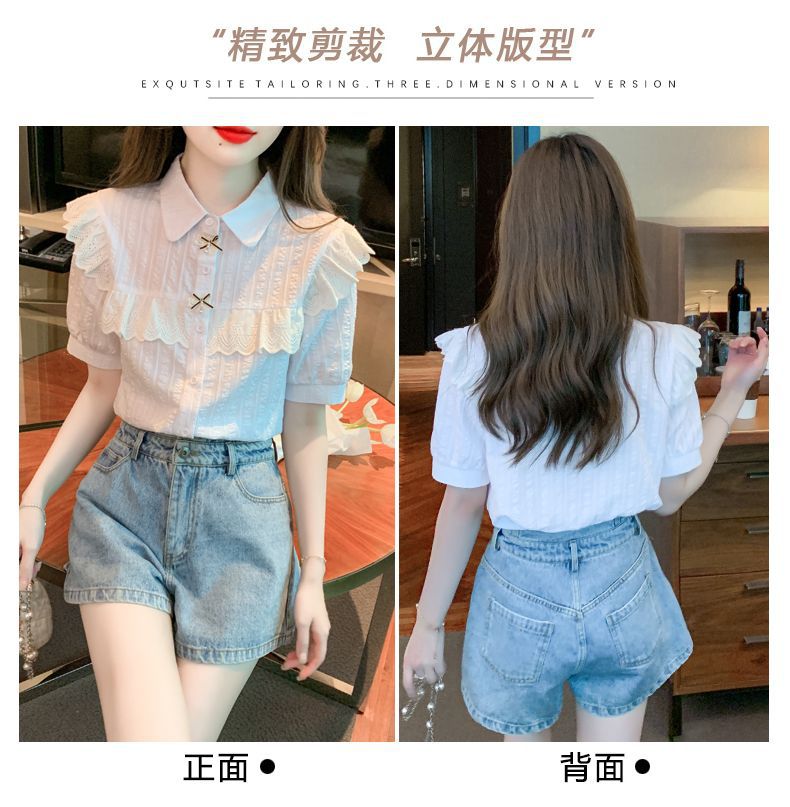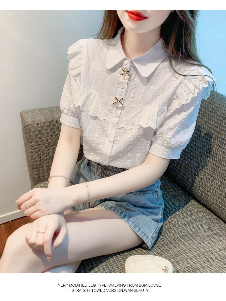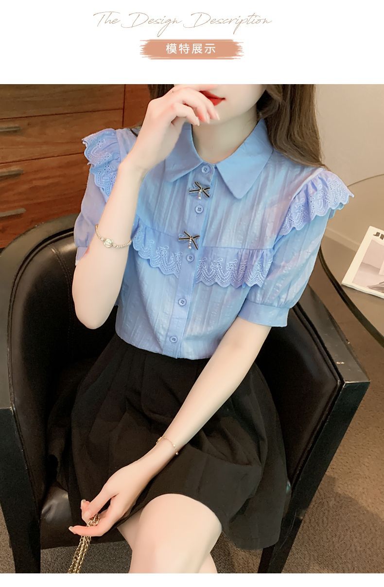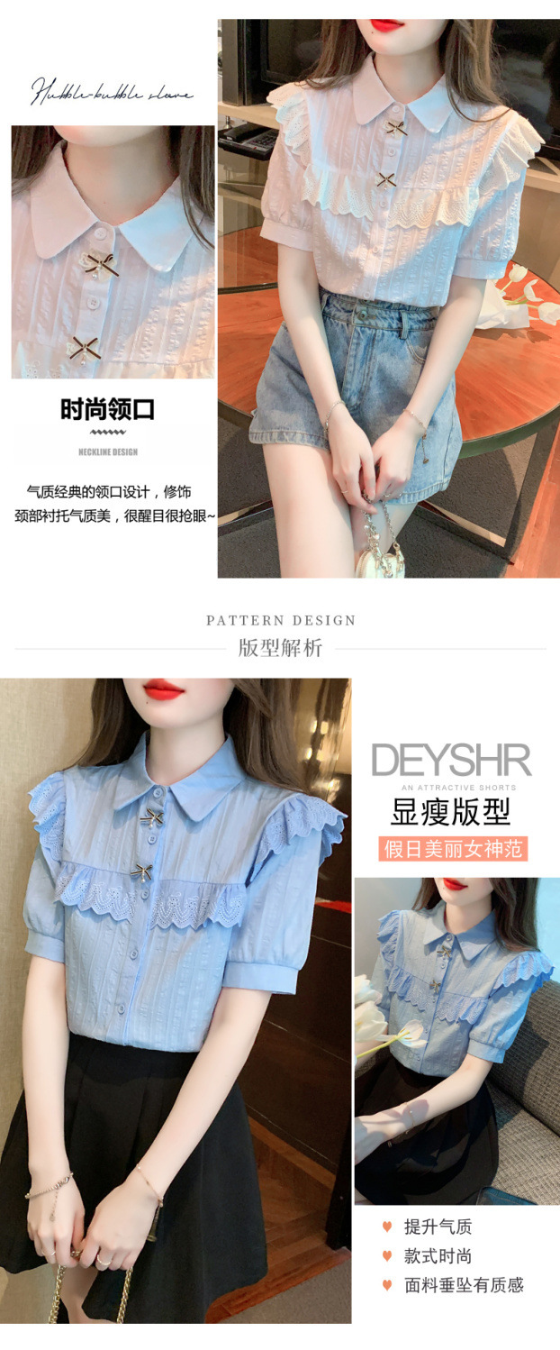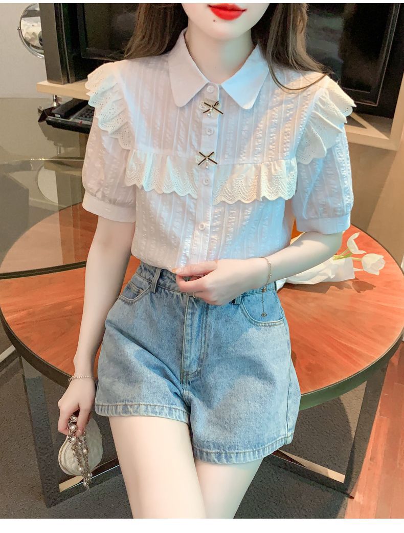 2024 New summer women's shirt, pure cotton shirt, stylish for women, all-cotton design sense, niche short-sleeved lace top