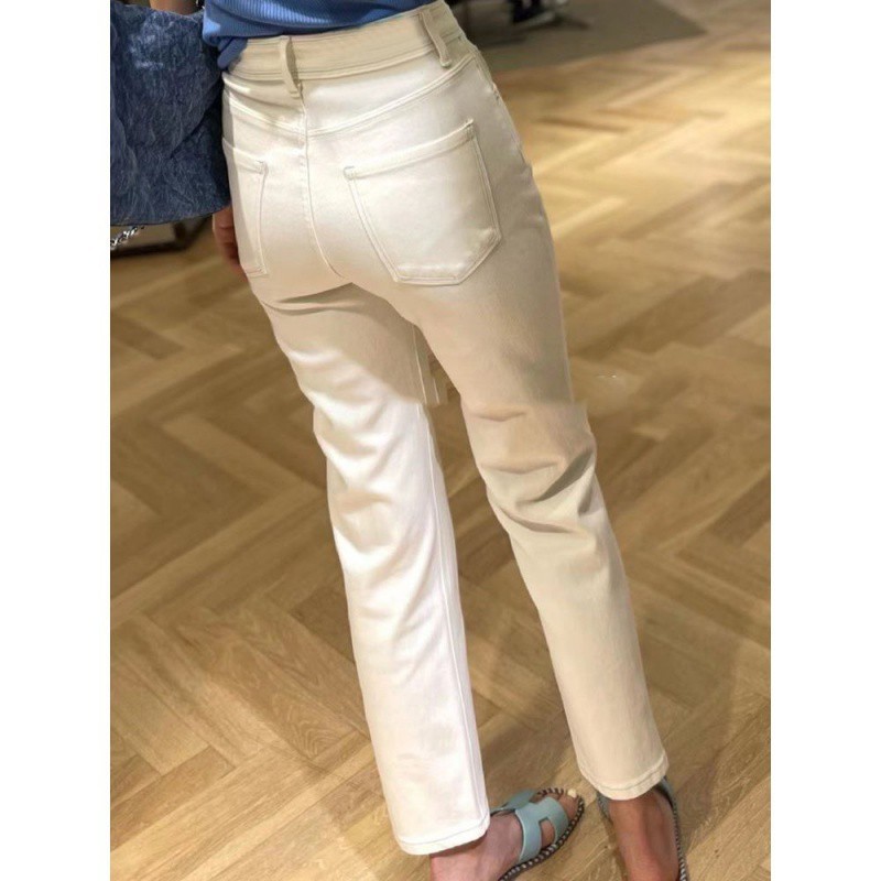 2024 Spring/Summer new European style high-waisted slimming cigarette tube narrow version jeans, baguette straight leg slightly flared white jeans for women