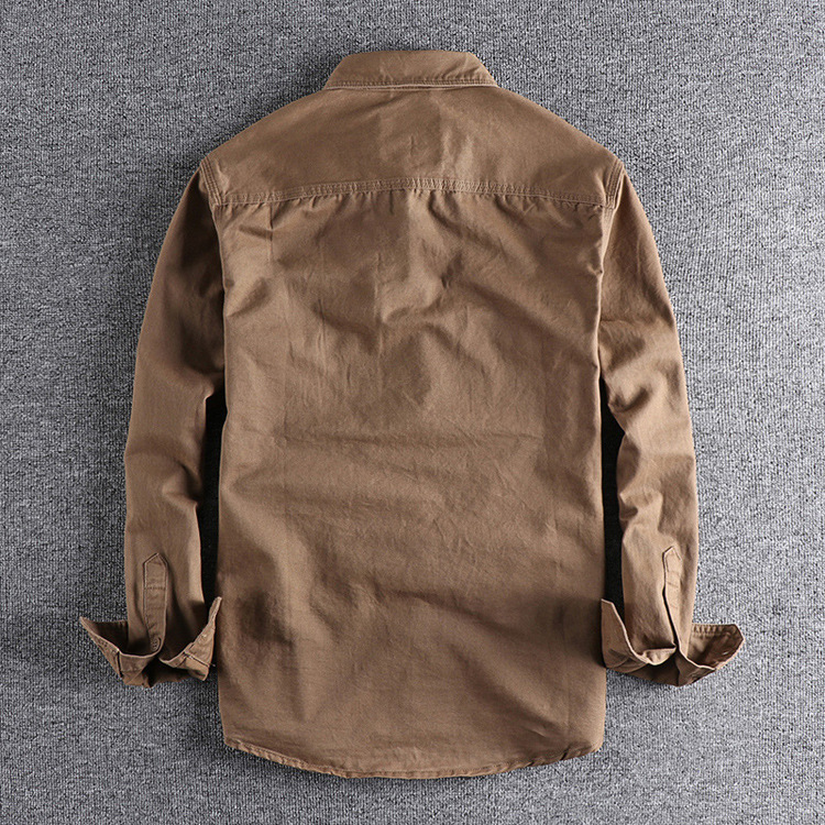 2025 Autumn new washed woven men's workwear shirt, American trend, slim and versatile light jacket, youth cotton