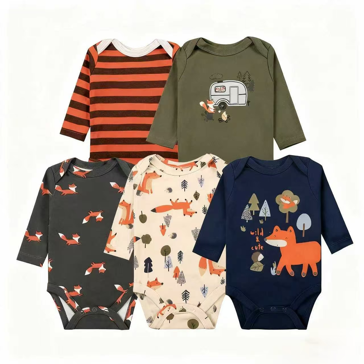 "2025 Autumn/Winter Bestsellers!" 5 sets of Class A pure cotton baby one-piece suits for 0-1 year old, warm crawling clothes for Hayi cross-border wholesale