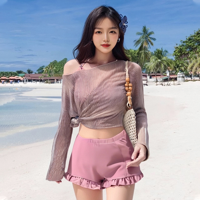 2025 Korean Instagram Sexy slimming and belt-covering two-piece bikini Set - Three-piece long-sleeved swimsuit -1012319