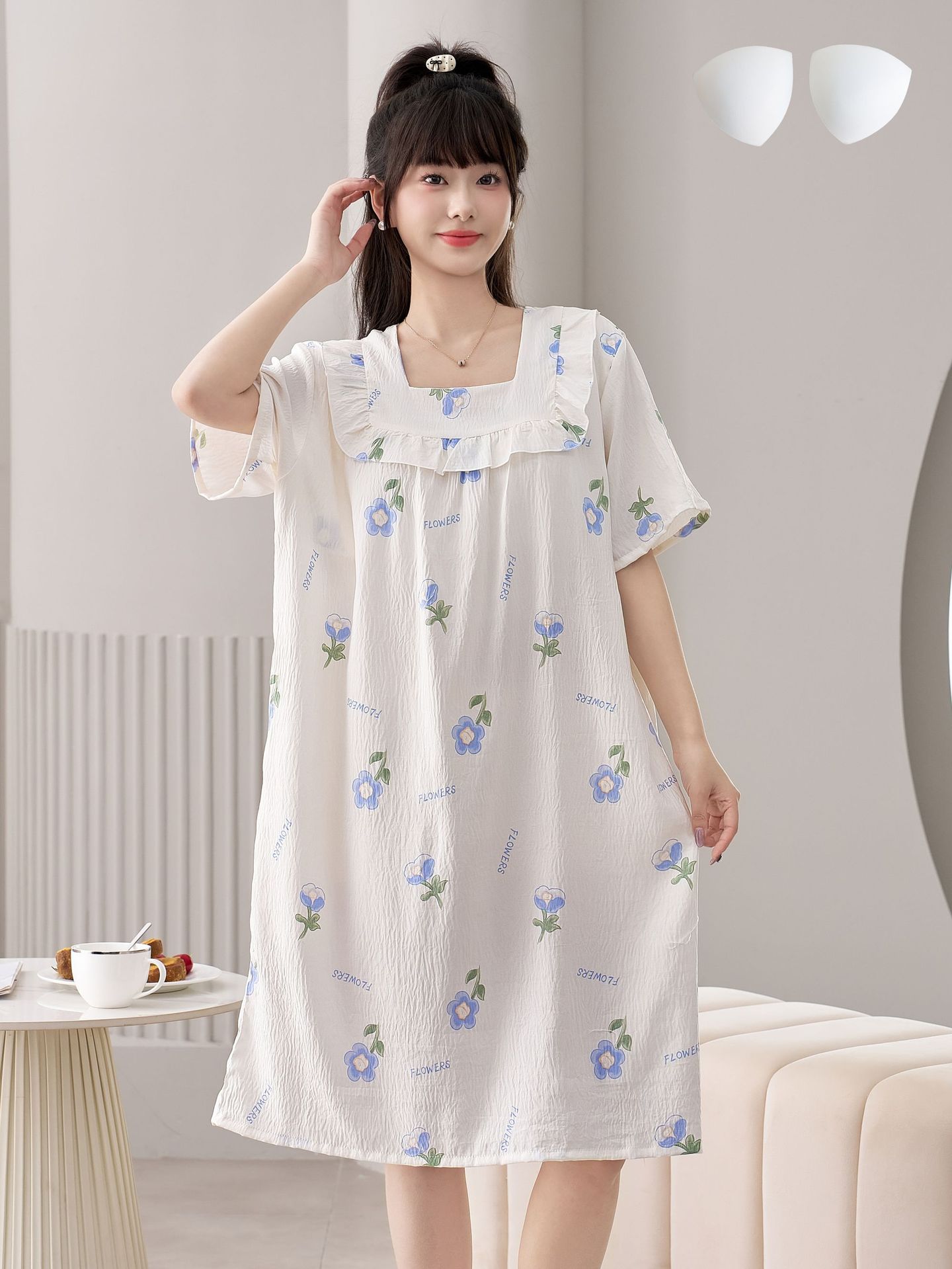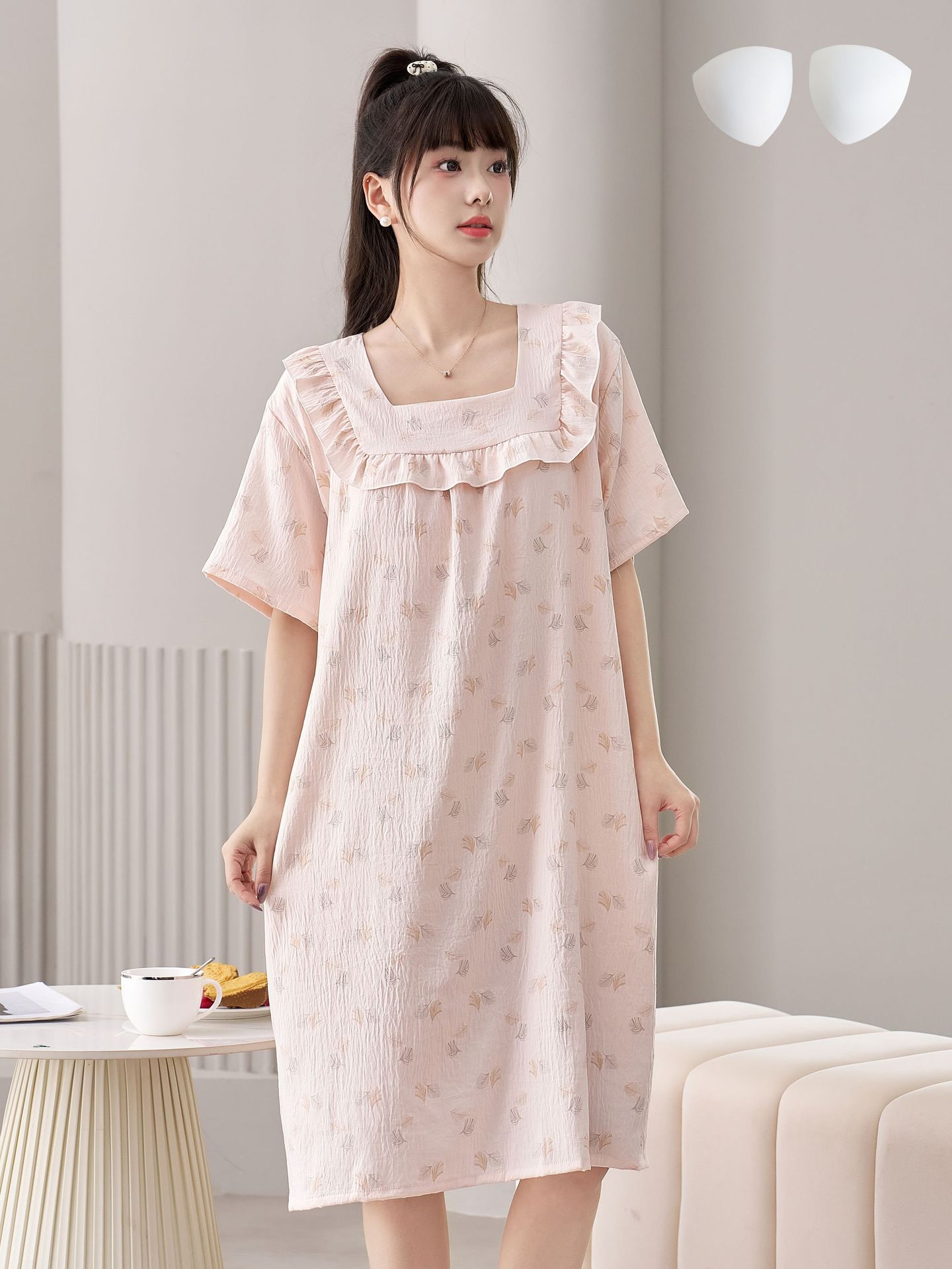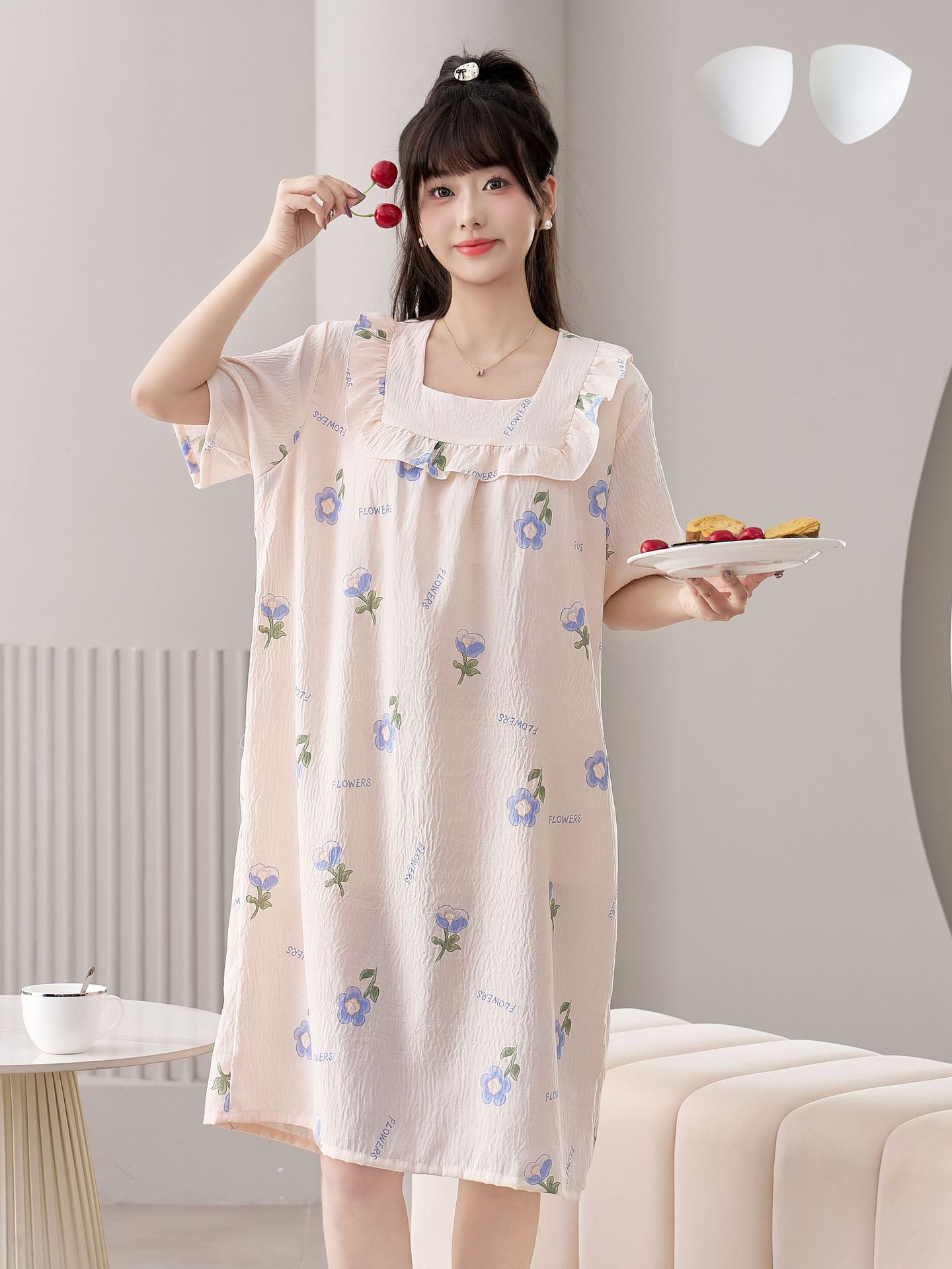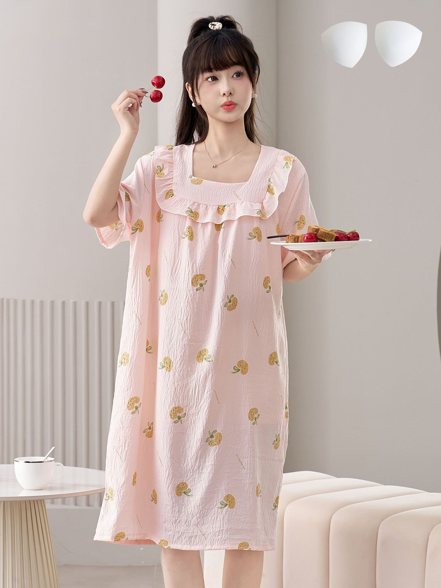 2025 New Fairy Wind and Cloud Cotton women's casual sleeping dress with square collar, simple and thin style with chest pad, children's home wear