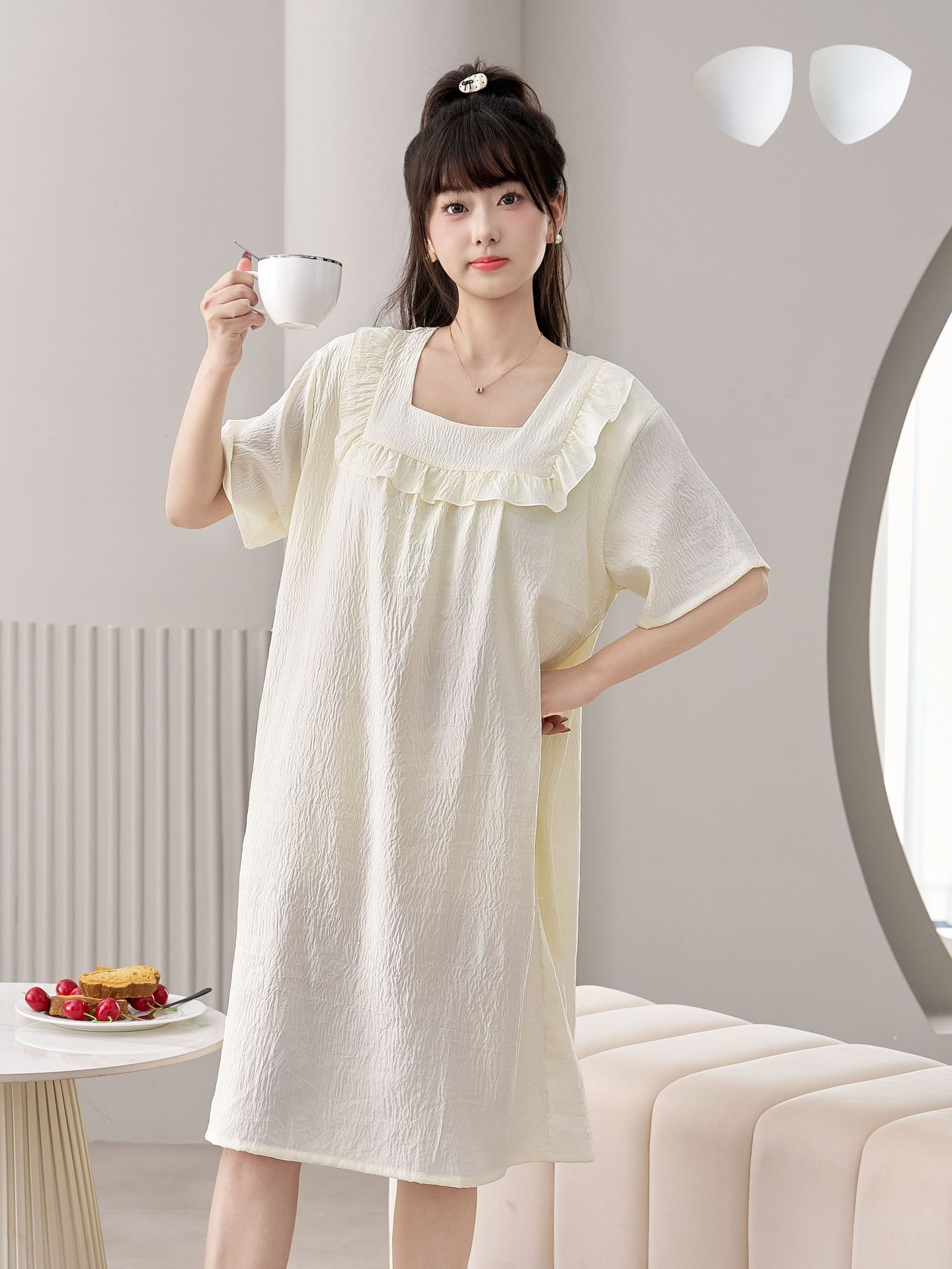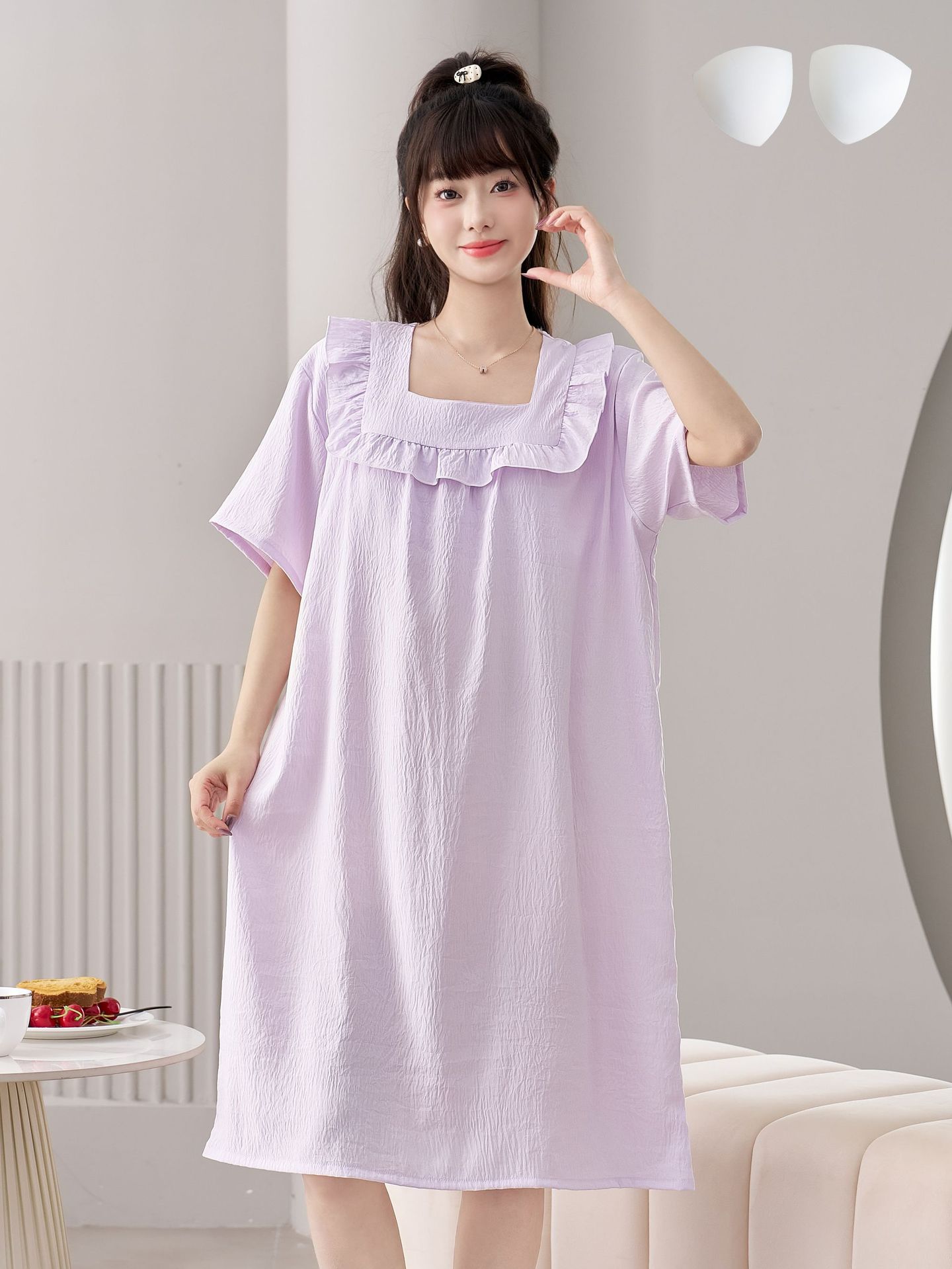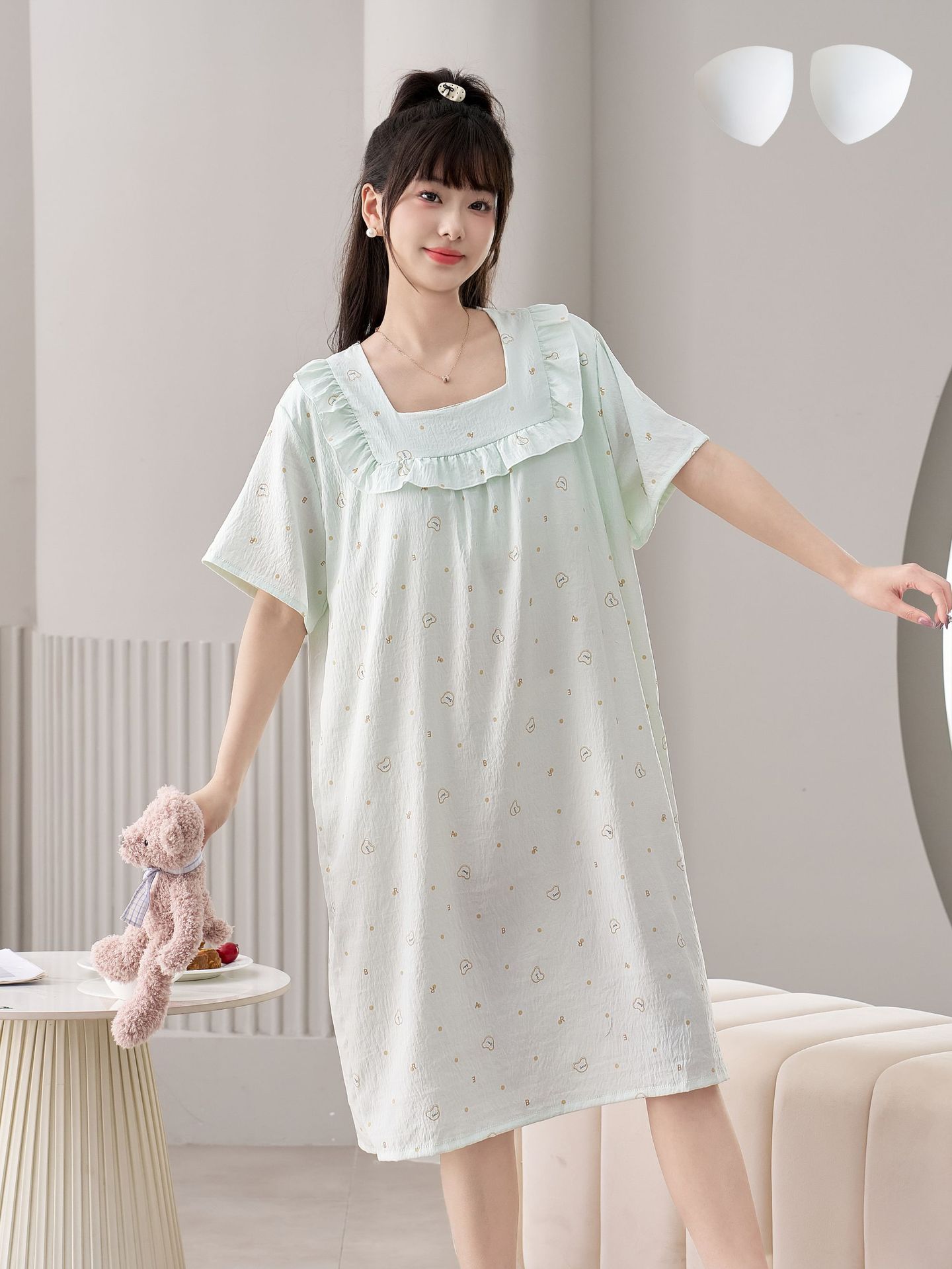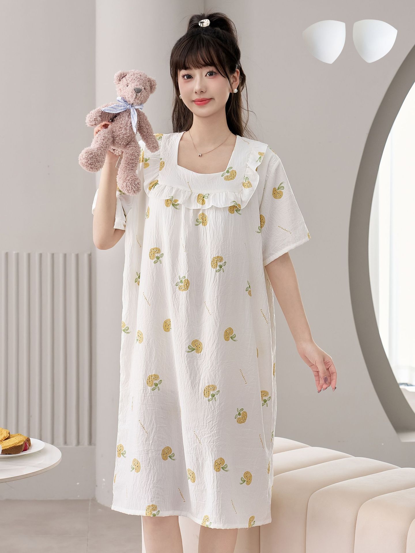 2025 New Fairy Wind and Cloud Cotton women's casual sleeping dress with square collar, simple and thin style with chest pad, children's home wear
