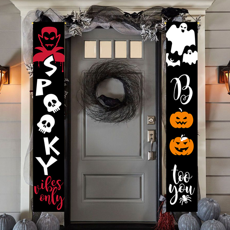 2025 New Halloween couplet polyester fabric LED illuminated decorative flag, ghost door curtain, party supplies hanging cloth
