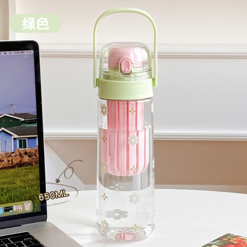 2025 New hand-held bouncing flower tea cup, student couple plastic water cup, portable tea and water separation cup for women going out