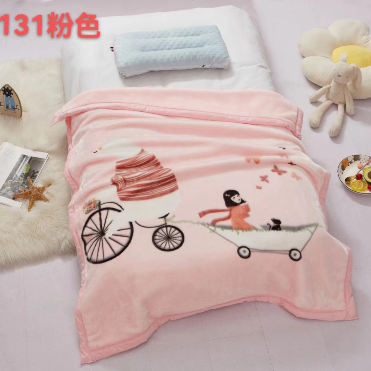 2025 New style mink fleece casual children's blanket, infant and toddler cloud children's blanket, cartoon air conditioner baby thickened small cover blanket