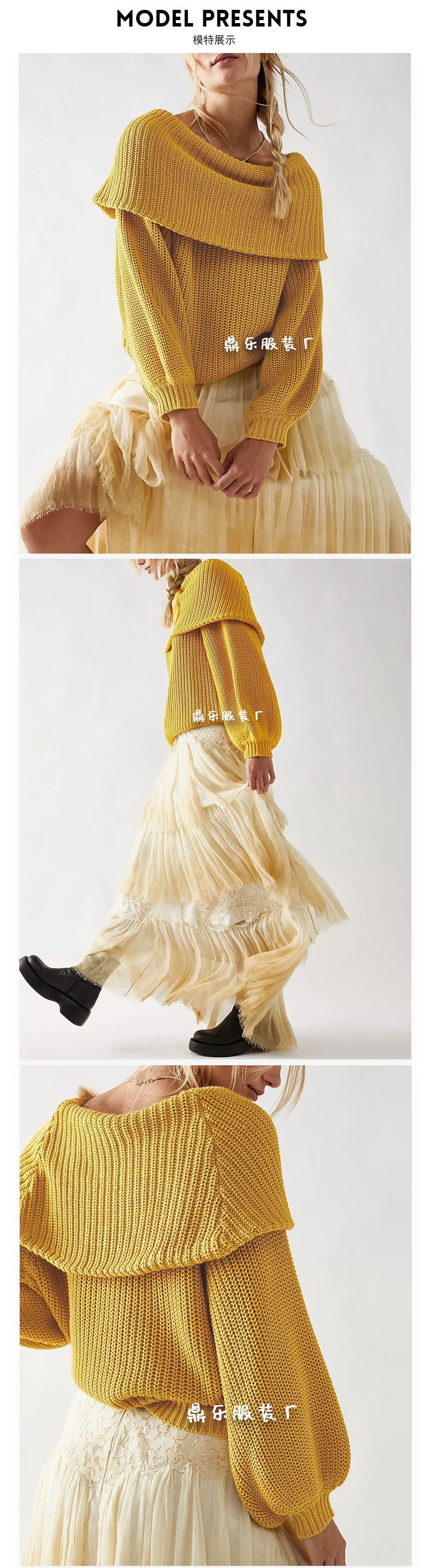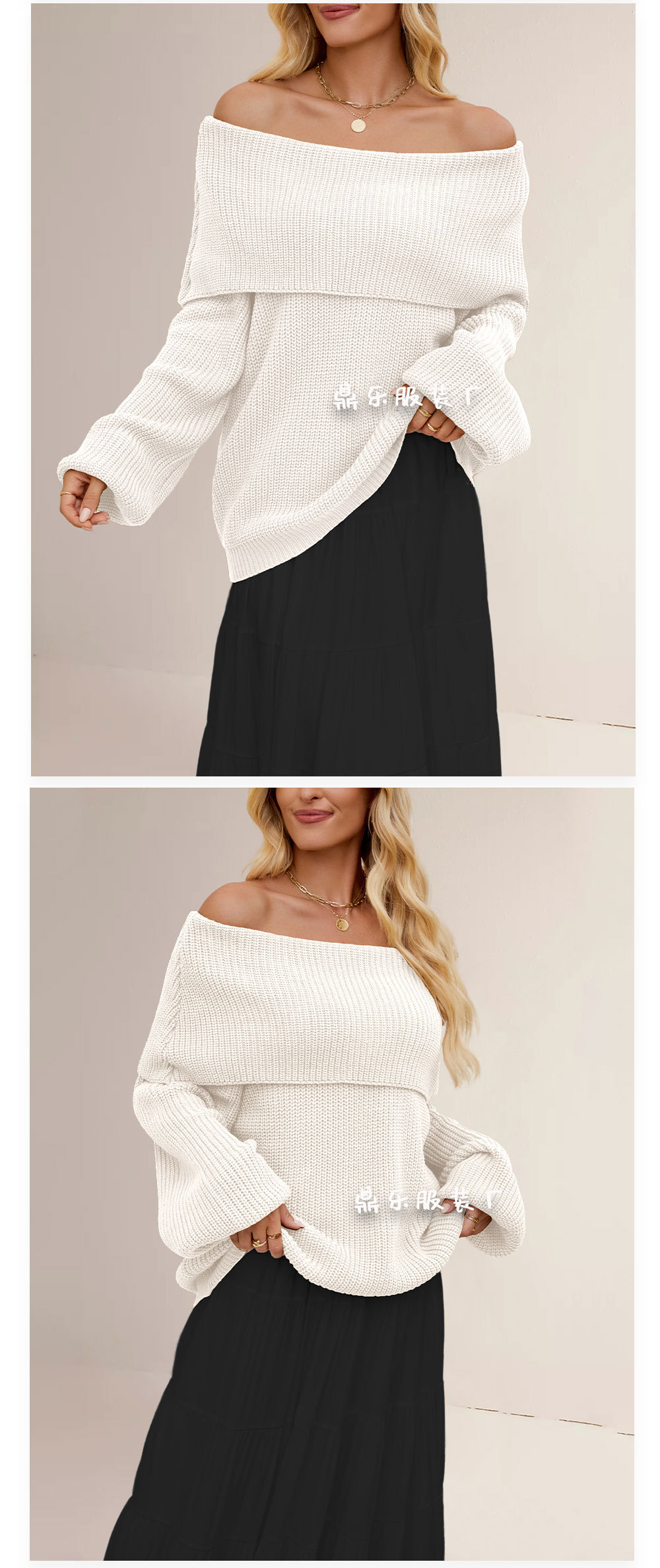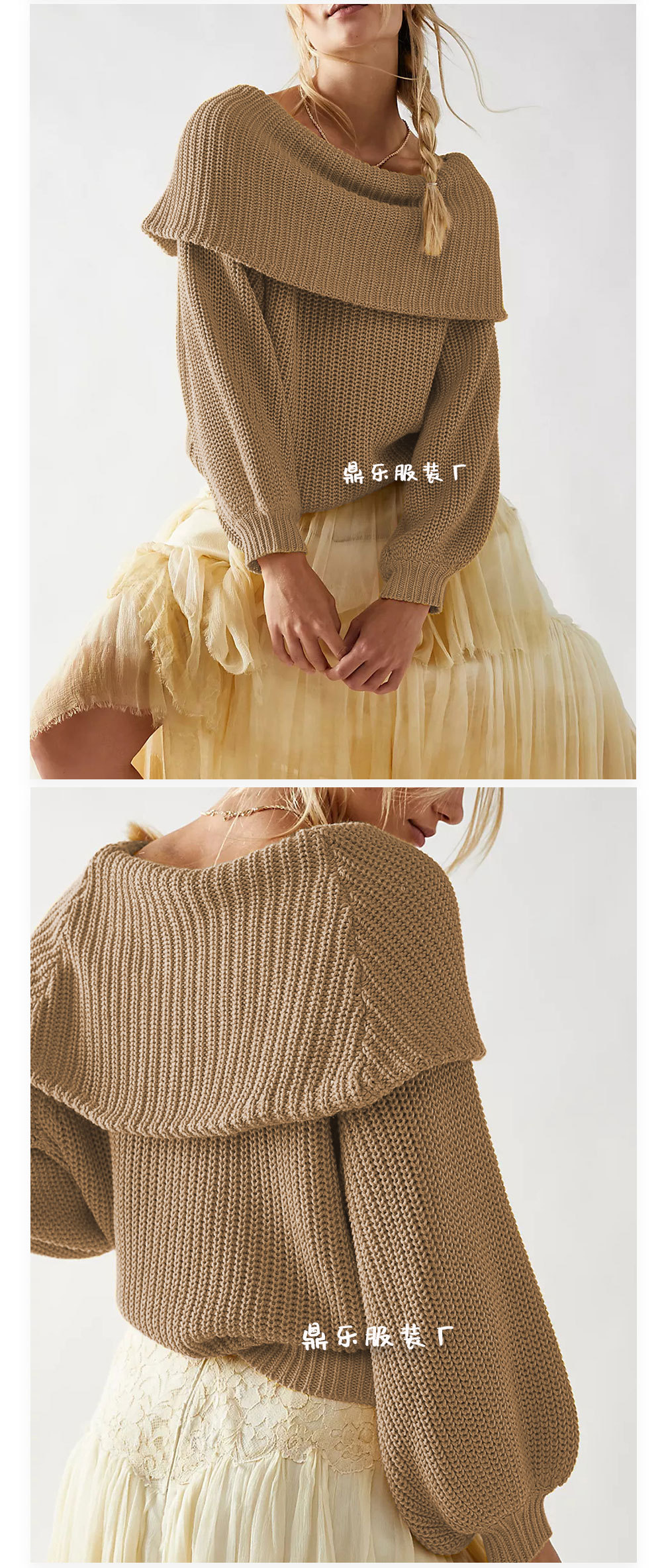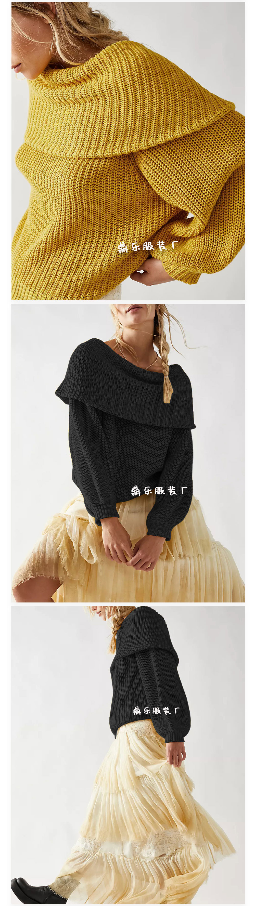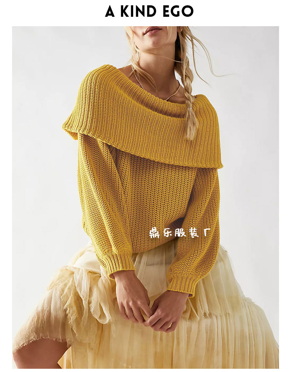 2025 New tiktop Autumn/Winter cross-border European and American women's sweater, loose one-neck pullover top knitted sweater
