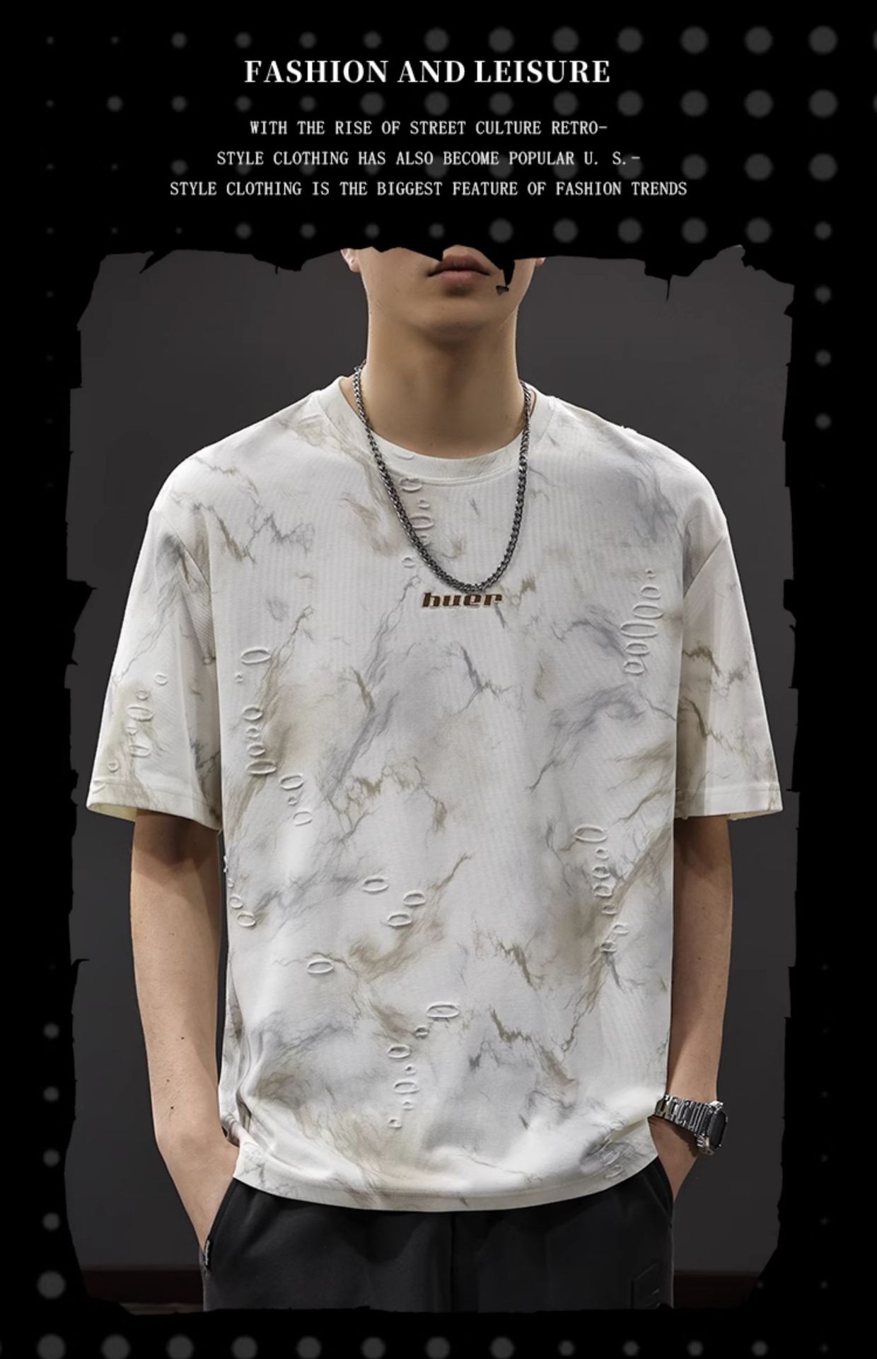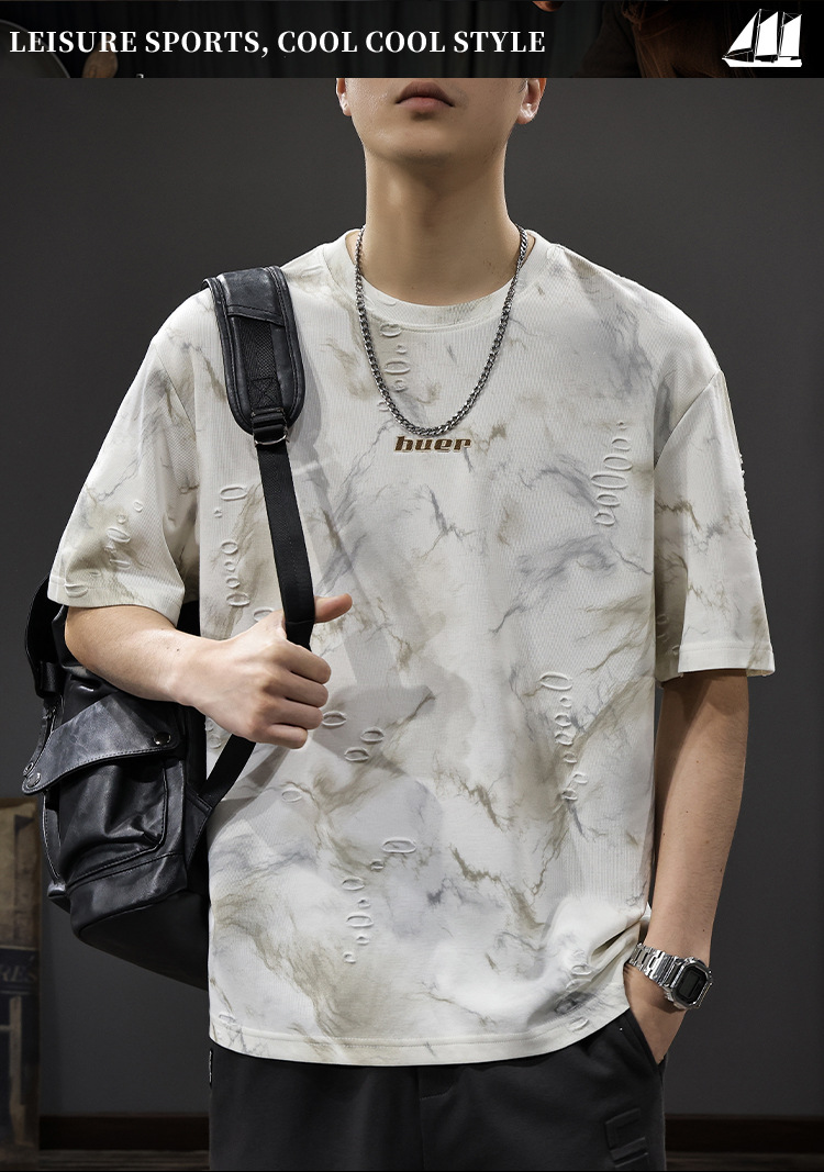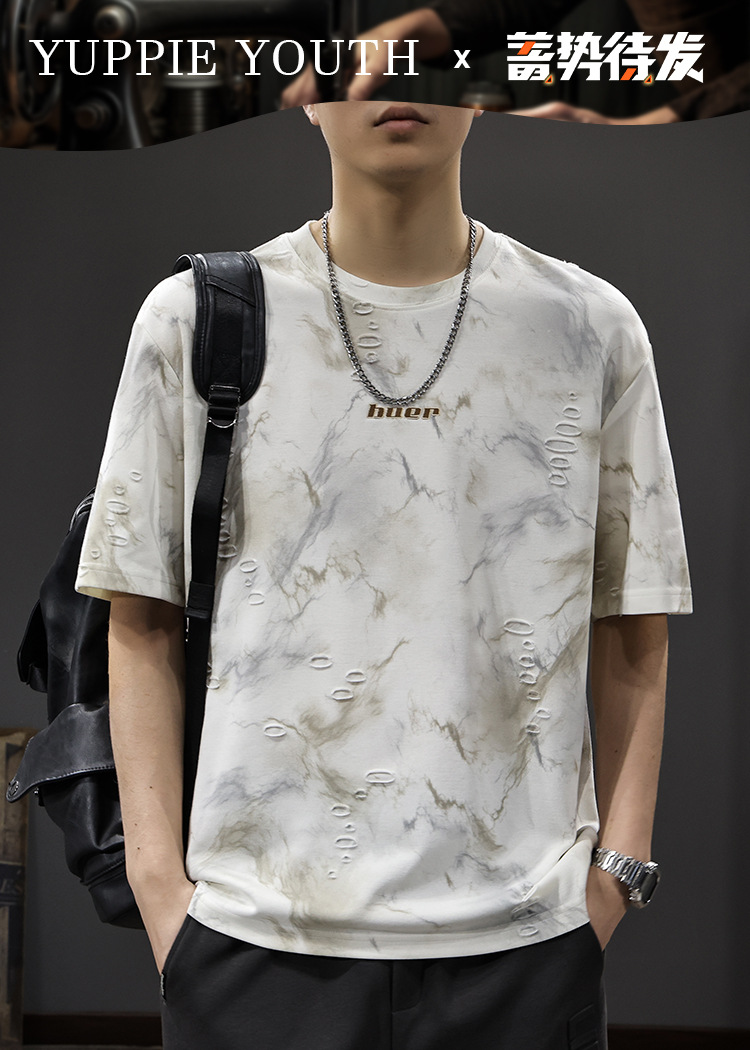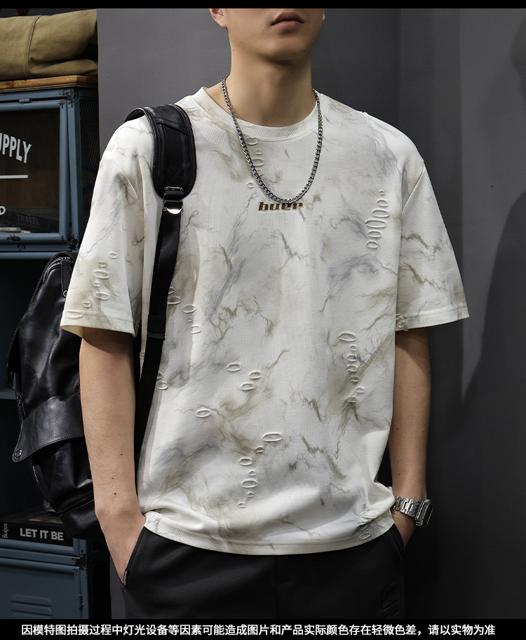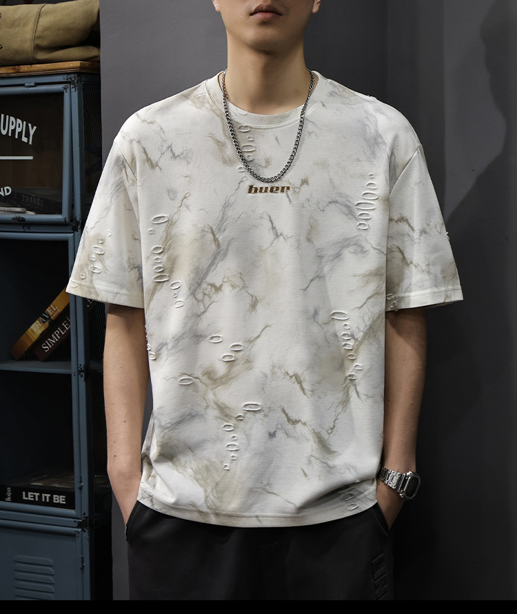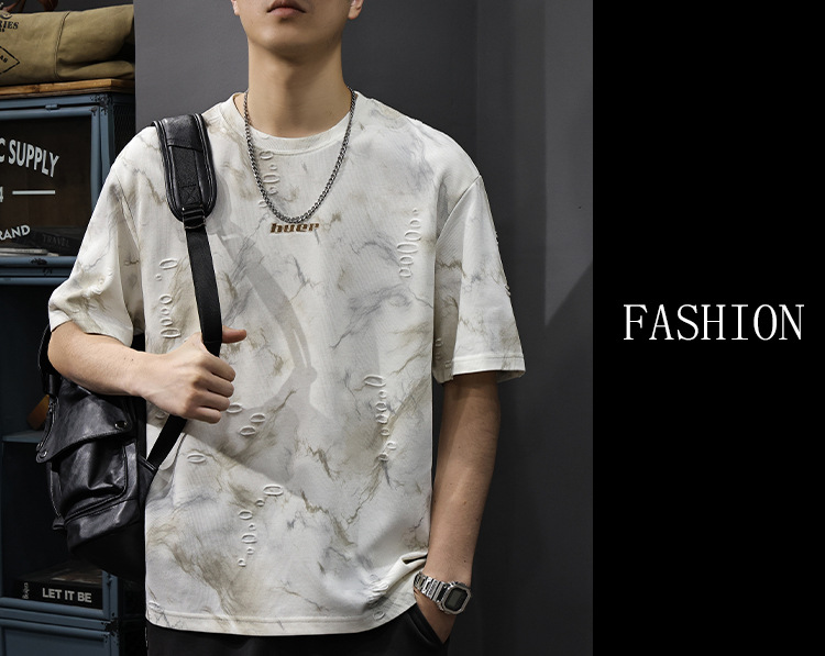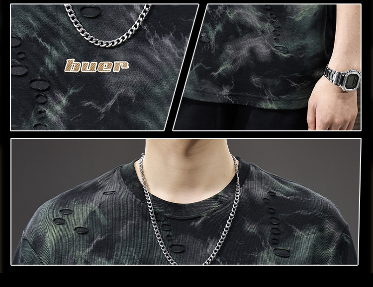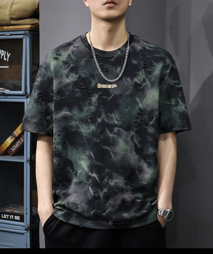 2025 New top fashion brand, thin short-sleeved T-shirt, men's loose and casual summer fake, cool half-sleeved shirt with holes