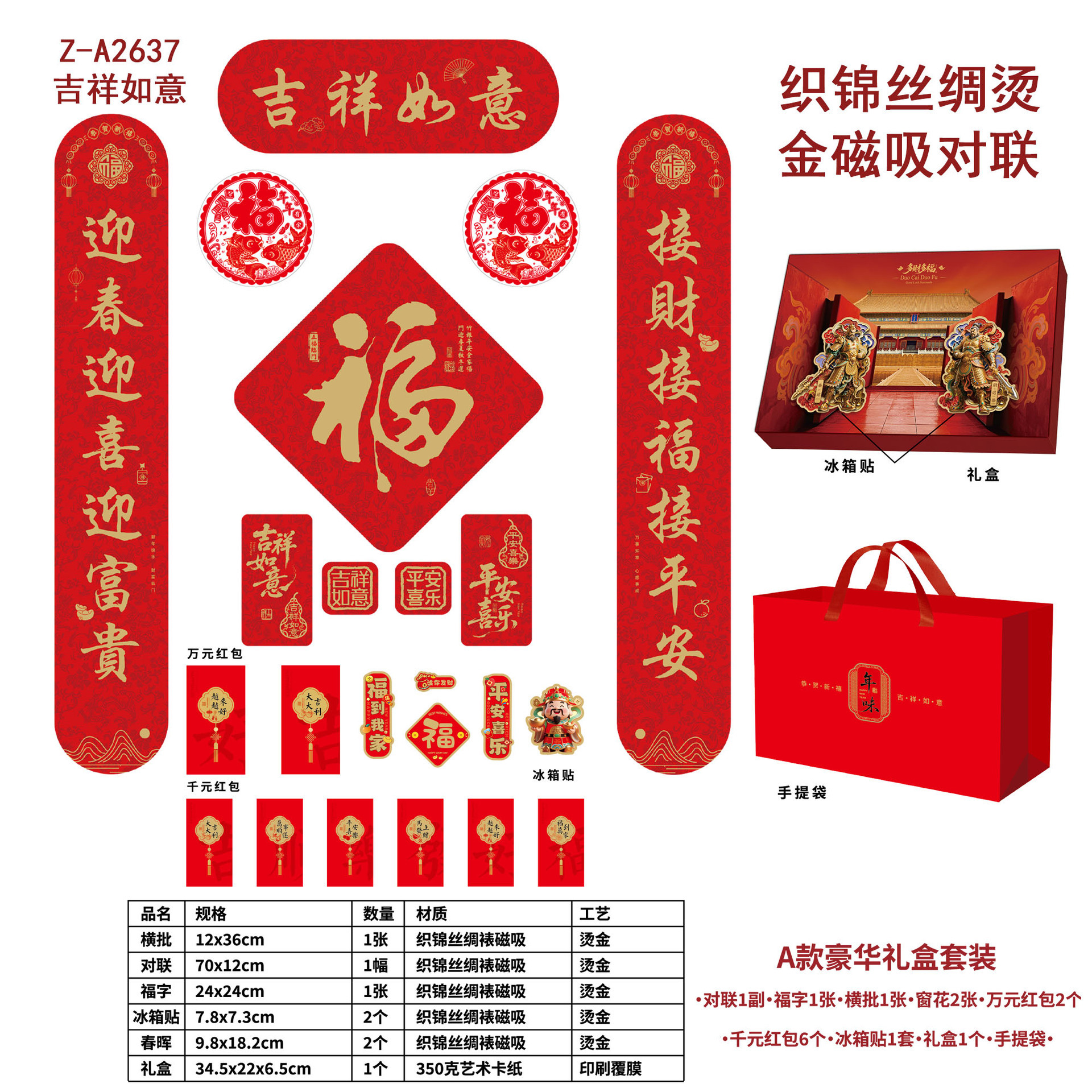 2026 Year of the Horse Couplet Gift Pack, Spring Festival Couplet and "Fu" Character Gift Bag, Red Envelope Window Flower Set Gift Bag, Advertising Magnetic Couplet