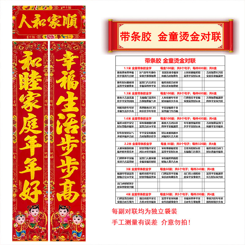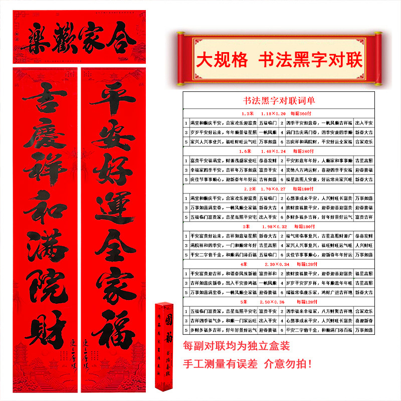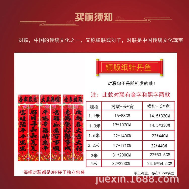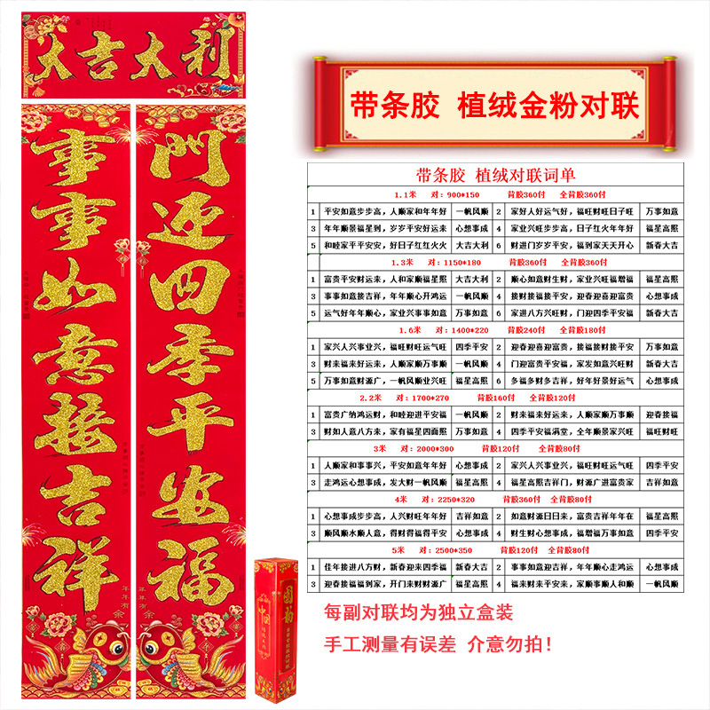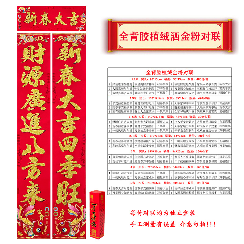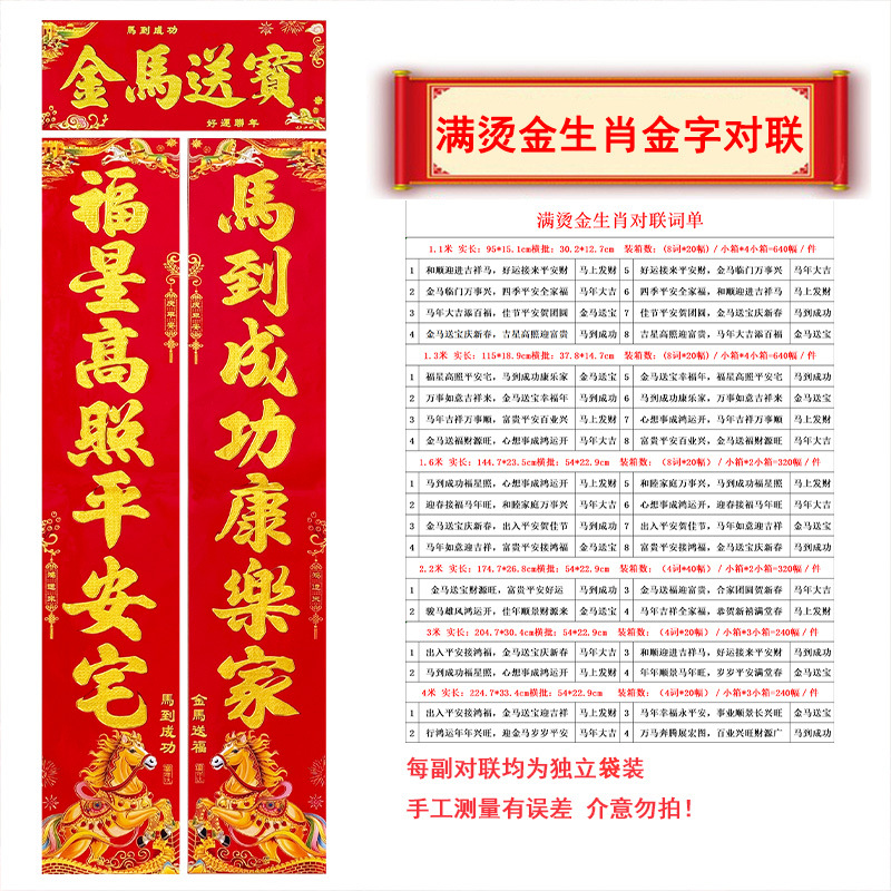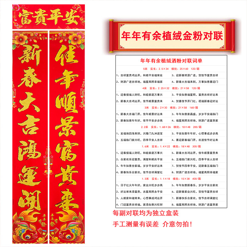 Note: The length of the Spring Festival couplets is a market term. The actual size of the vertical couplets (excluding the horizontal ones) may vary due to different styles and layouts.