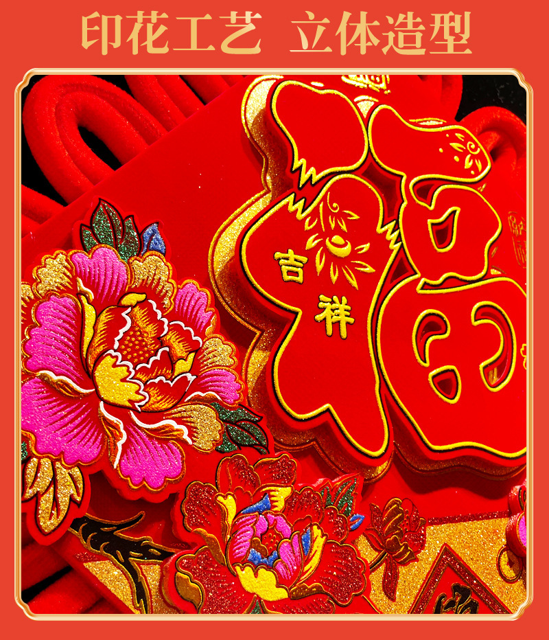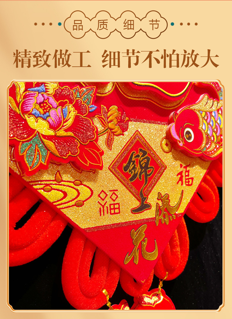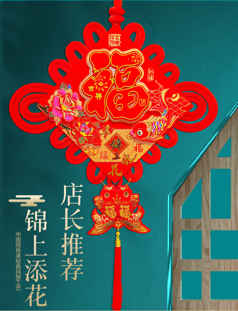 23 New Chinese knot "Fu" character pendant for living room decoration, New Year gift, board knot velvet fabric, Chinese knot live-streaming bestseller