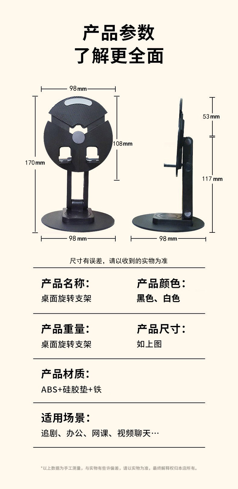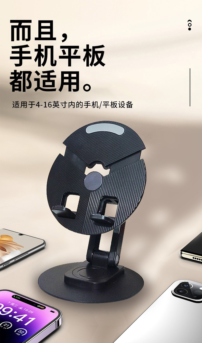 230805 Disc Phone Stand, desktop folding phone stand, Metal rotatable phone stand, IPAD tablet desktop phone stand, lazy person's stand