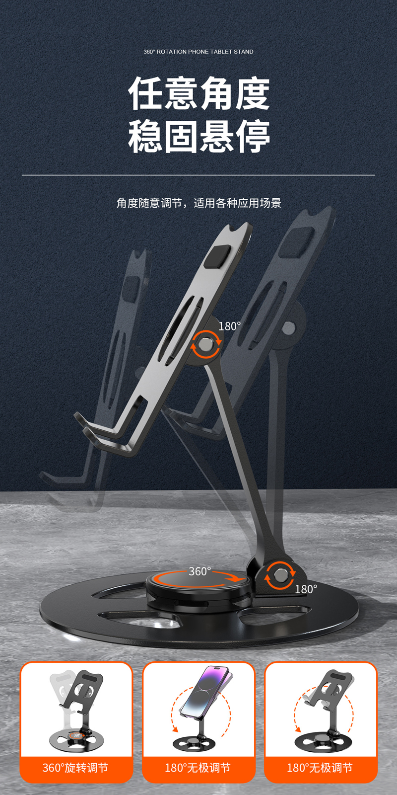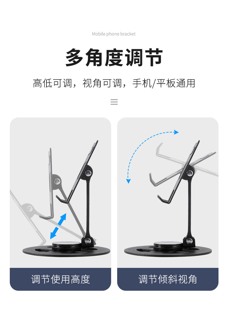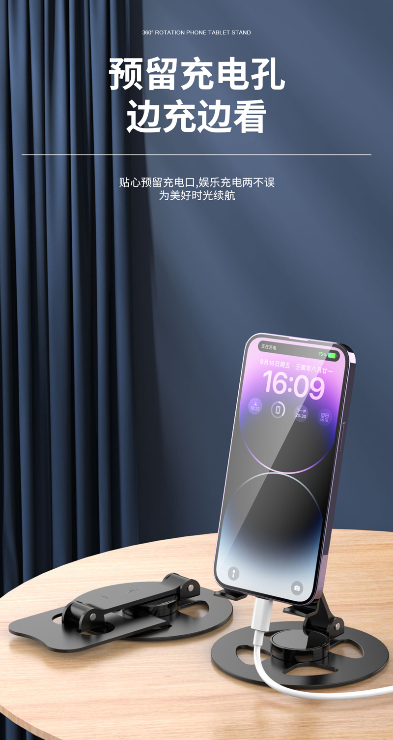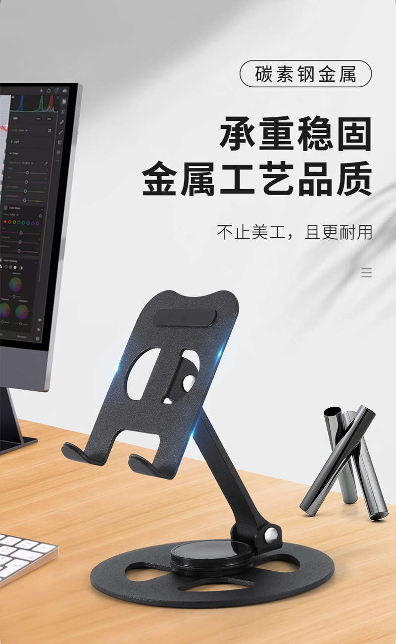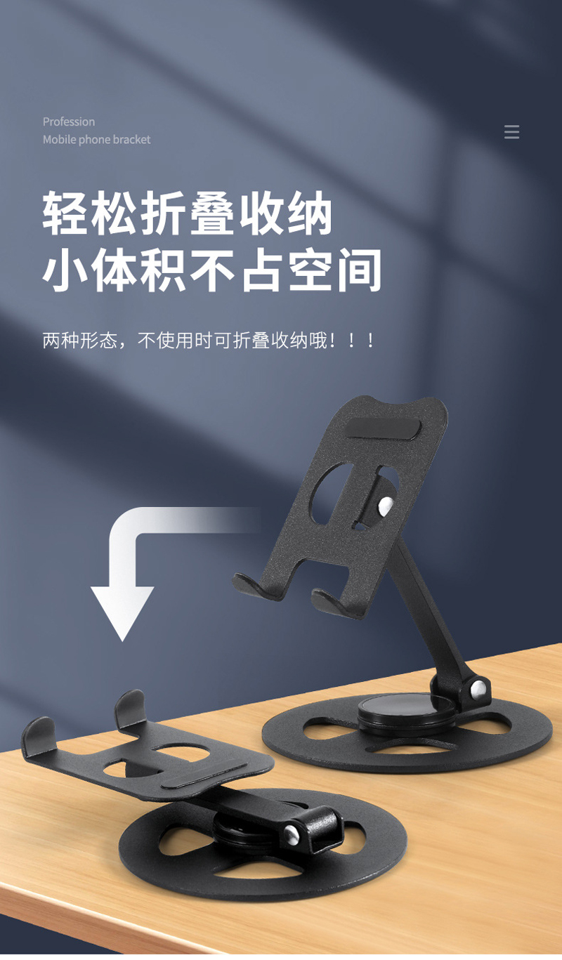 230806 Iron desktop Folding phone Stand, Metal rotatable phone stand, IPAD tablet desktop phone stand, lazy person's stand