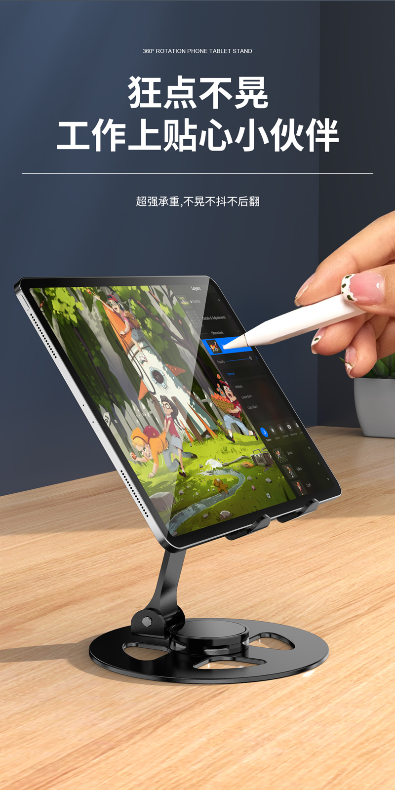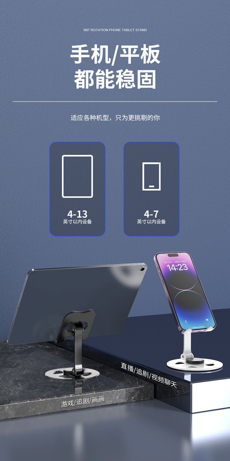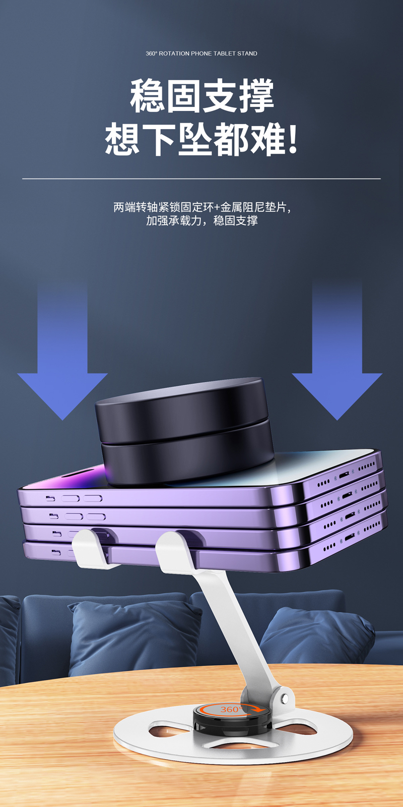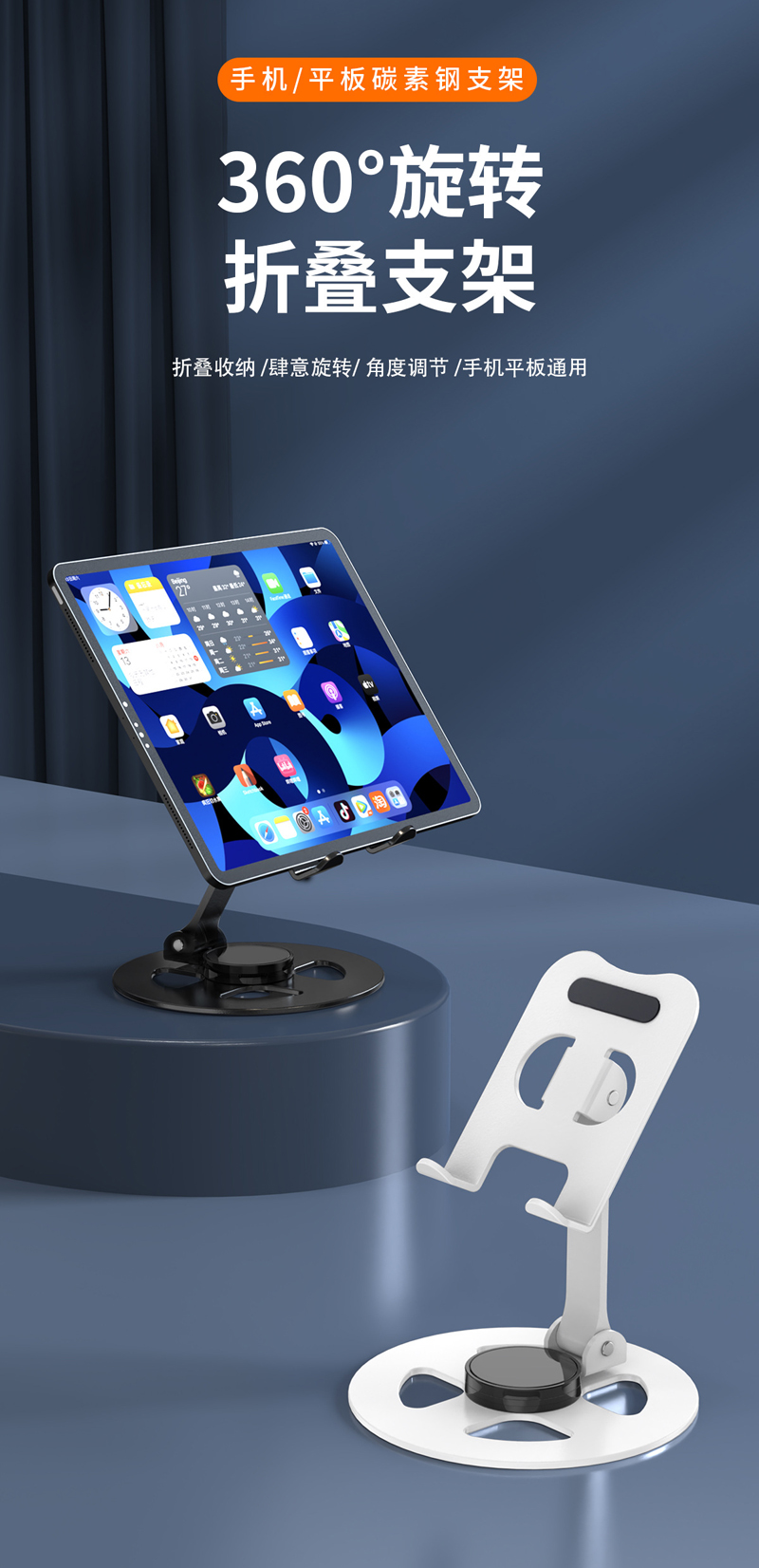 230806 Iron desktop Folding phone Stand, Metal rotatable phone stand, IPAD tablet desktop phone stand, lazy person's stand