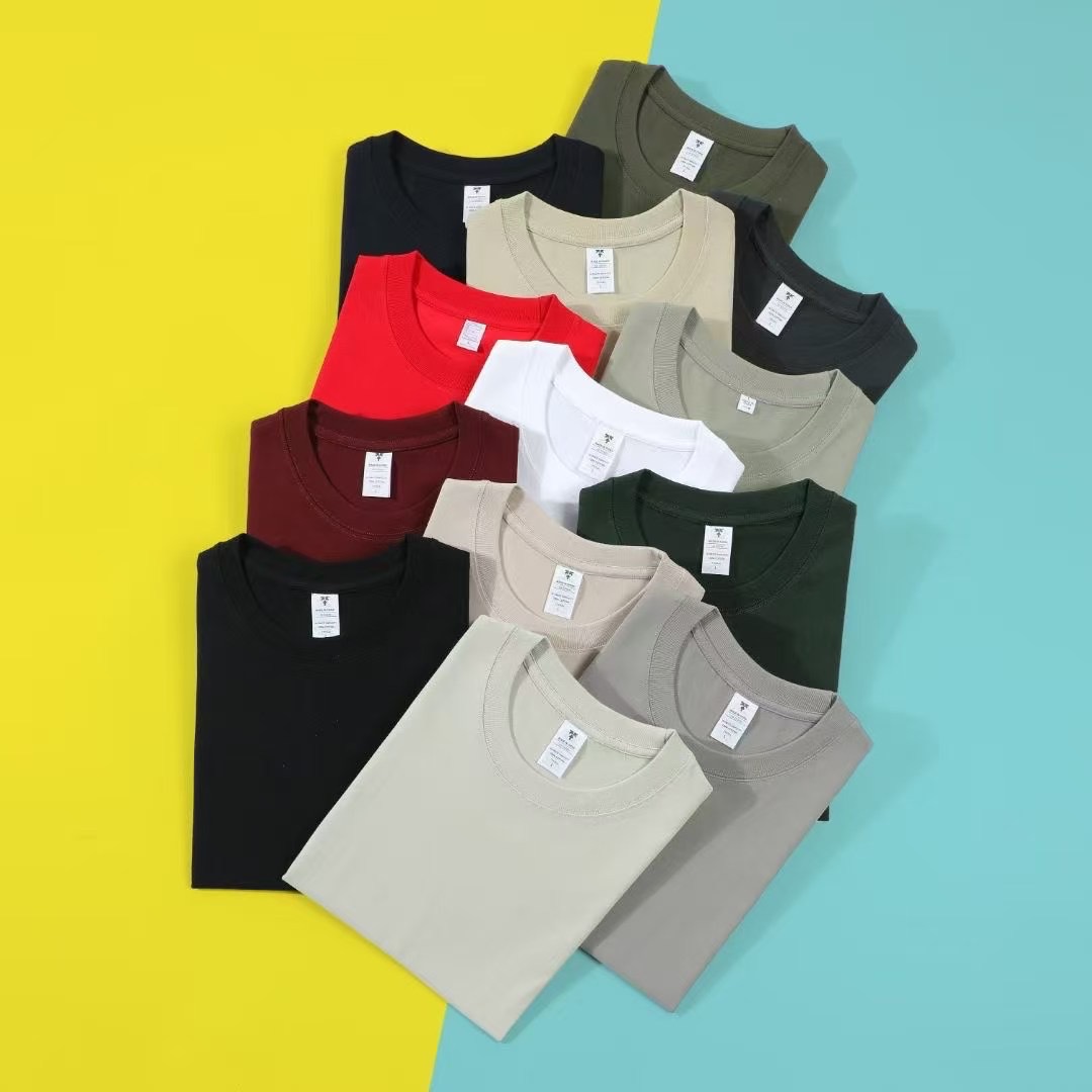 230G heavy pure cotton men's T-shirt, solid color round neck drop shoulder loose half-sleeve cultural shirt, short sleeve printed custom