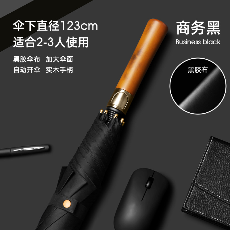 24-bone long-handled automatic umbrella, extra-large black business umbrella for two or three people, sturdy custom advertising umbrella