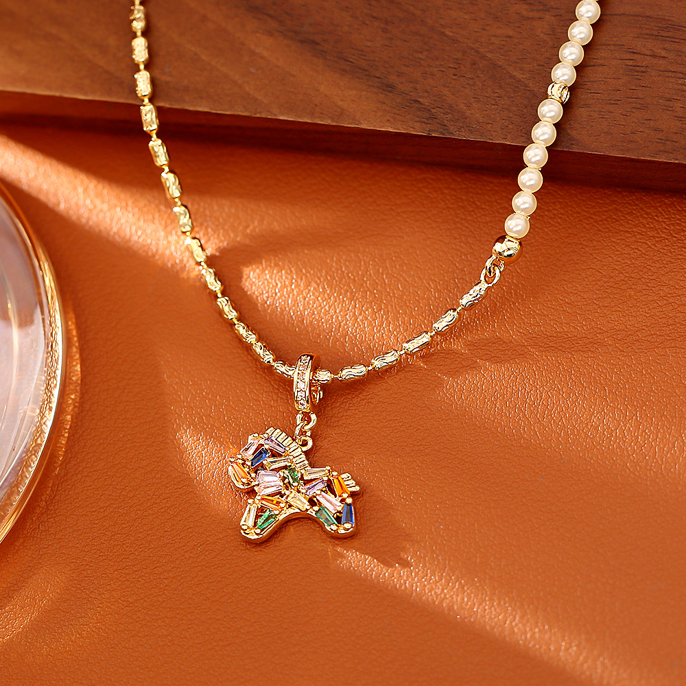 24K copper-plated colored little horse pendant necklace, new Chinese-style high-end fashion stud earrings, Chinese-style accessories