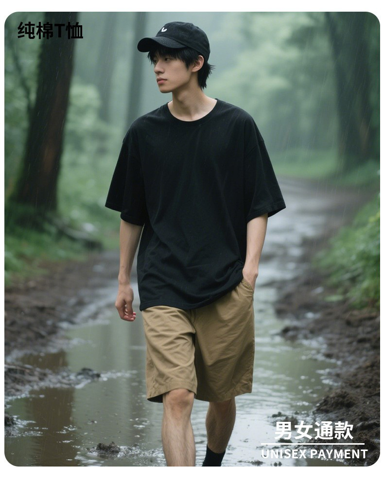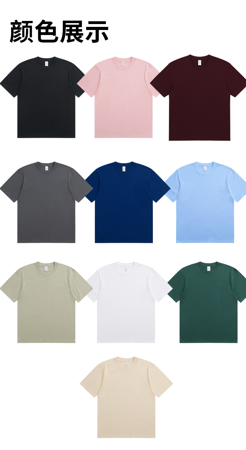 250G short-sleeved T-shirt, men's summer pure cotton T-shirt, men's round-neck base layer shirt, men's and women's work clothes with printed words and logos
