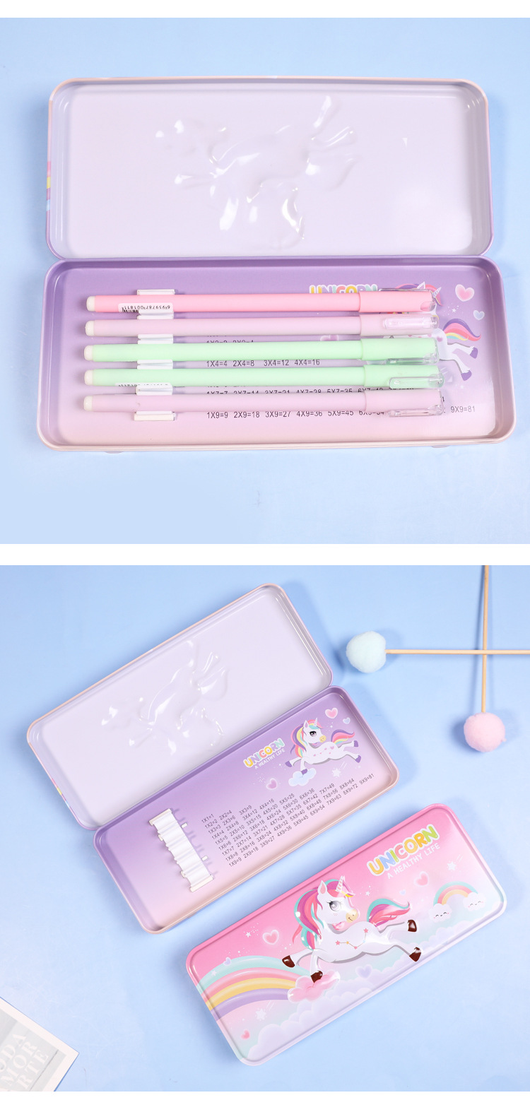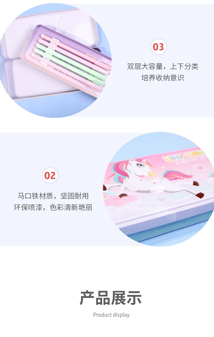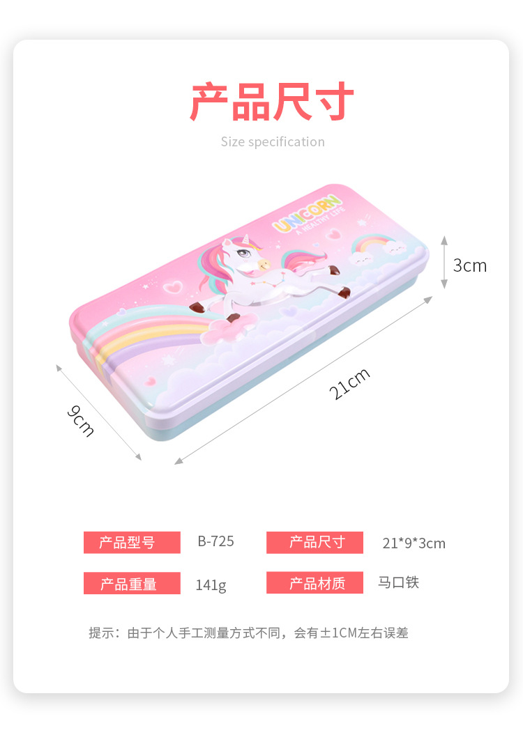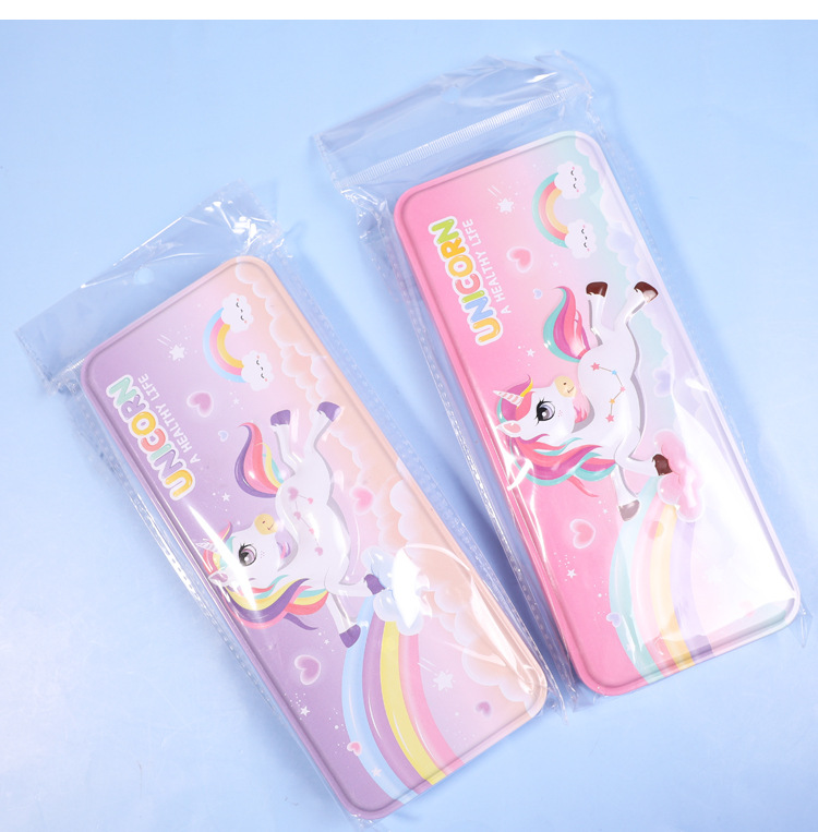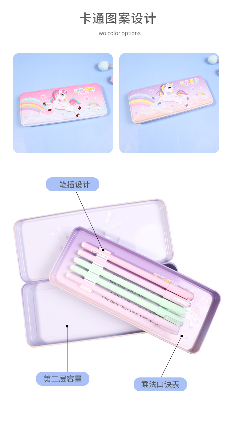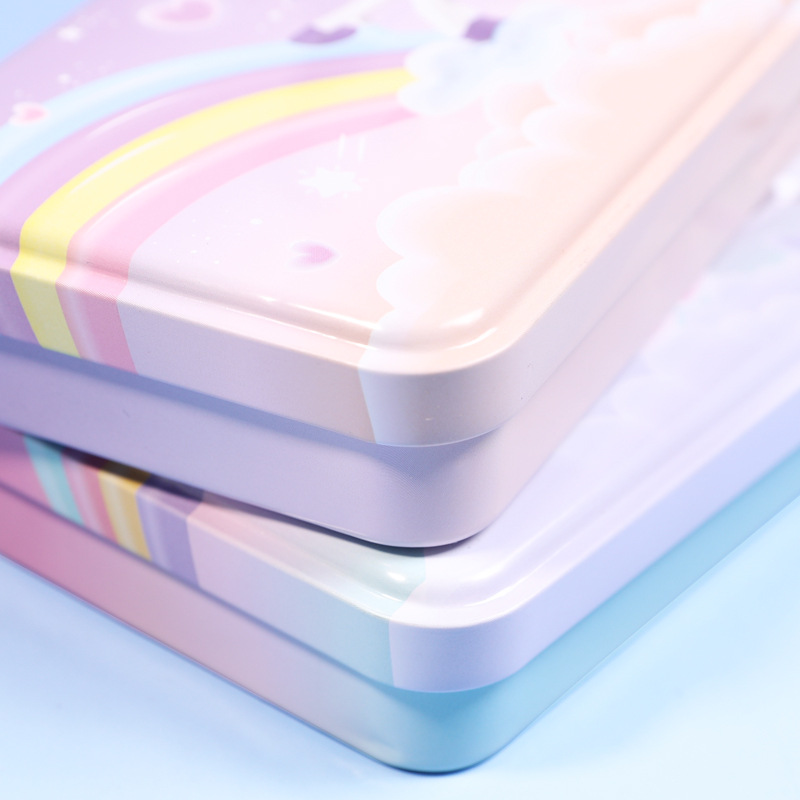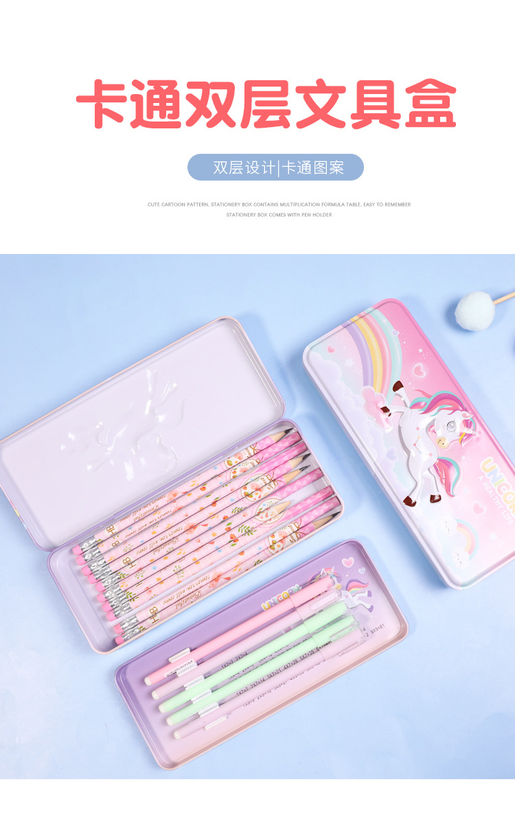 2916223925873 Xiaolingjing's new cartoon double-layer large-capacity tin pen case for students, simple and niche stationery box, pencil case, stationery storage