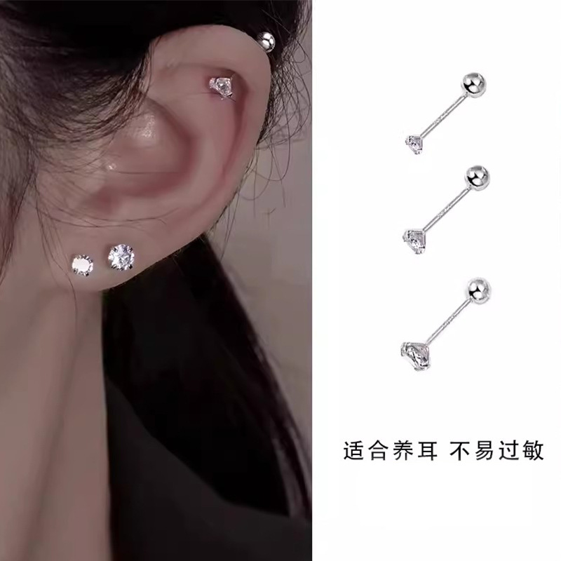 【3 Pairs 】925 Silver Needle Pearl Earrings, Bean ear studs, Sleep without Removing Zircon Ear Bone studs, Ear Piercing Earrings