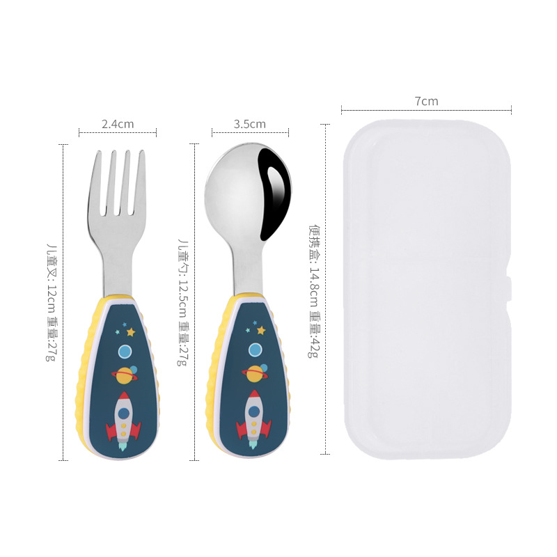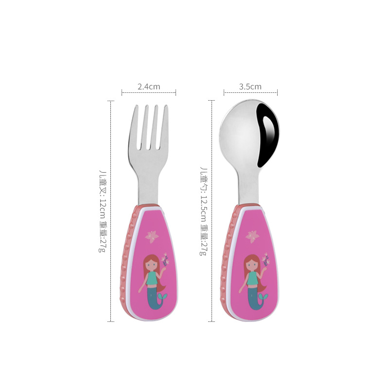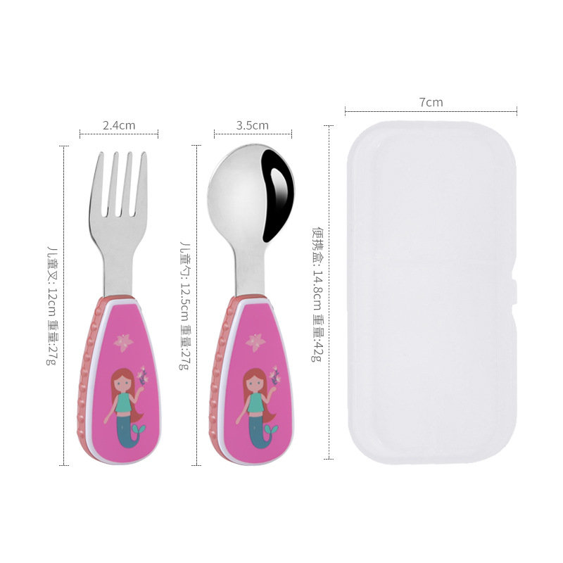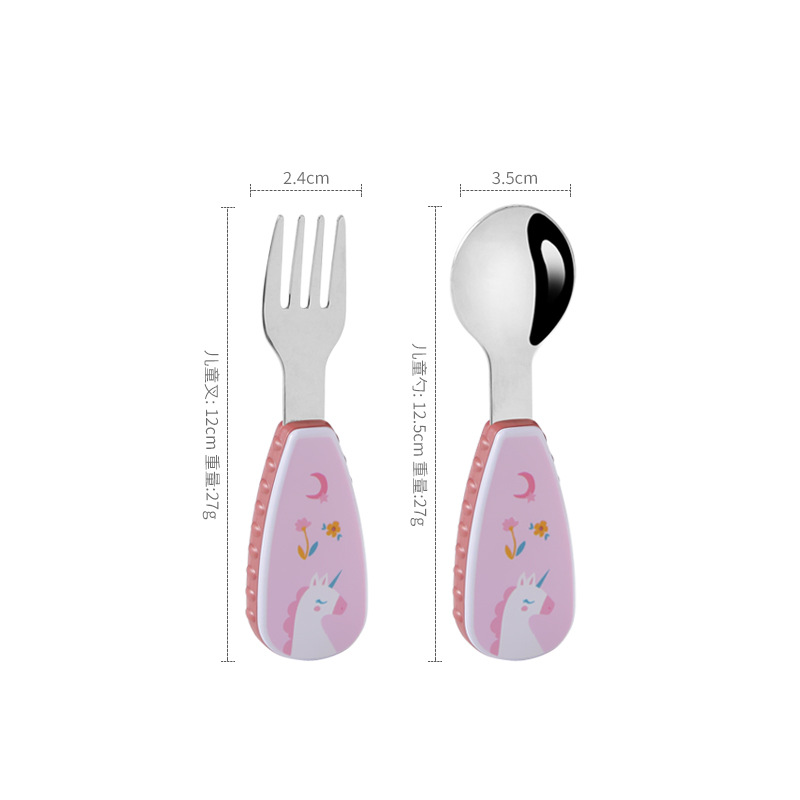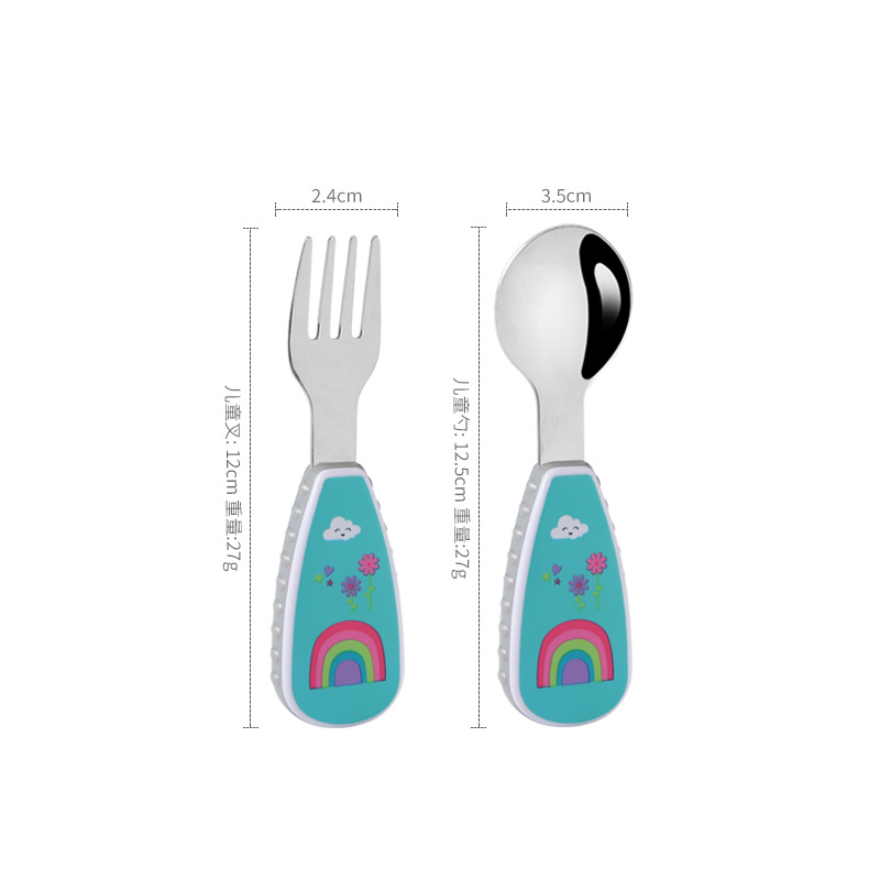 304 Creative stainless steel cartoon children's spoon and fork, baby short-handled complementary food training fork and spoon portable tableware set