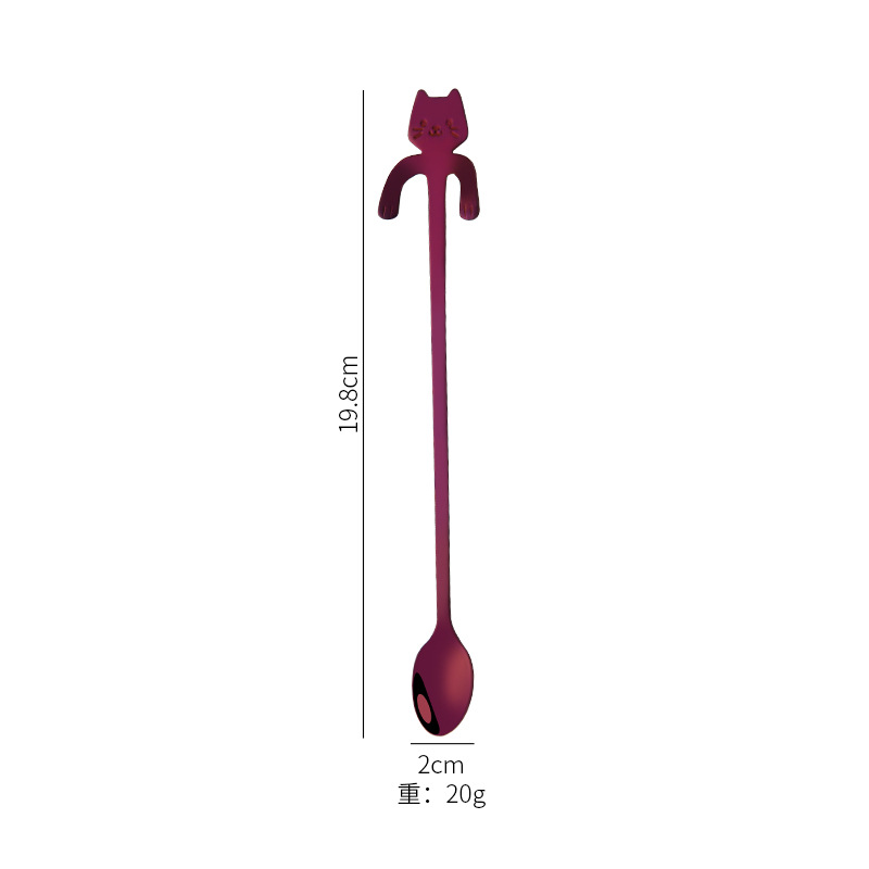 304 stainless steel coffee spoon, creative and colorful cute cat cartoon mixing spoon, long-handled hanging mug cat spoon