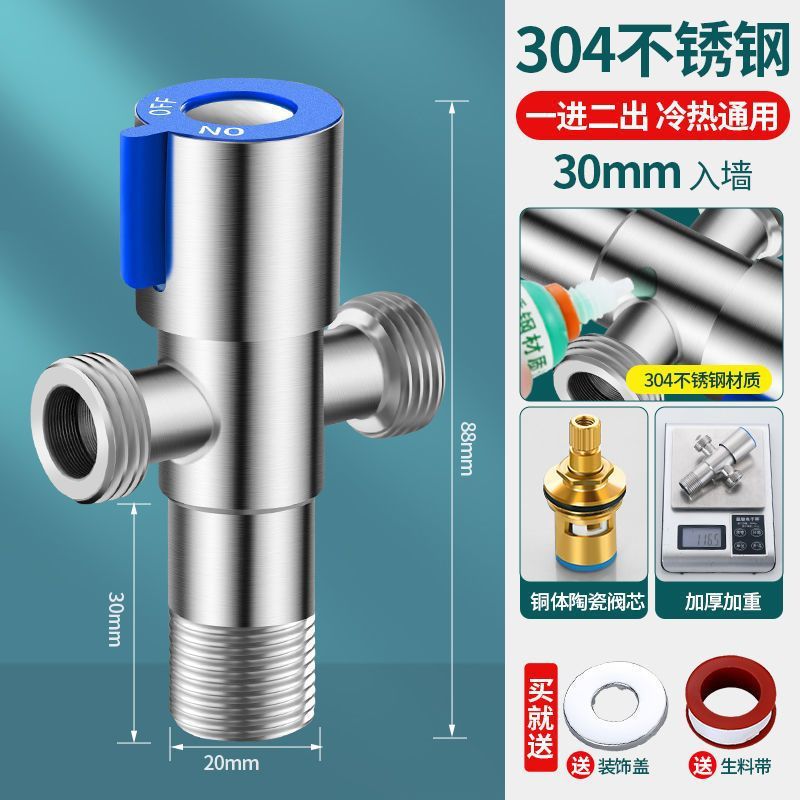 Stainless steel Angle valve for cold water [30mm wall insertion] - Universal extended interface [ten-year warranty, replacement for leakage]