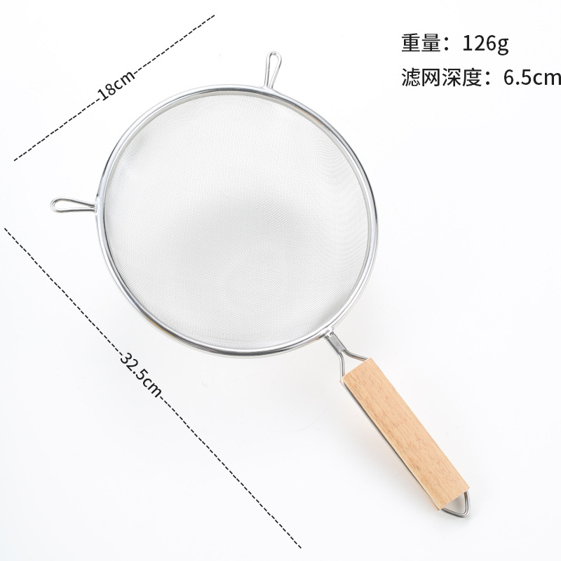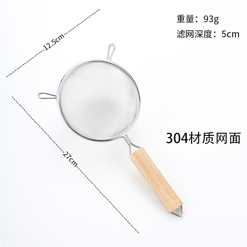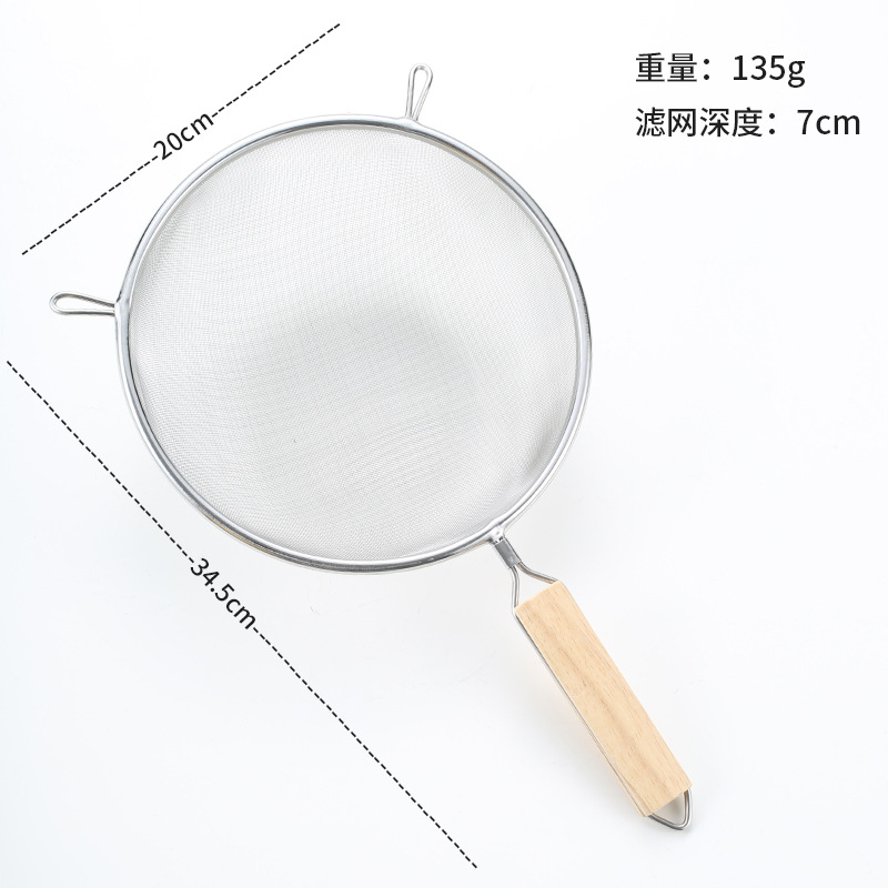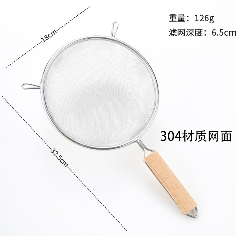 304 stainless steel large strainer, wooden handle, double-ear deep-frying scorer, household kitchenware, noodle scorer, strainer