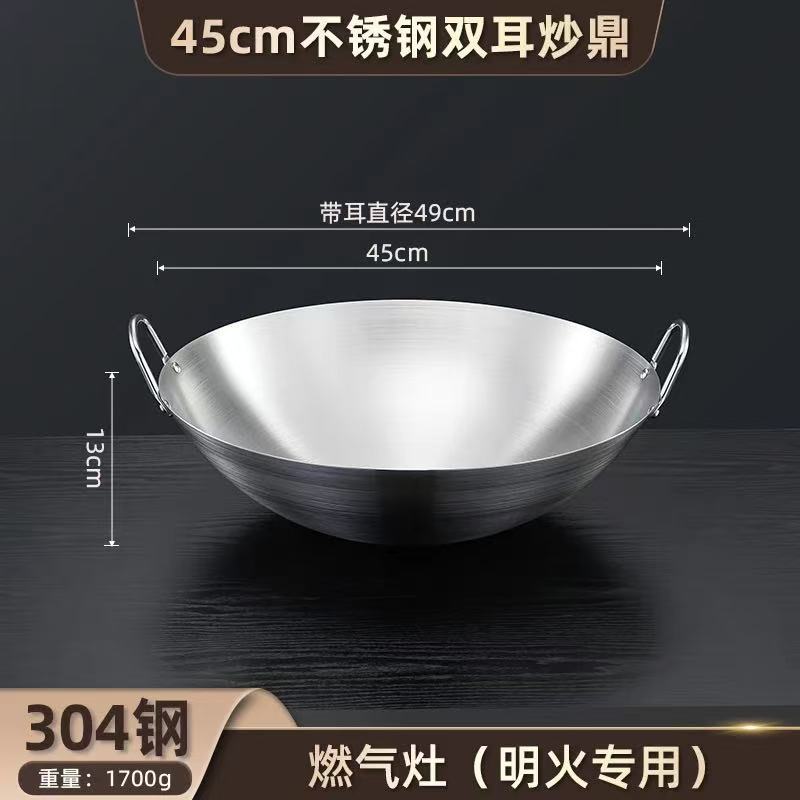 45cm Super thick shock-resistant double-ear non-stick wok (304 material)