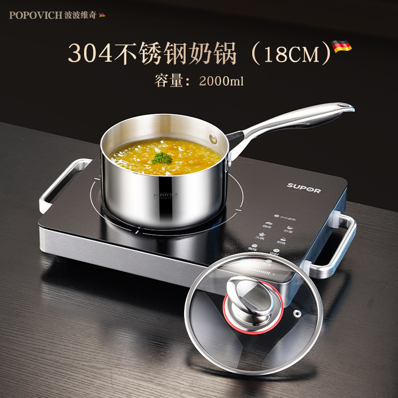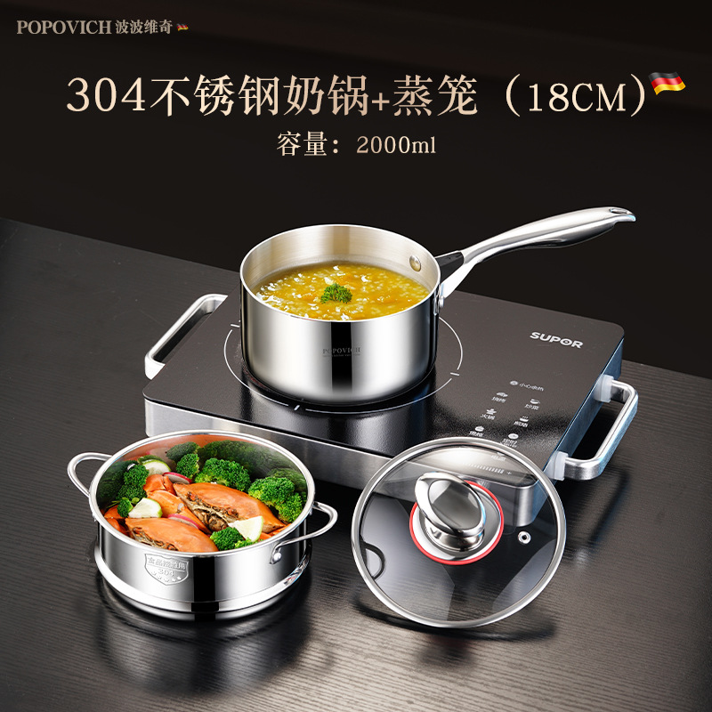 316 stainless steel baby food pot, uncoated small milk pot, household baby frying and cooking all-in-one non-stick steamer