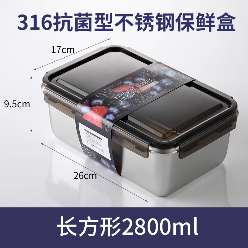 316 stainless steel food storage box, food-grade refrigerator storage box set, sealed outdoor packing box