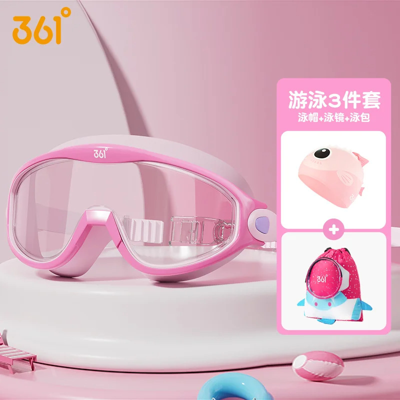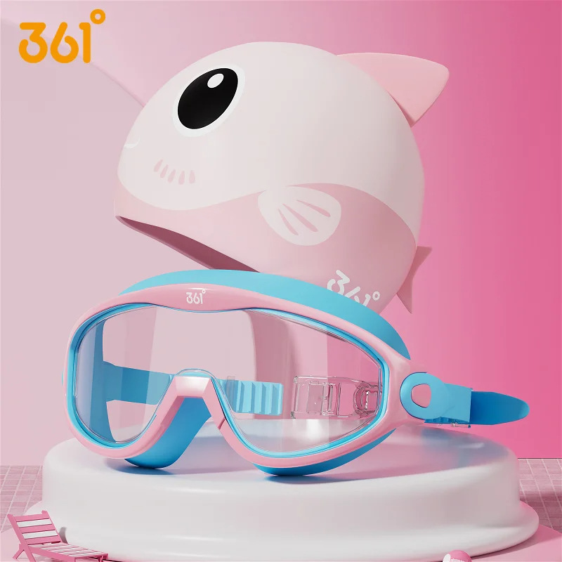 361 Large Frame swimming goggles, waterproof and anti-fog, high-definition children's and women's transparent diving goggles and swimming cap set